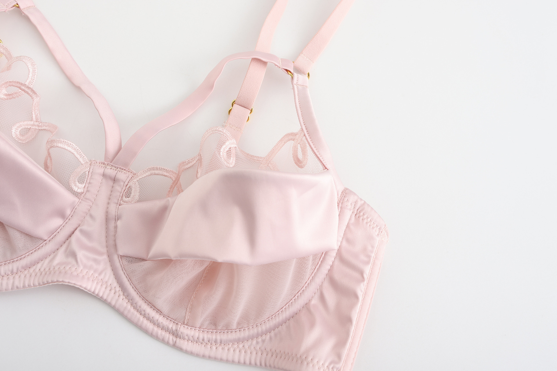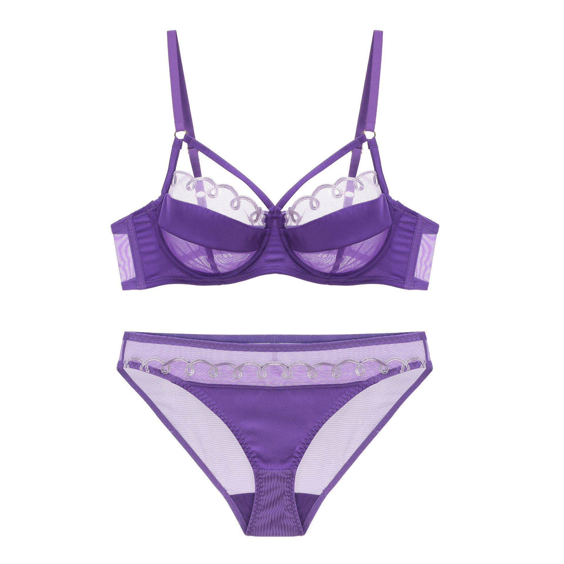 WLMZ113100395 法式內衣女性感超薄網紗情趣內衣套裝大胸顯小收副乳防下垂文胸罩