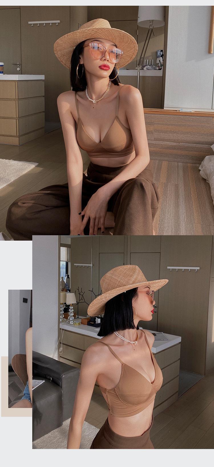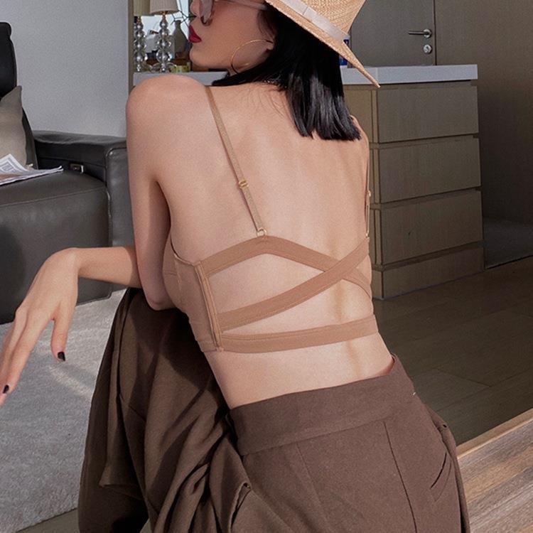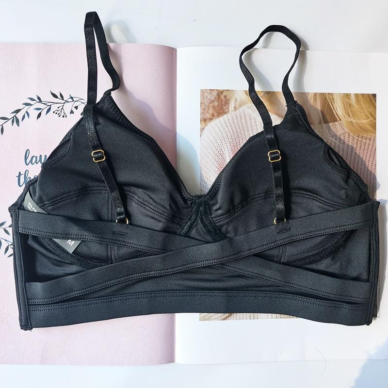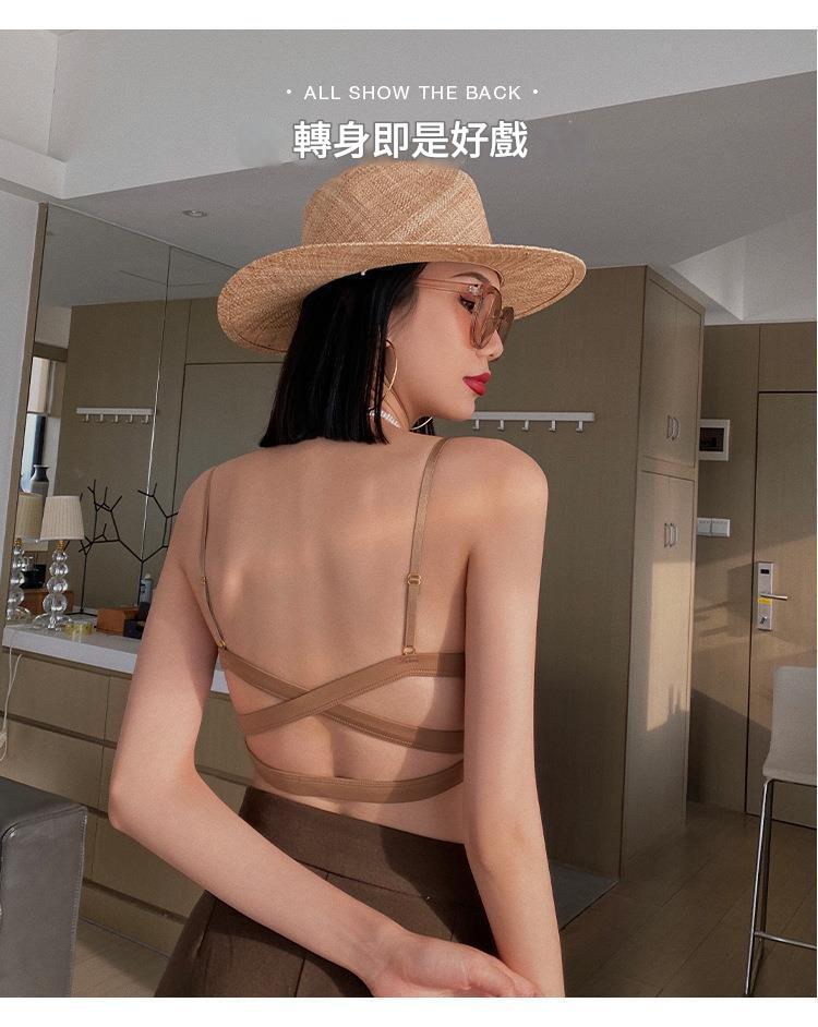 WLMZ113100403 法式性感美背內衣薄款舒適透氣無鋼圈文胸裹胸交叉帶背心式文胸罩