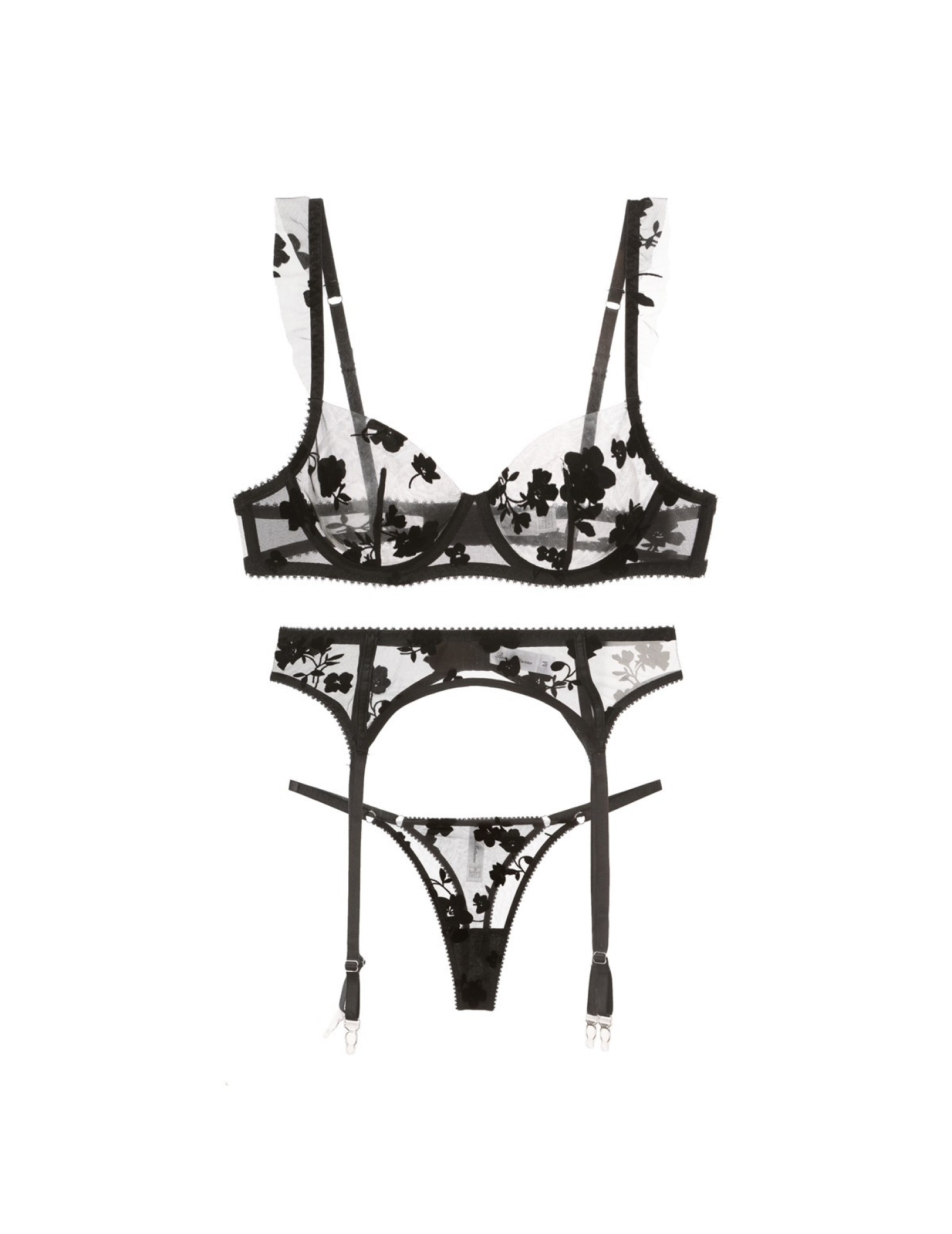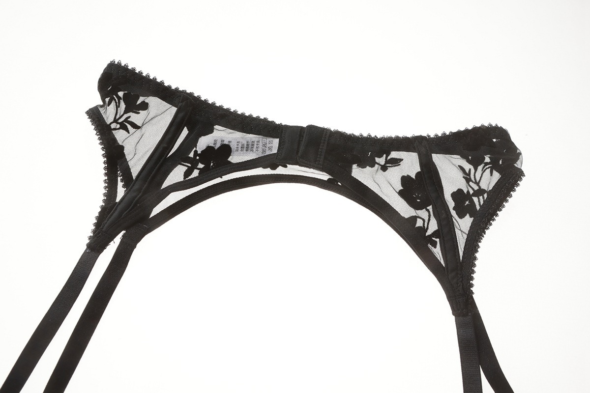 WLMZ113100092 性感情趣吊襪帶法式超薄刺繡蕾絲吊襪文胸配套可夾絲襪吊襪帶