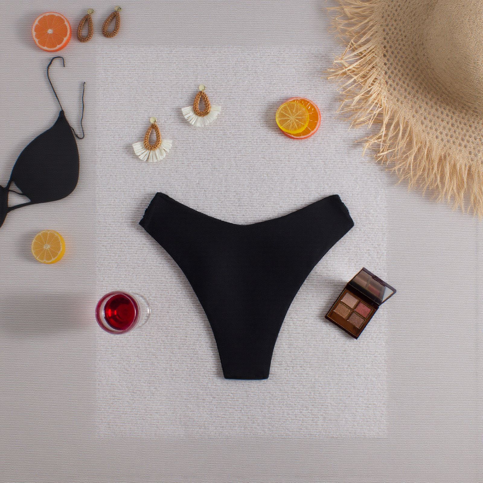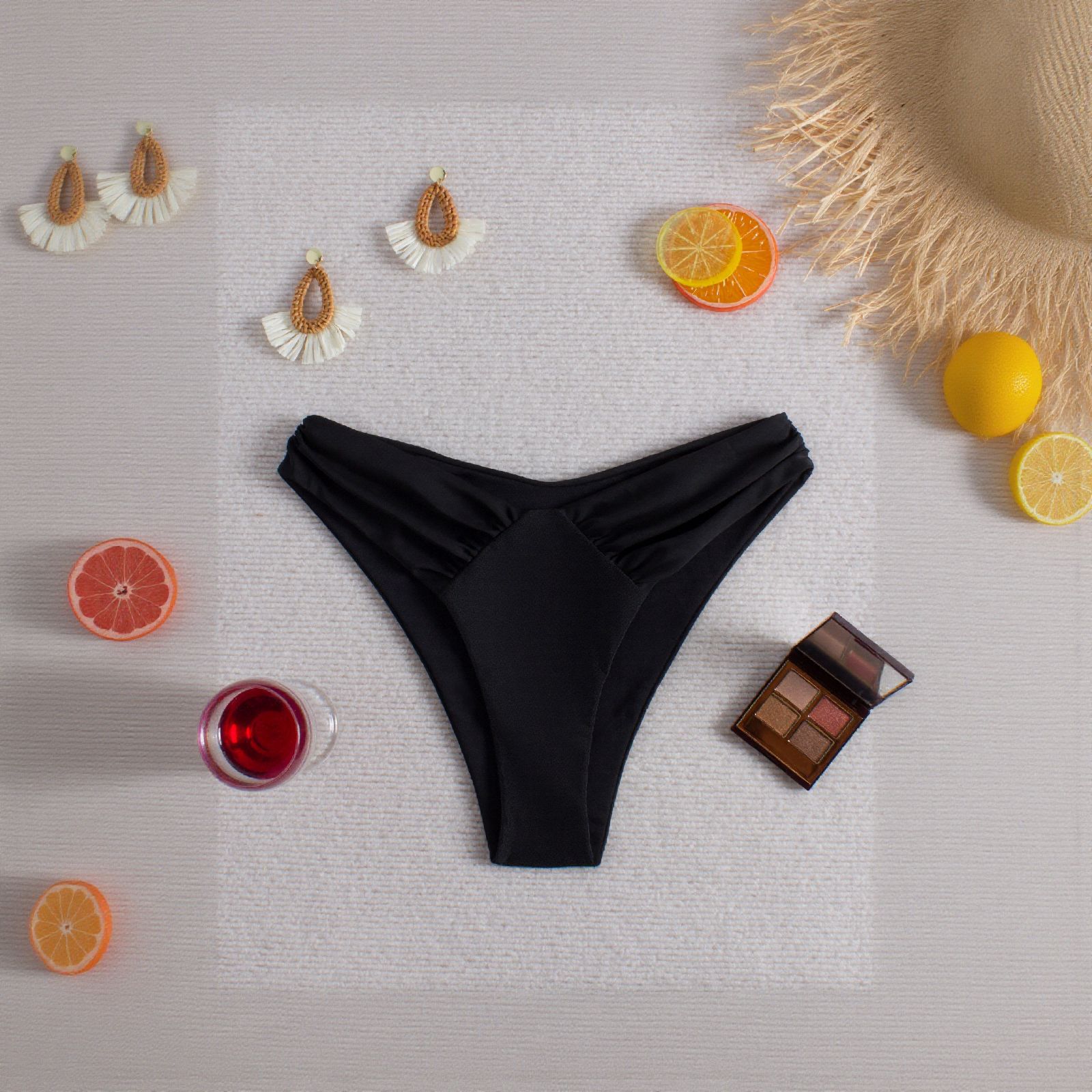 LYXN120100066 2026新款女士泳褲純黑高腰三角褲性感沙灘度假游泳褲