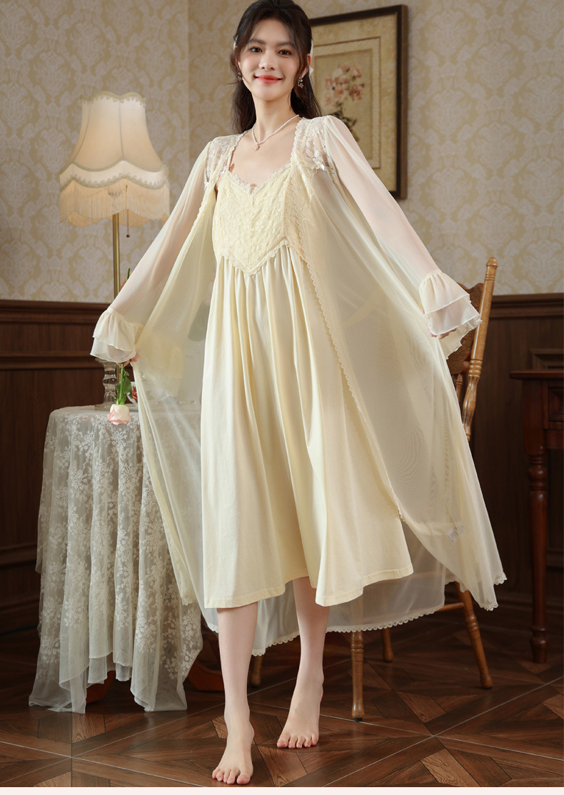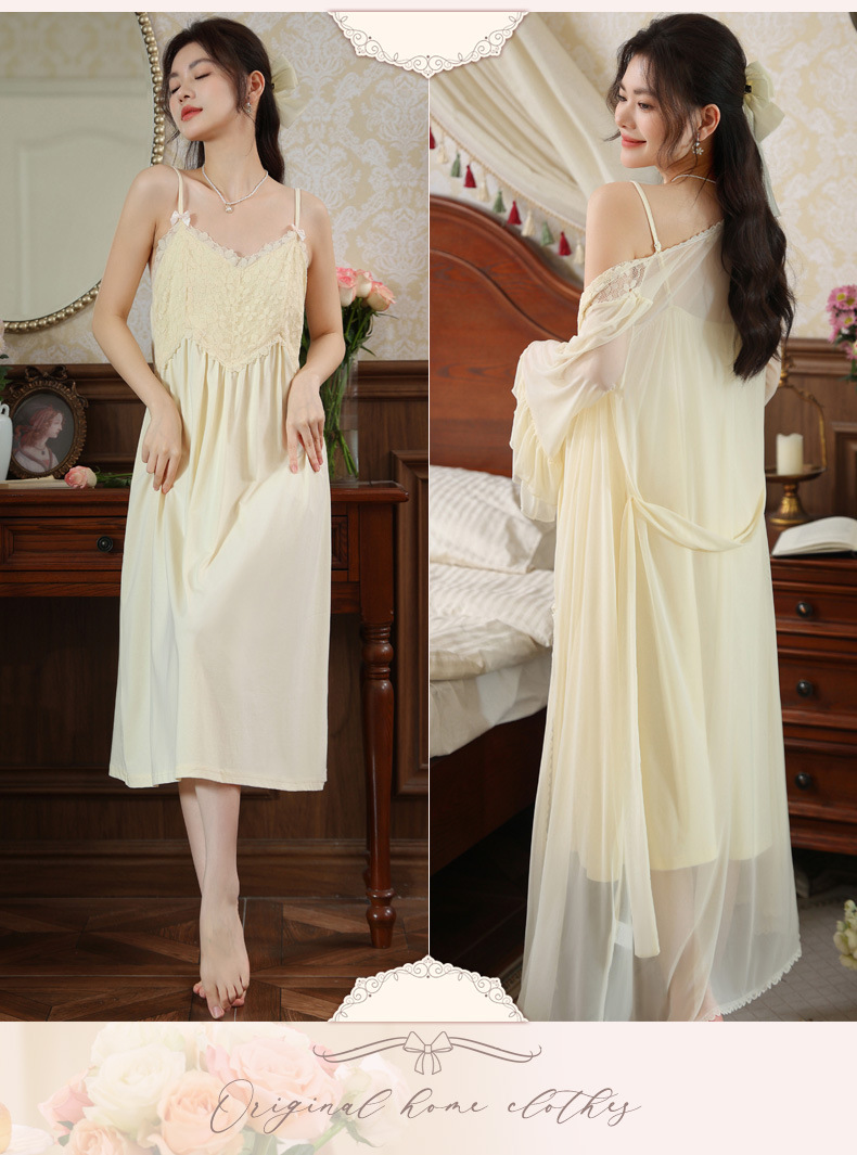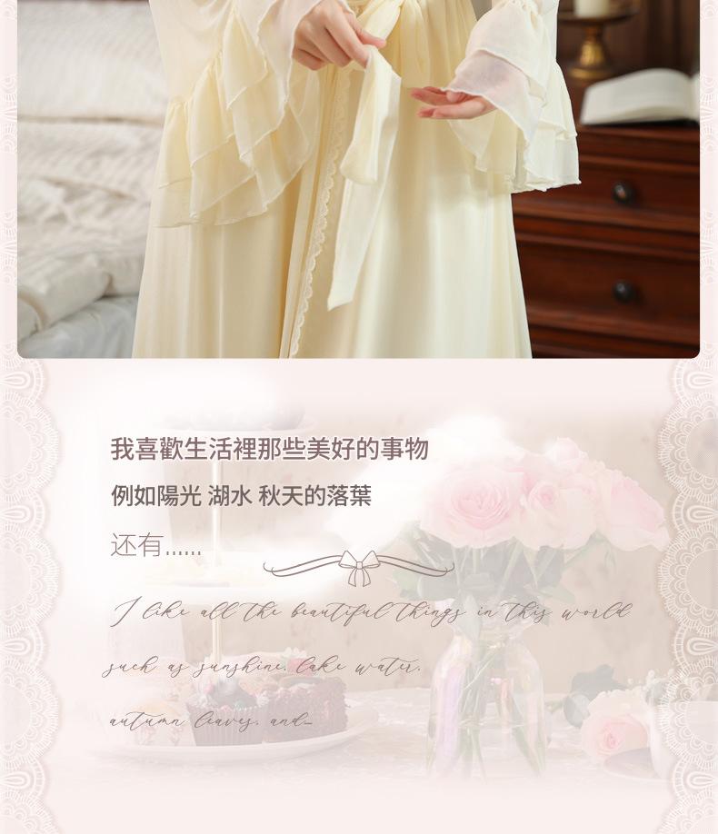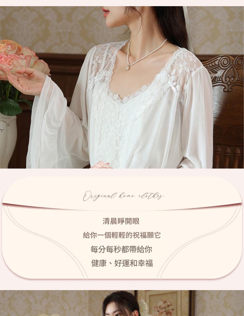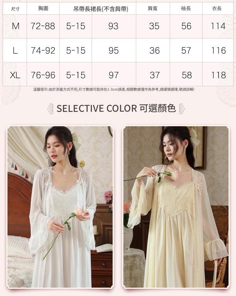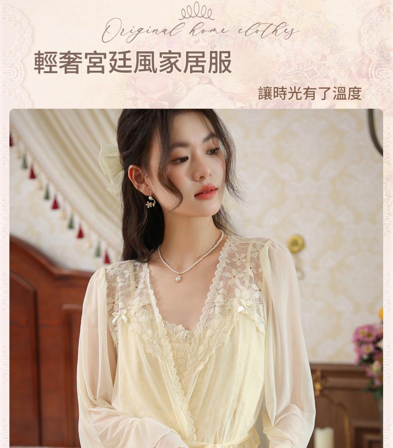 PRDN121100029 長袖睡袍女秋胸墊吊帶裙法式宮廷風睡衣網紗晨袍外穿家居服套裝春