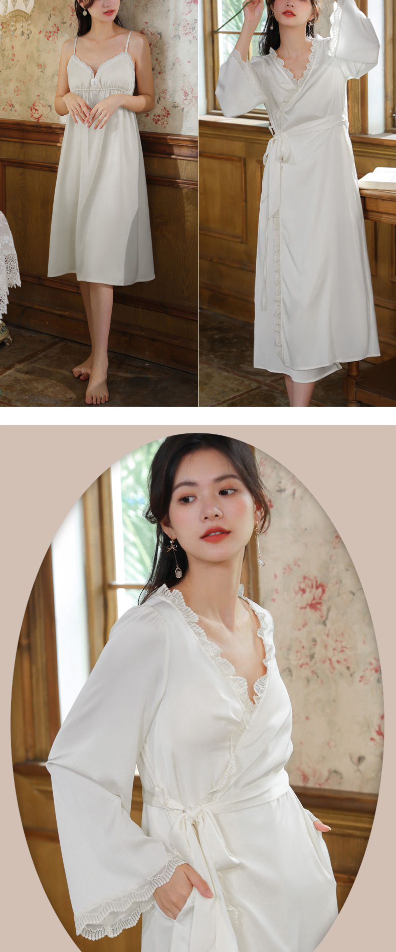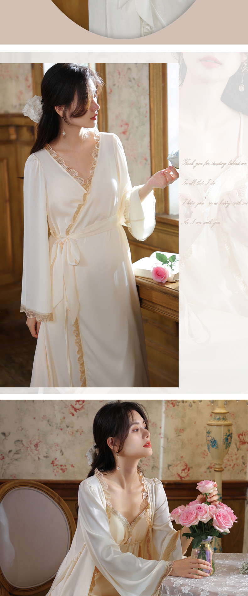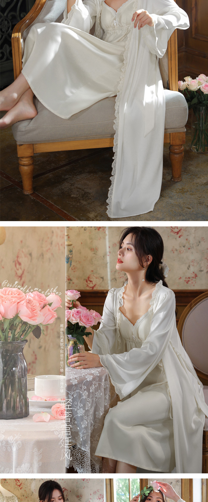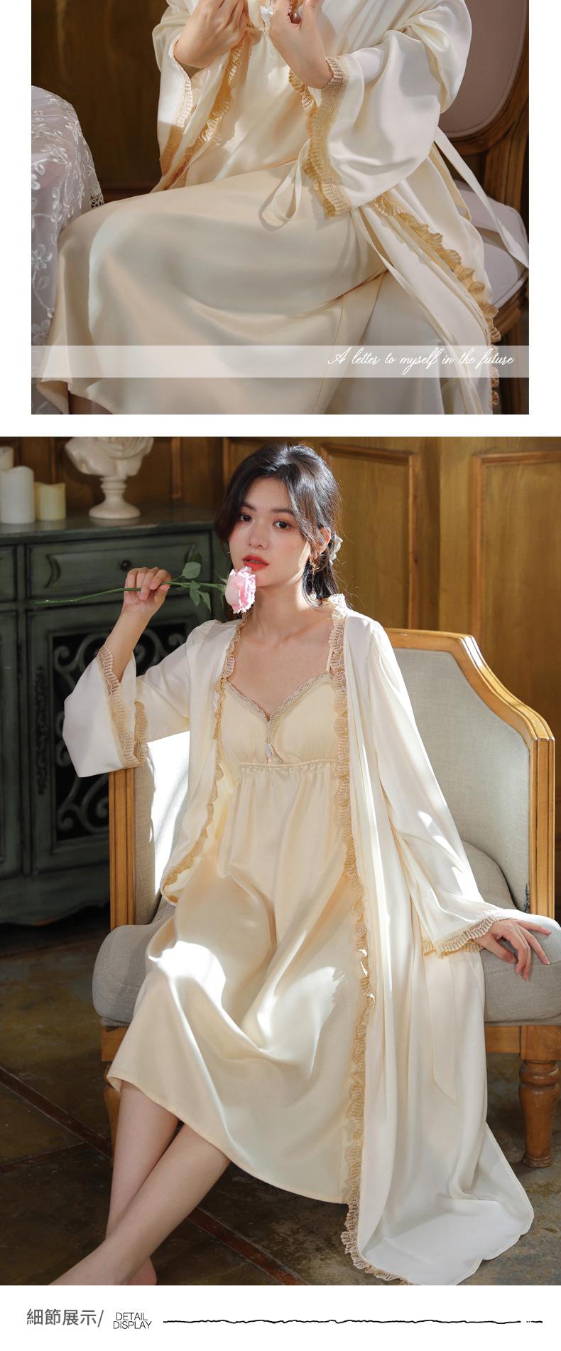 PRDN121100086 長袖睡袍女春仿真絲睡裙兩件套宮廷風睡衣胸墊外穿家居服套裝秋冬