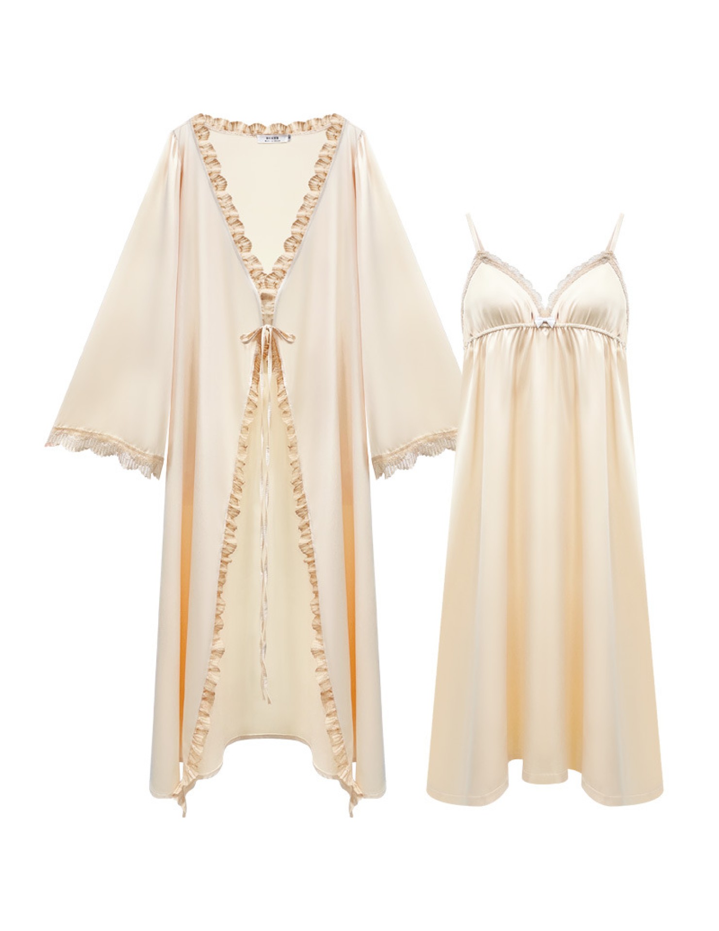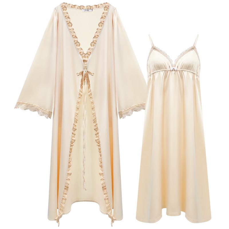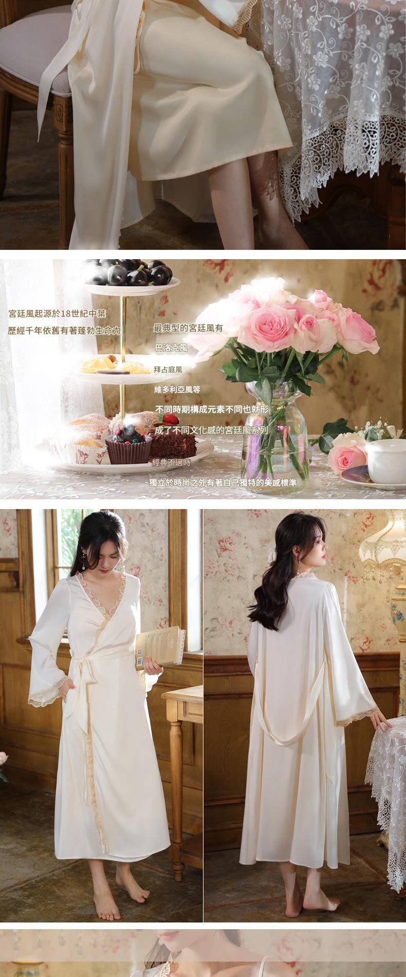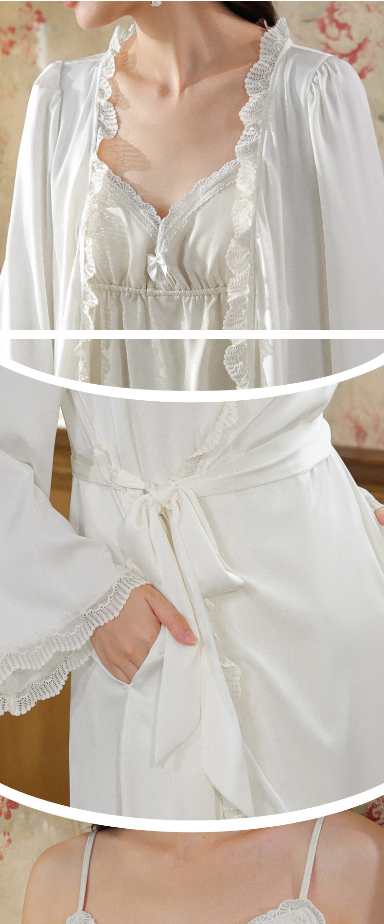 PRDN121100086 長袖睡袍女春仿真絲睡裙兩件套宮廷風睡衣胸墊外穿家居服套裝秋冬