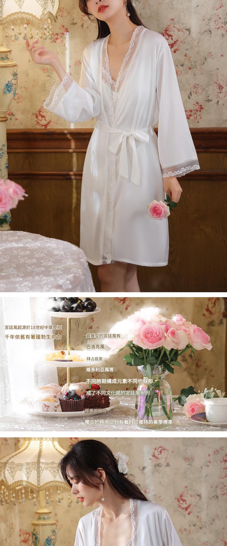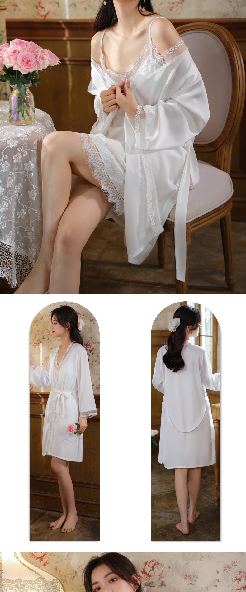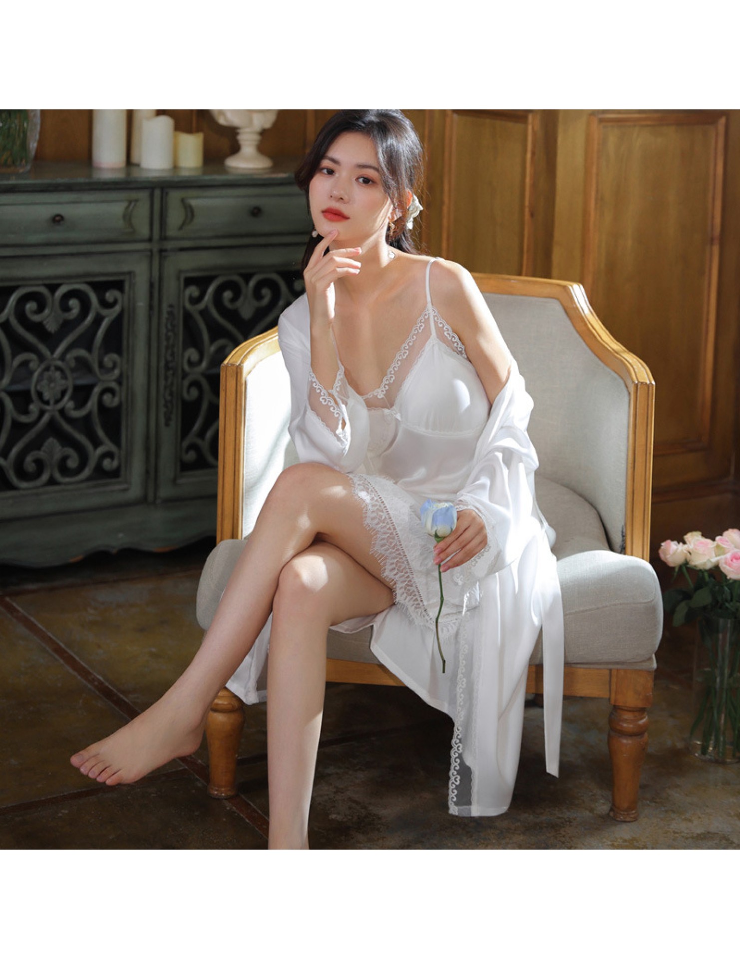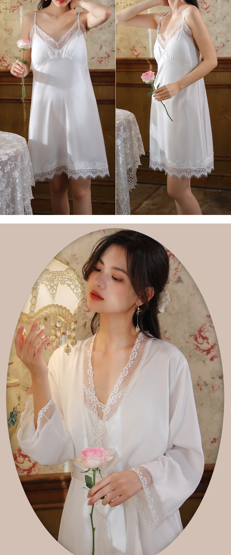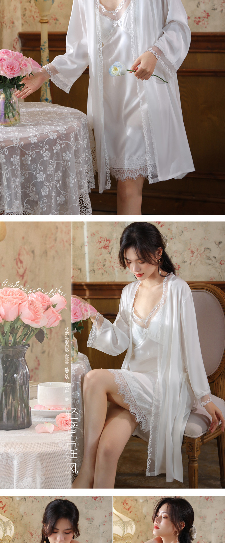 PRDN121100093 長袖睡袍女春仿真絲吊帶睡裙冰絲宮廷風睡衣胸墊外穿家居服套裝秋