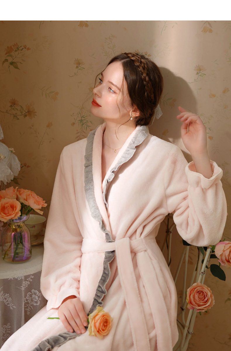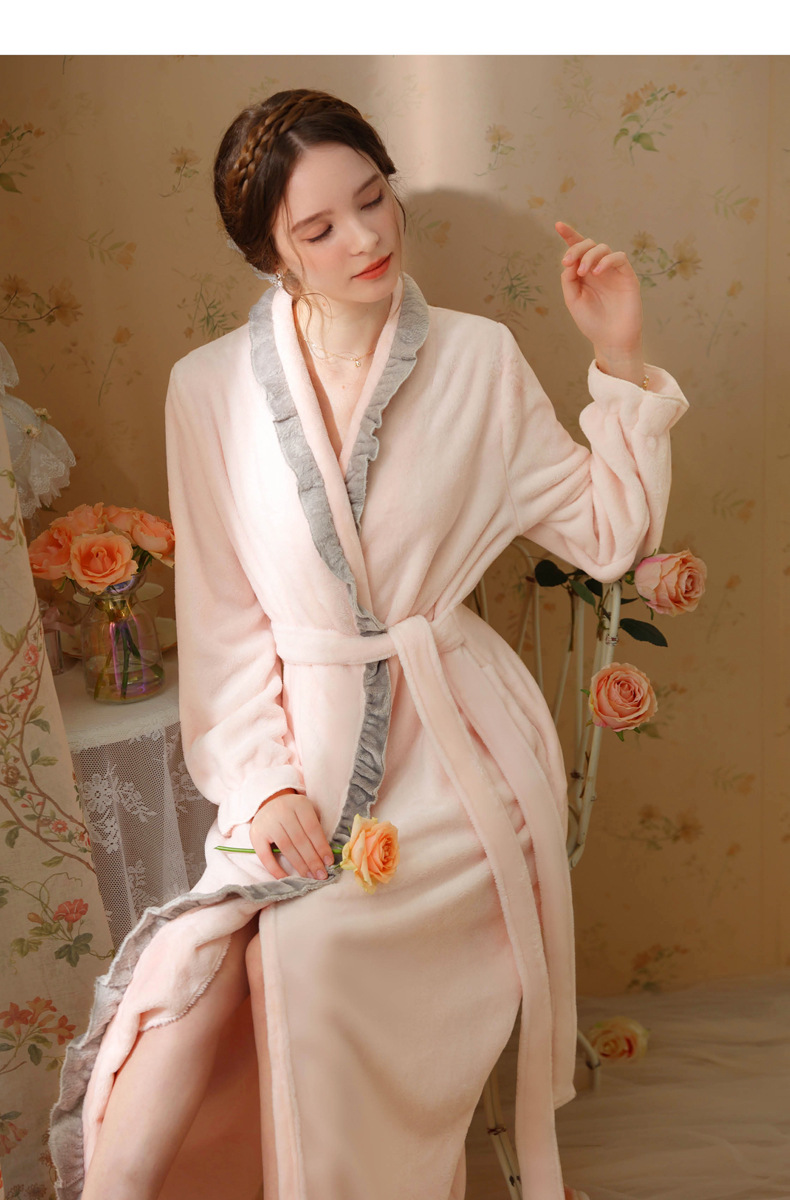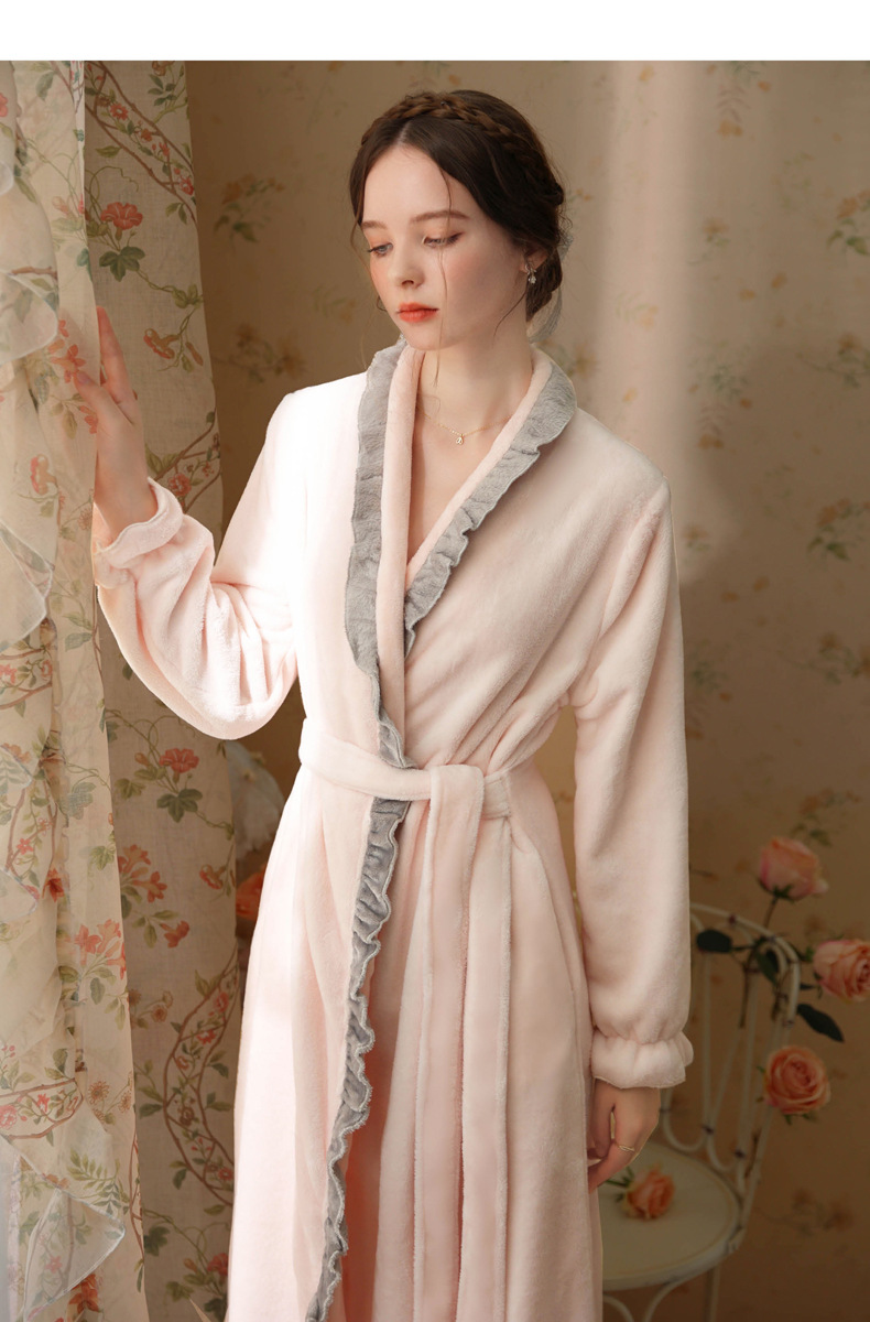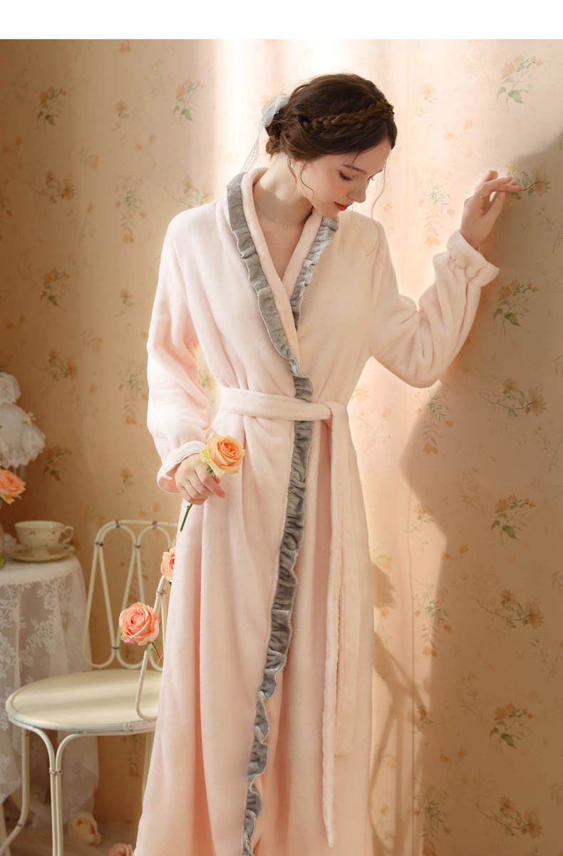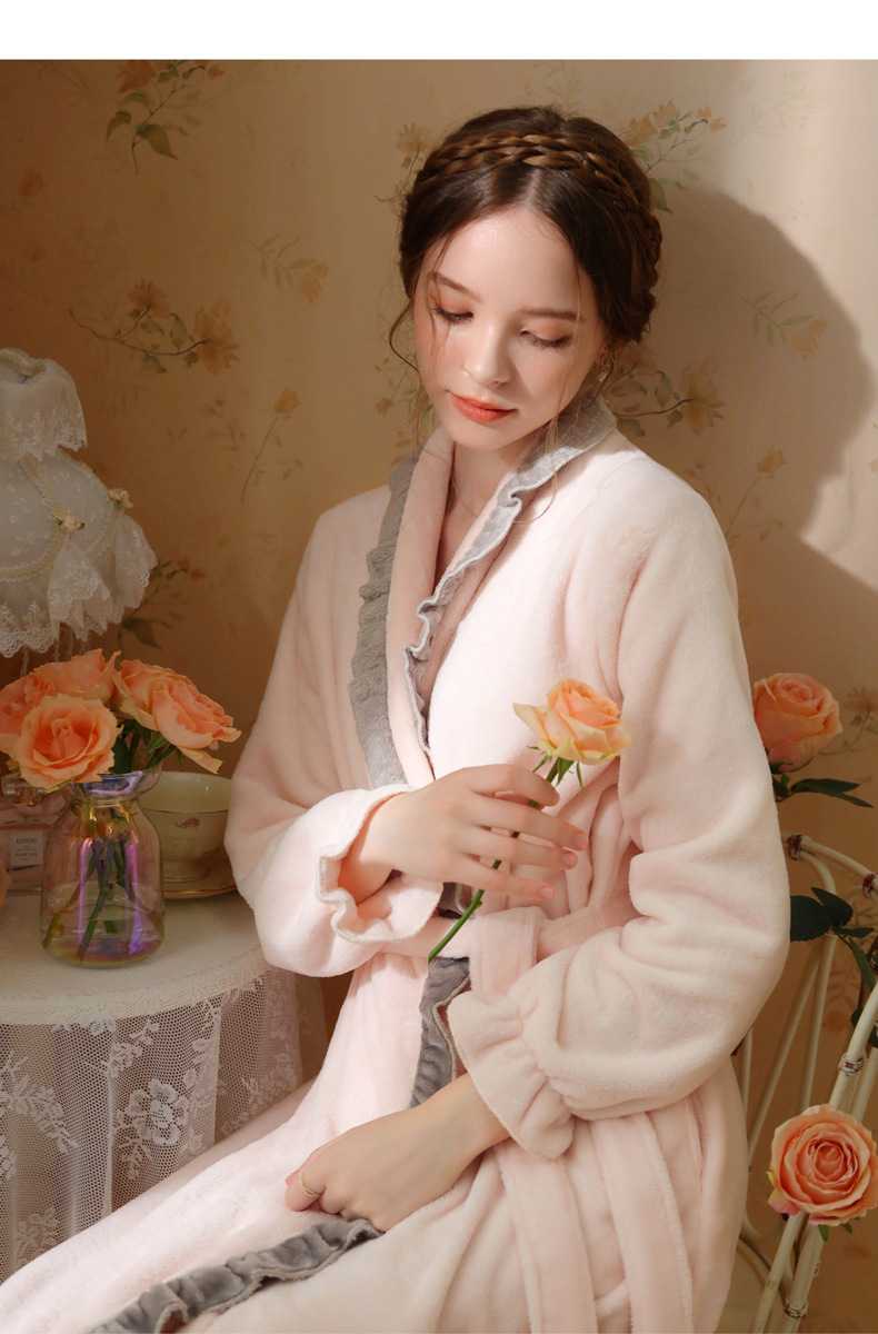 TCLN122100012 秋冬寬松復古宮廷絨睡袍少女厚長袖長款公主加厚保暖家居服絨睡衣