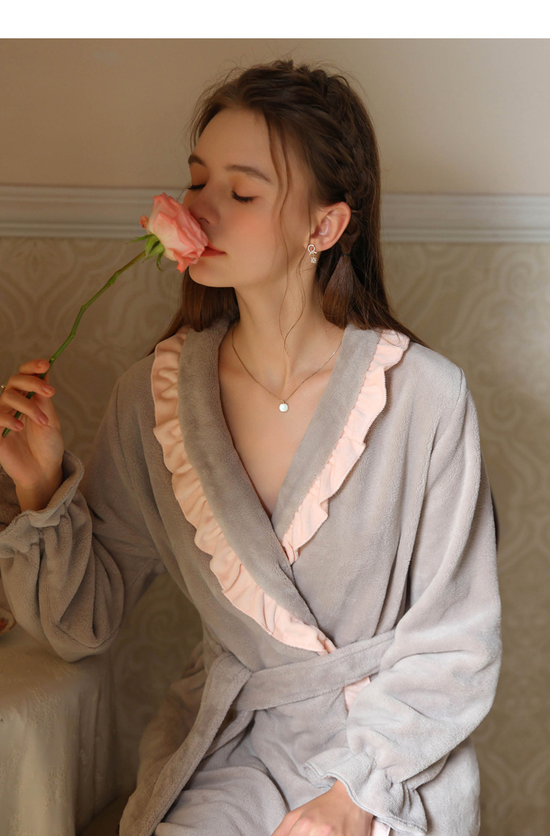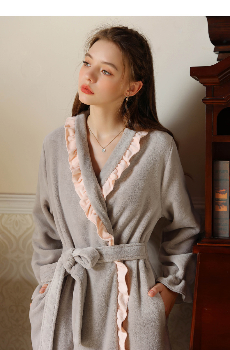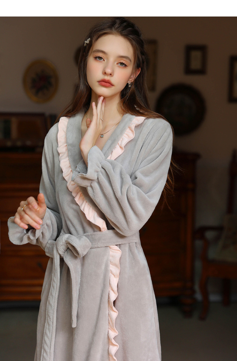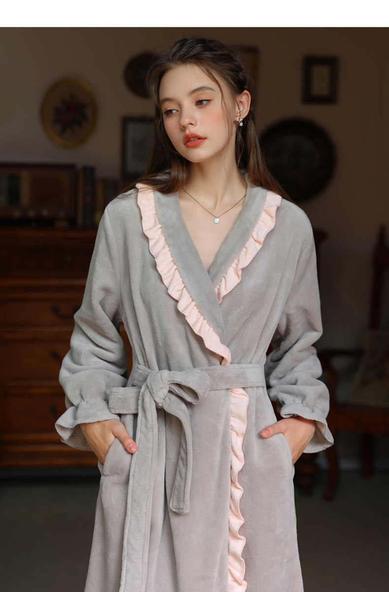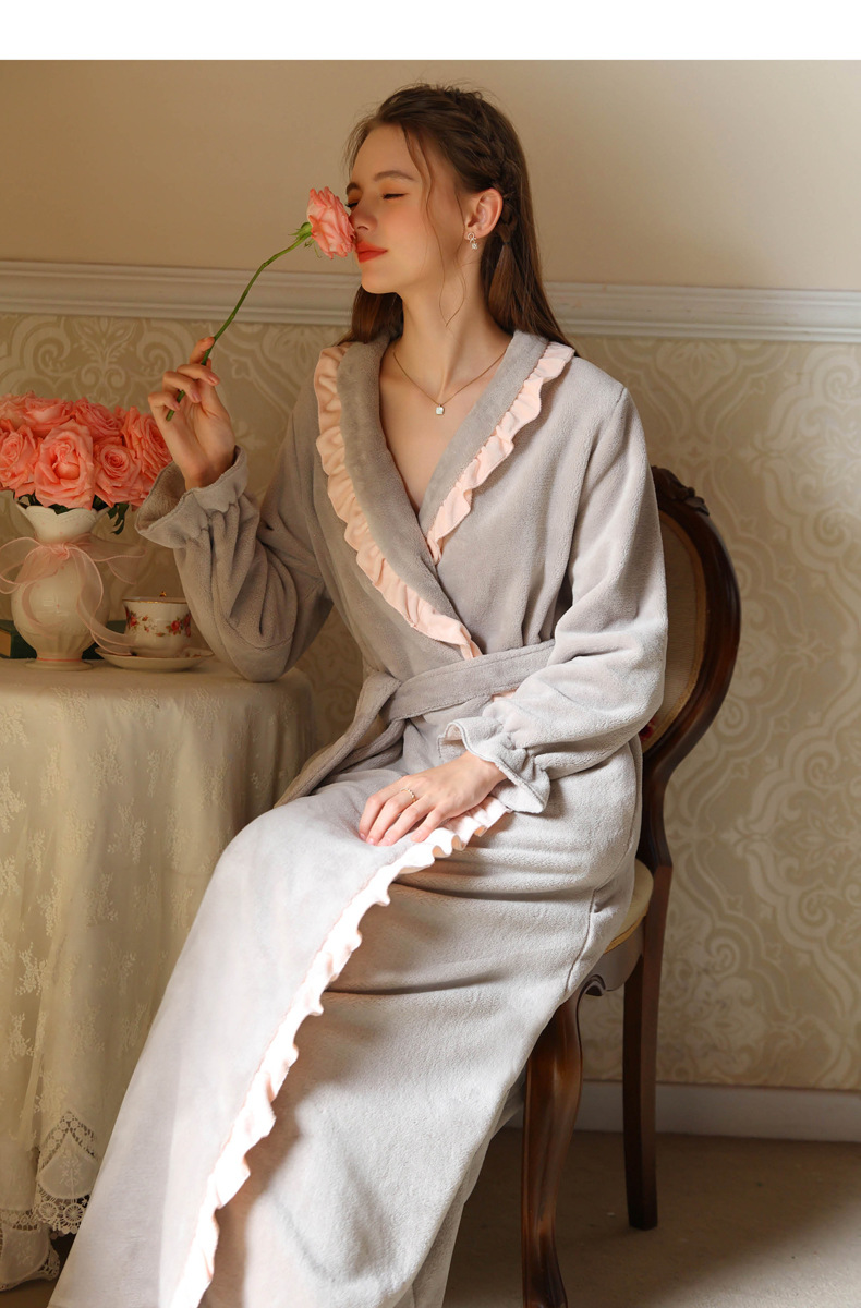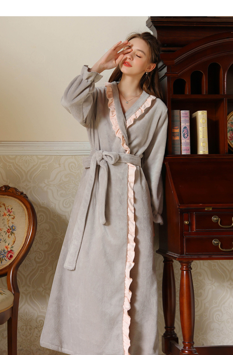 TCLN122100012 秋冬寬松復古宮廷絨睡袍少女厚長袖長款公主加厚保暖家居服絨睡衣