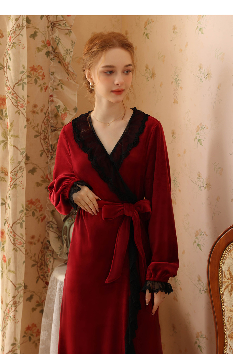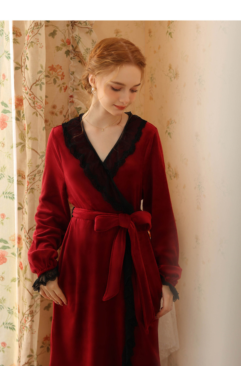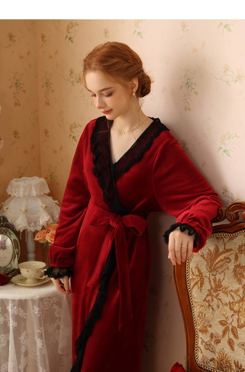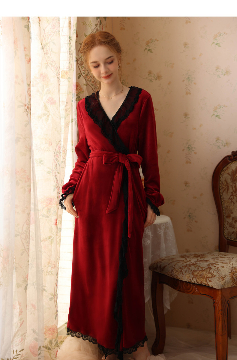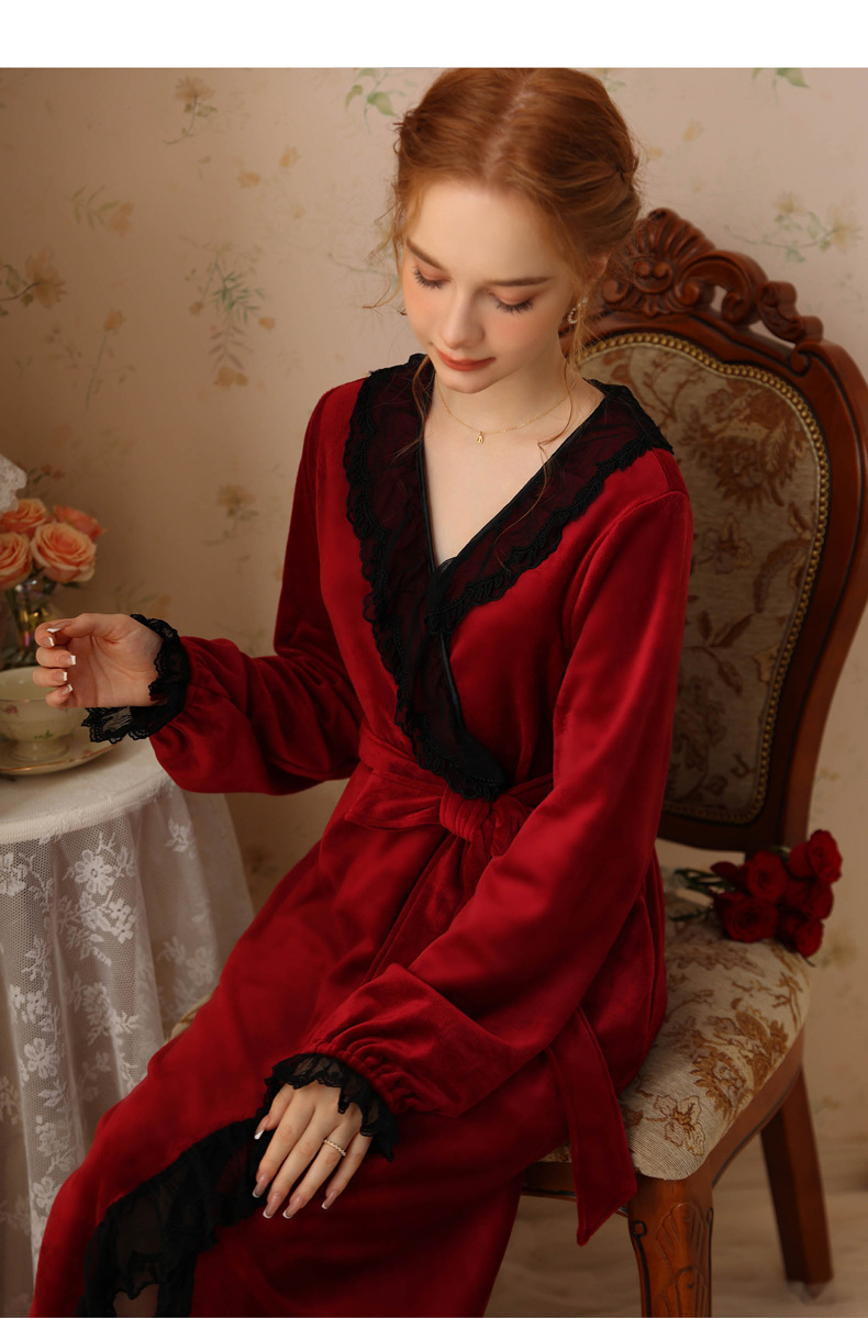 TCLN122100006 秋冬性感蕾絲睡袍絨睡衣女宮廷風法式復古長袖長款加厚保暖家居服