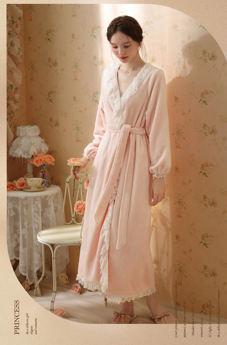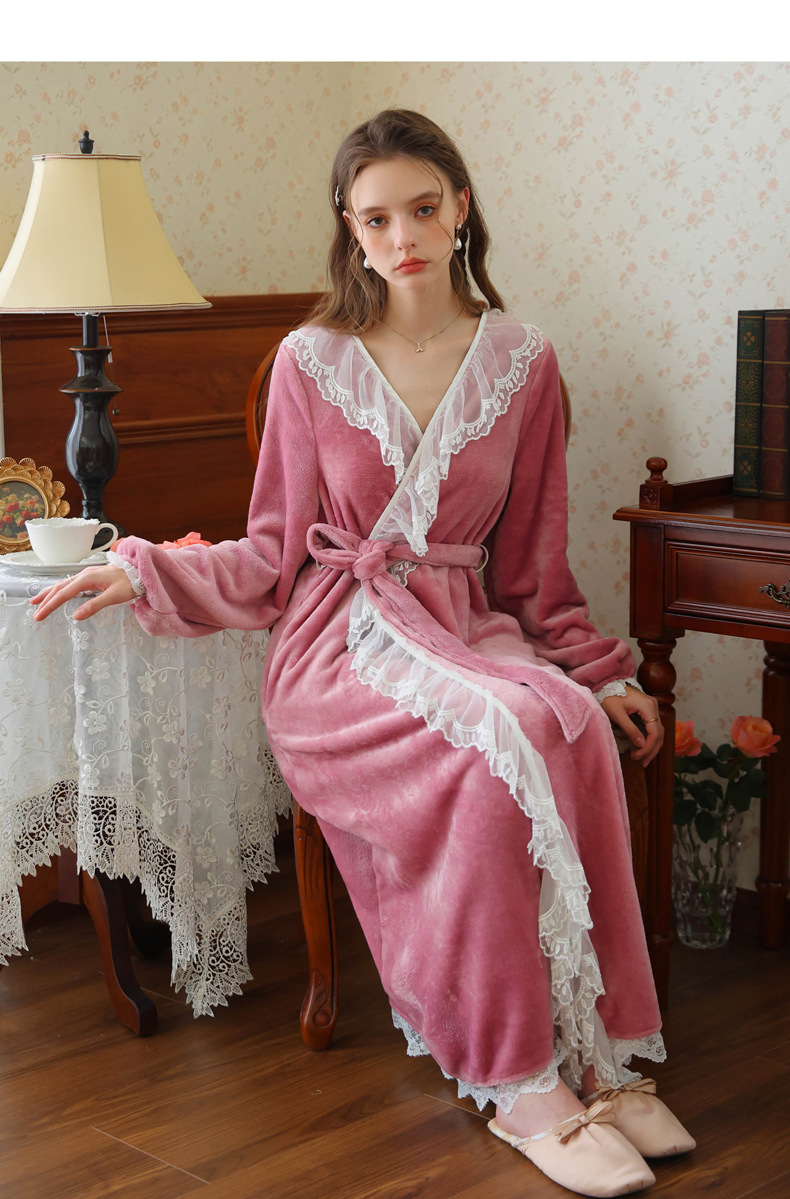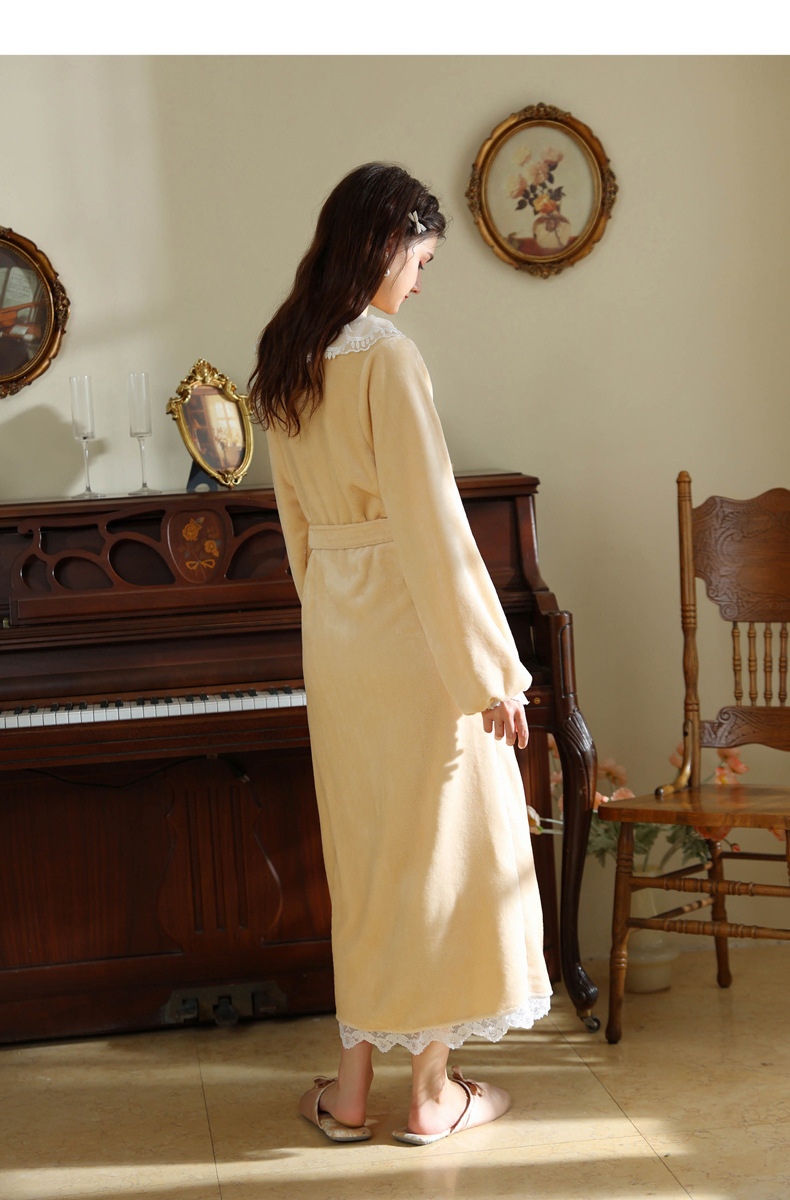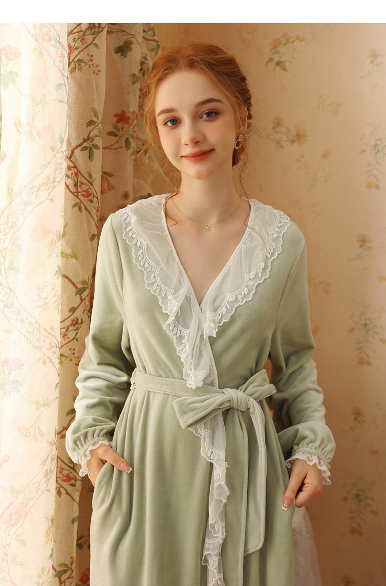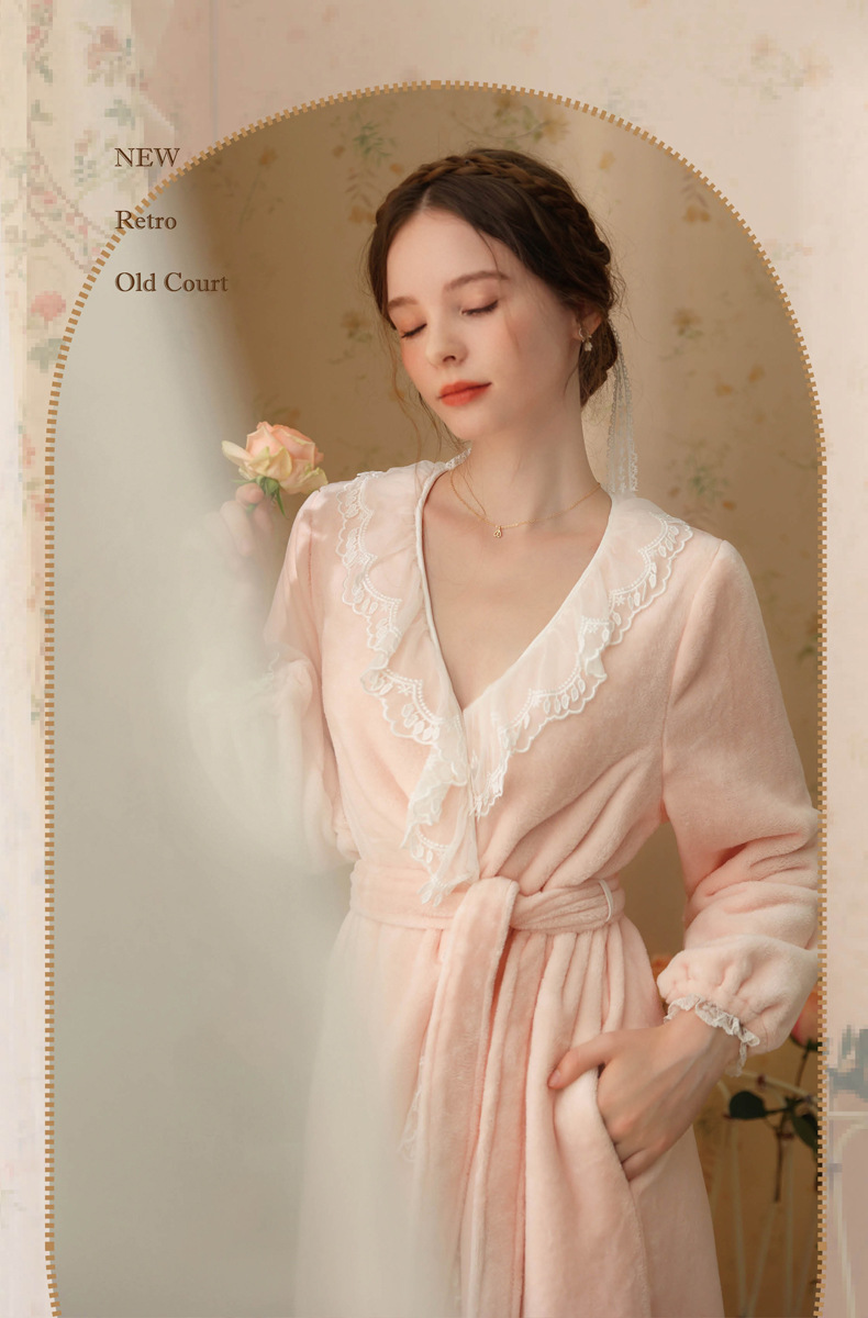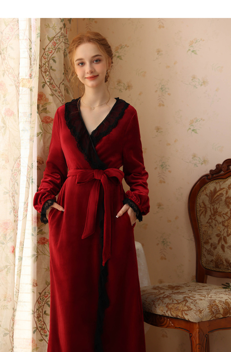 TCLN122100006 秋冬性感蕾絲睡袍絨睡衣女宮廷風法式復古長袖長款加厚保暖家居服