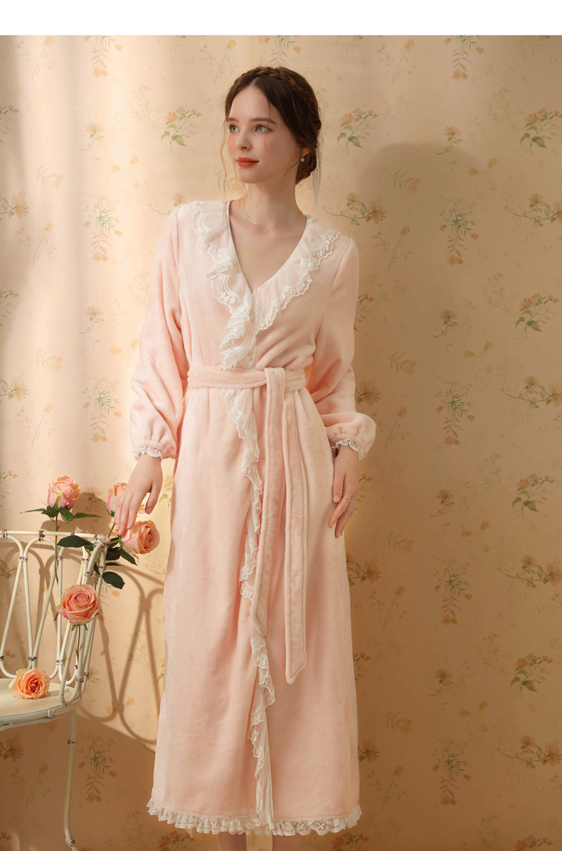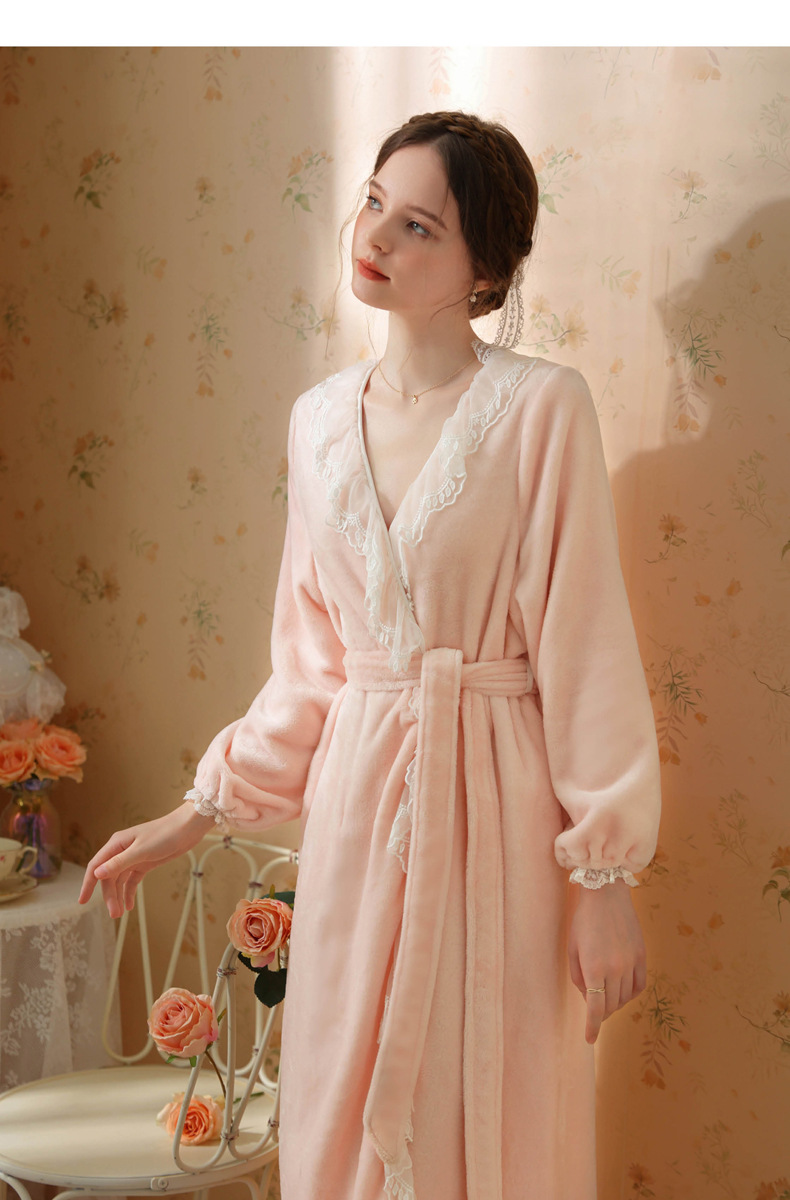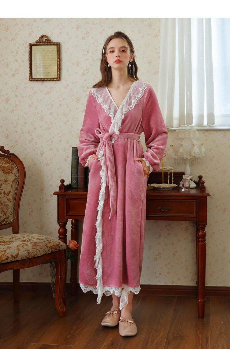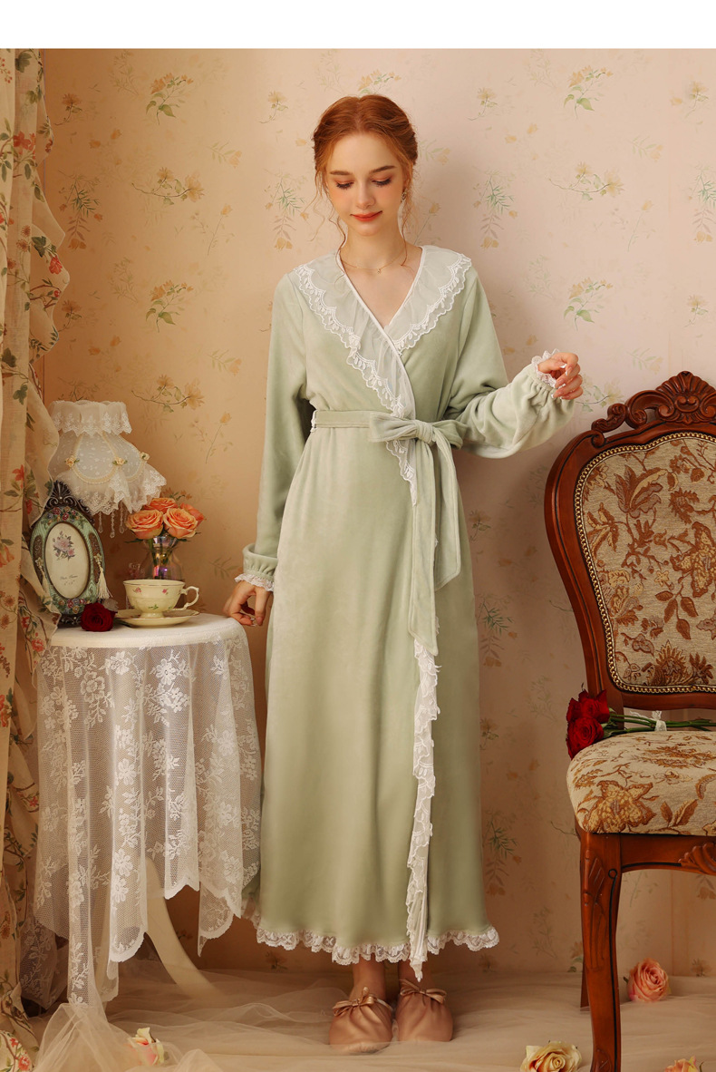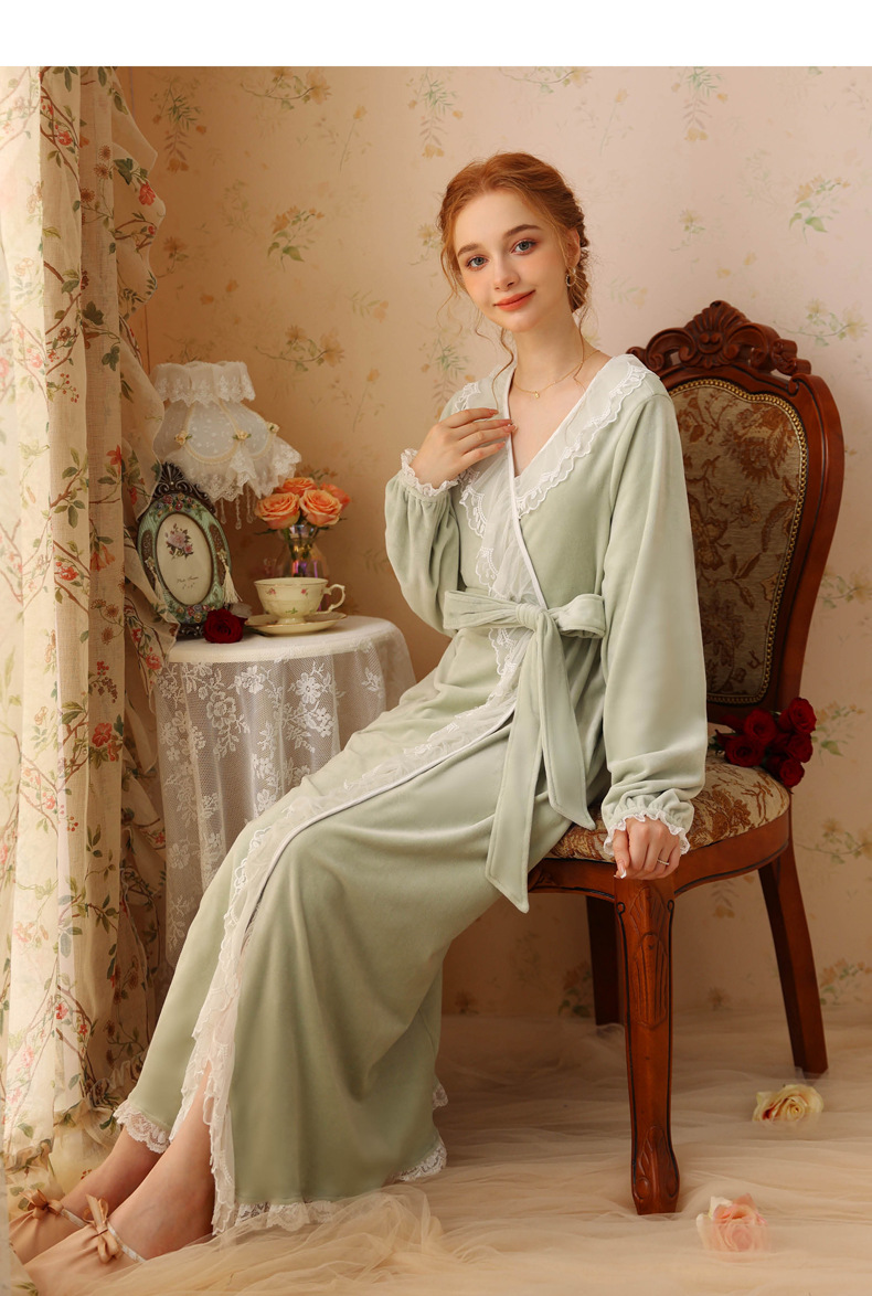 TCLN122100006 秋冬性感蕾絲睡袍絨睡衣女宮廷風法式復古長袖長款加厚保暖家居服