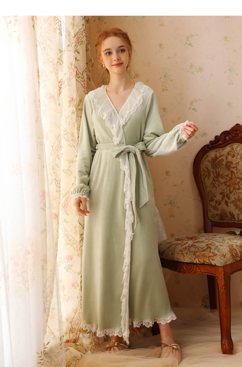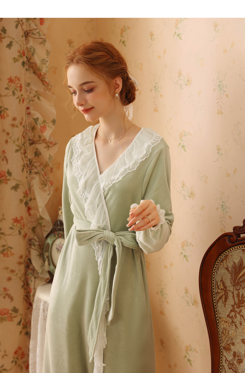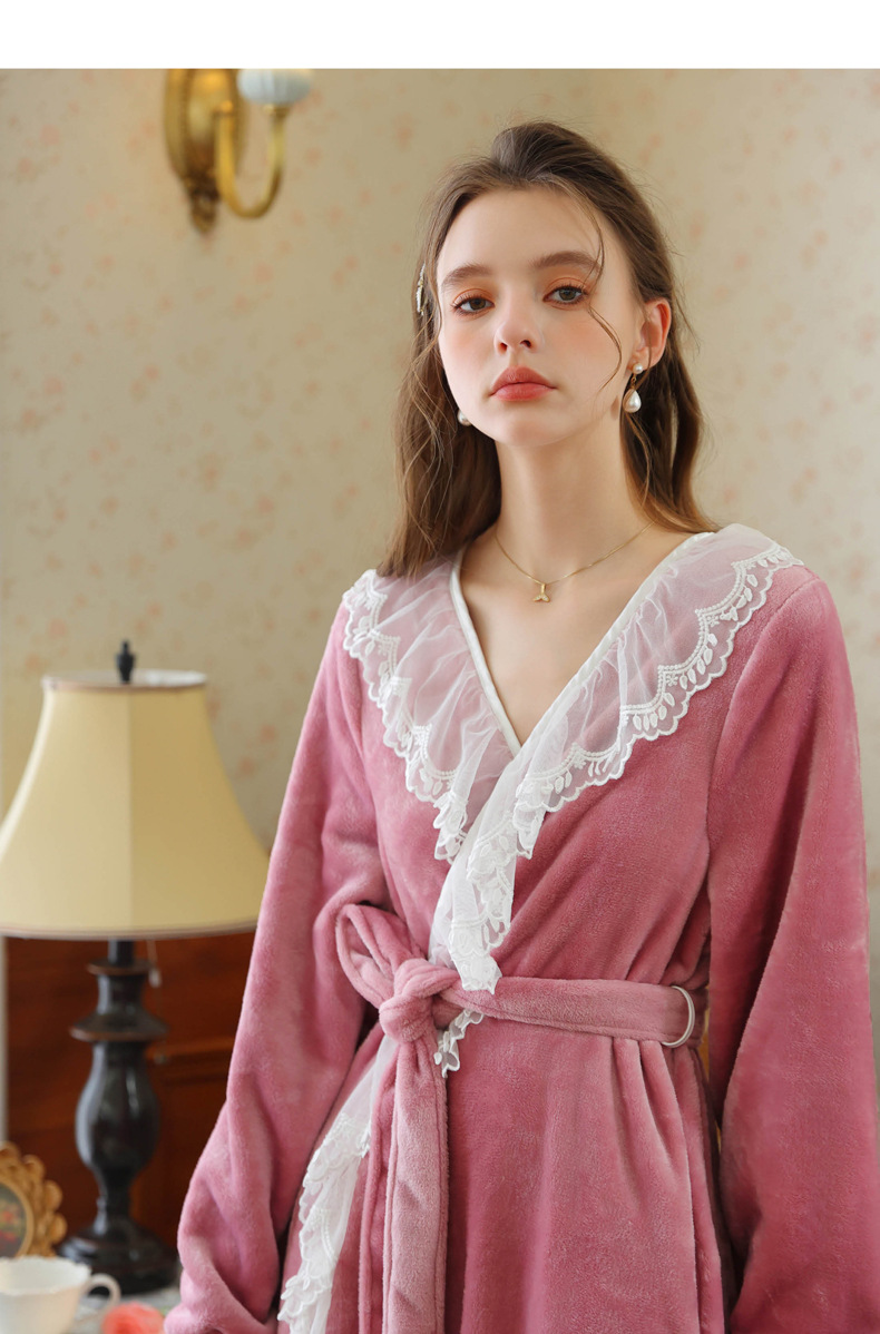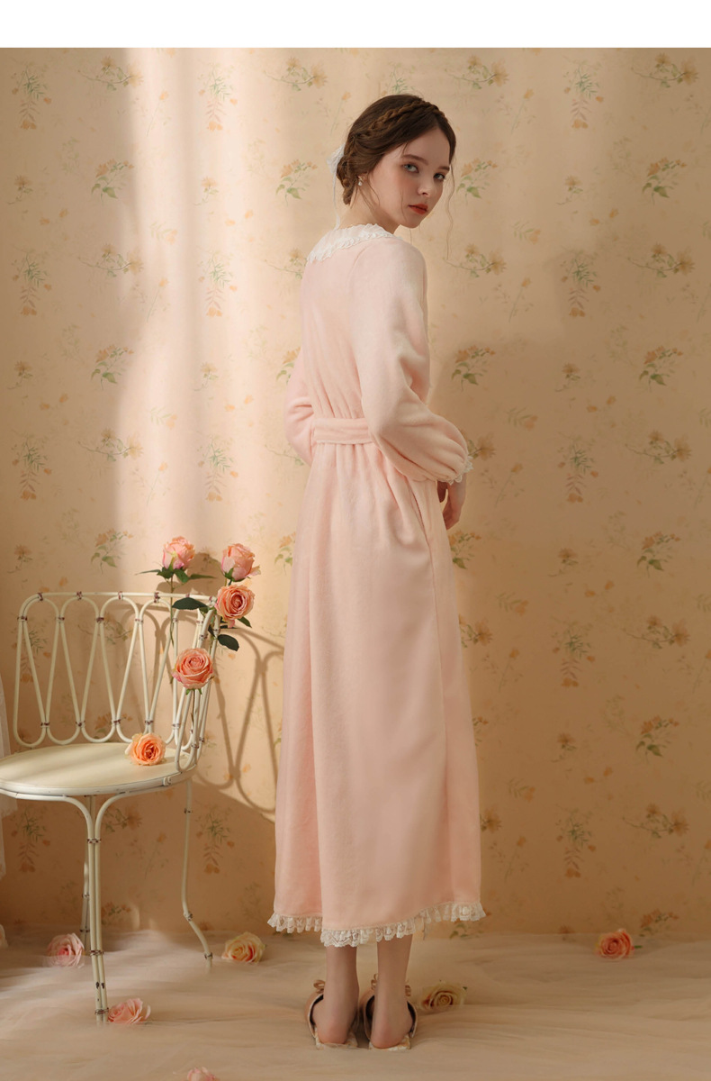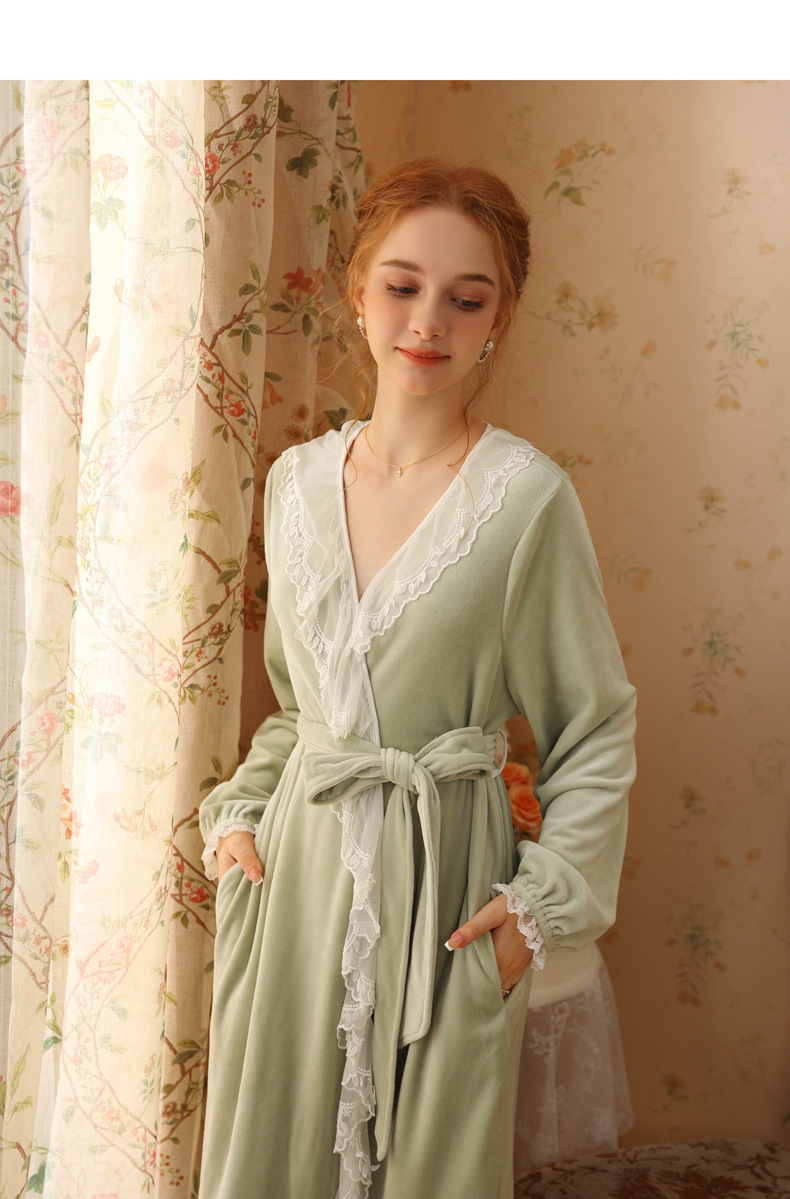 TCLN122100006 秋冬性感蕾絲睡袍絨睡衣女宮廷風法式復古長袖長款加厚保暖家居服