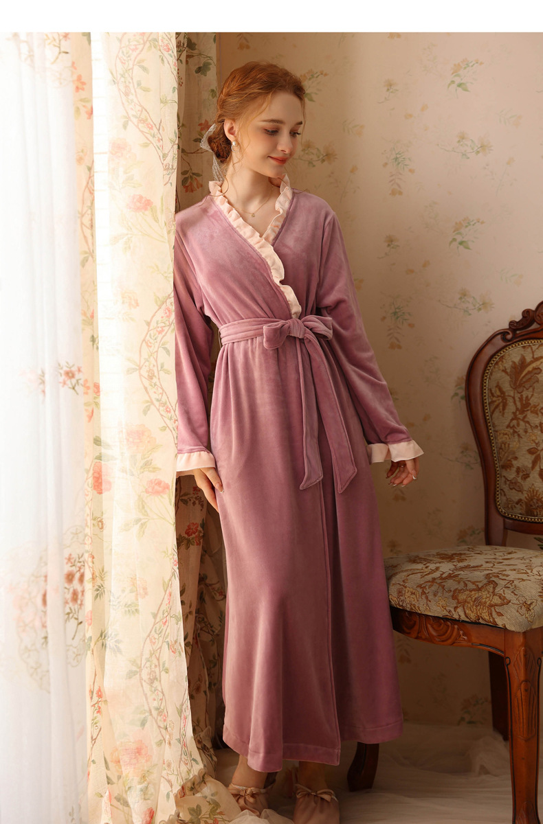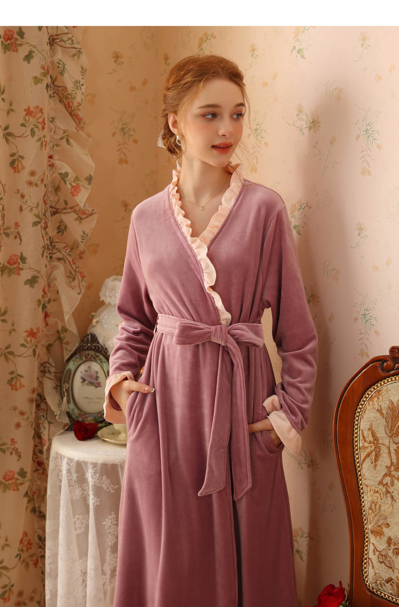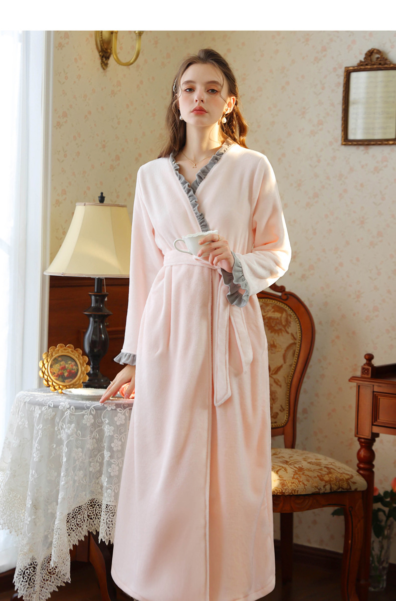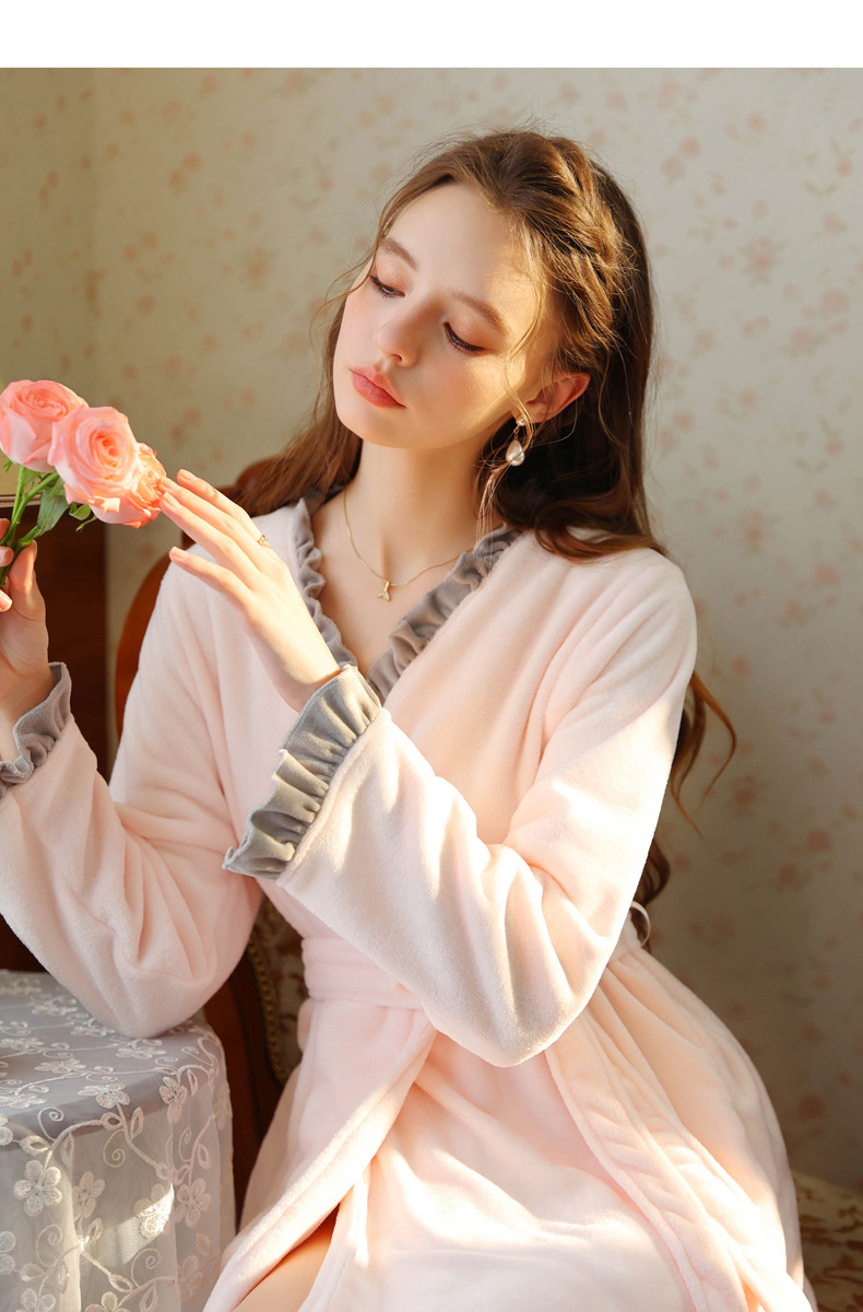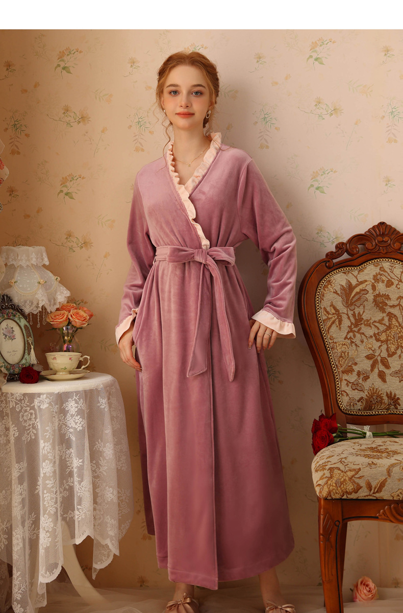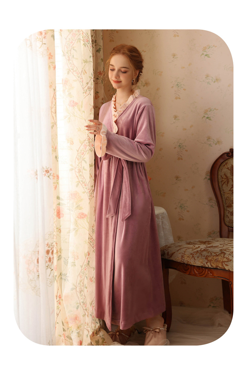 TCLN122100023 絨睡袍少女秋冬加厚浴袍長款甜美性感法式公主長款睡衣保暖家居服