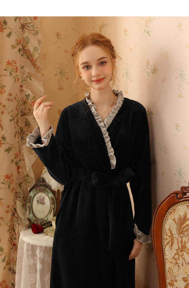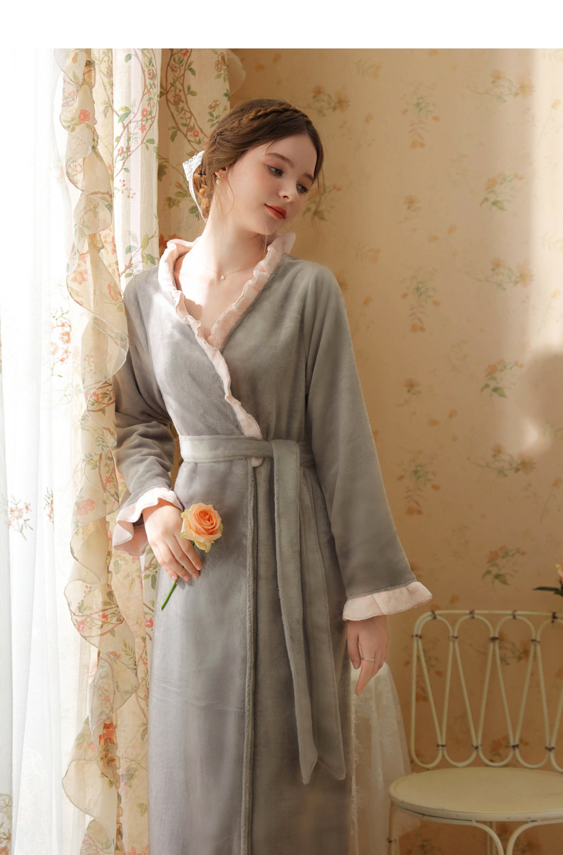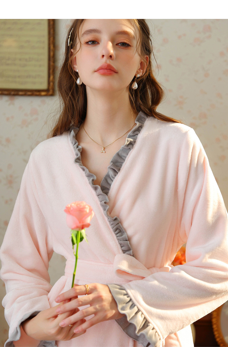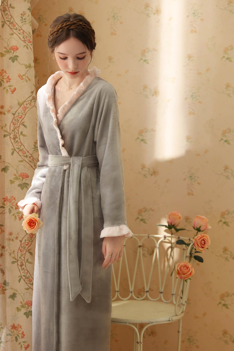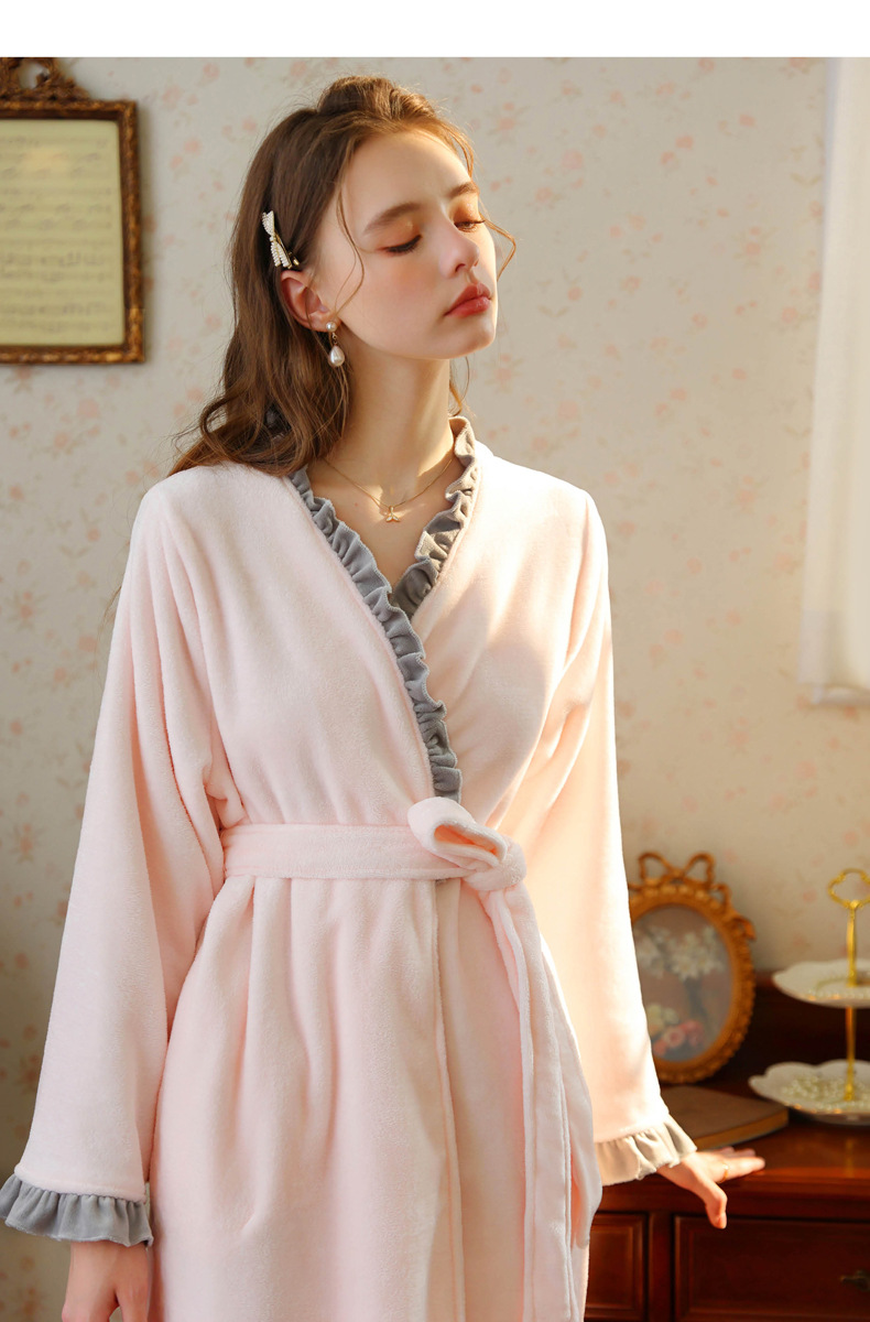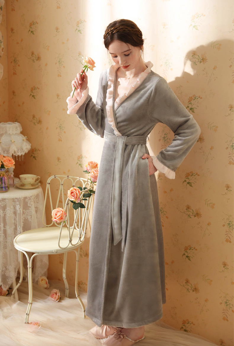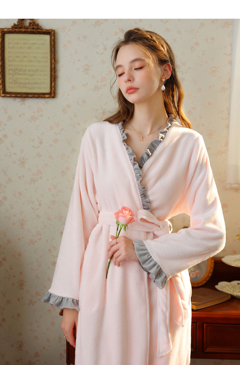 TCLN122100023 絨睡袍少女秋冬加厚浴袍長款甜美性感法式公主長款睡衣保暖家居服