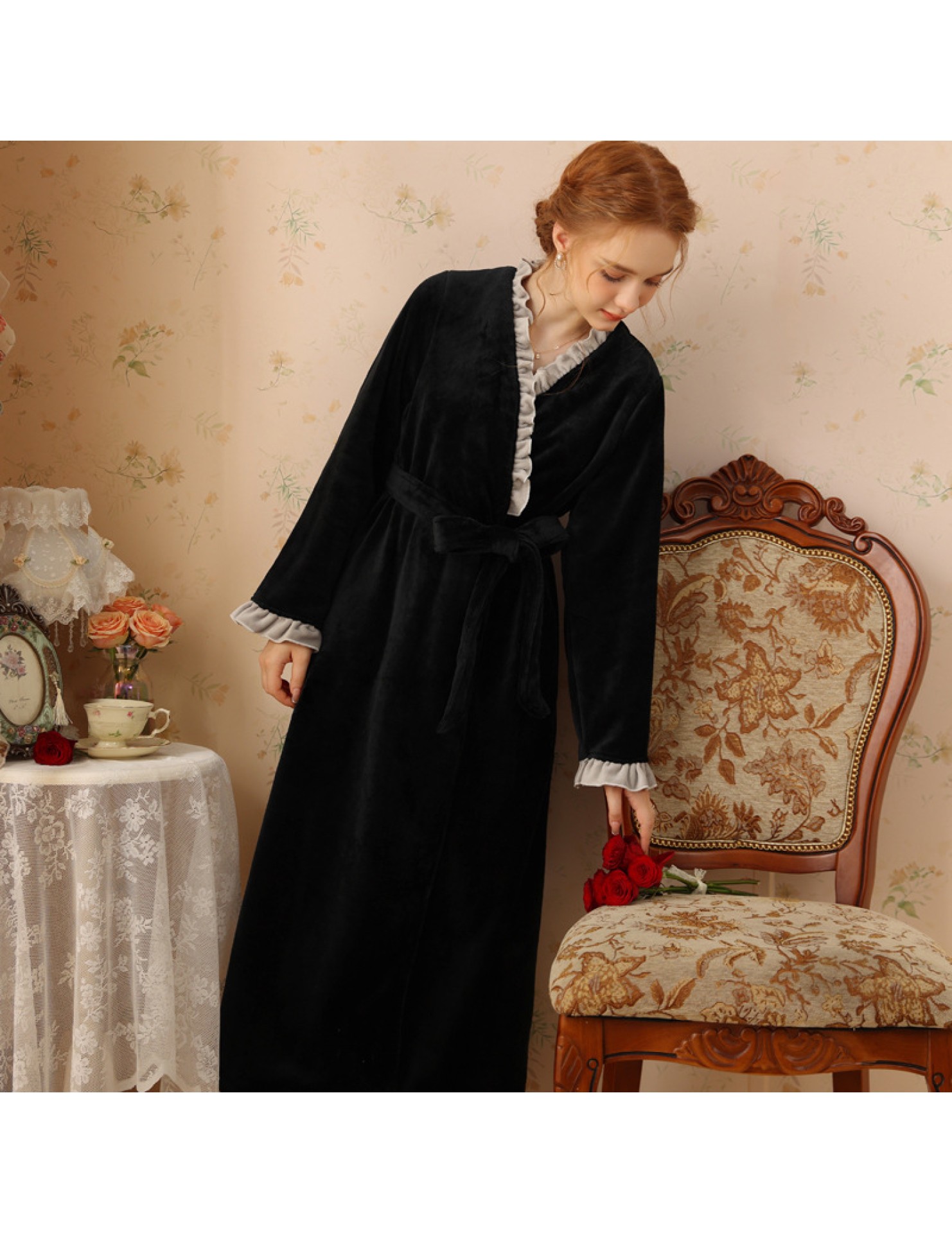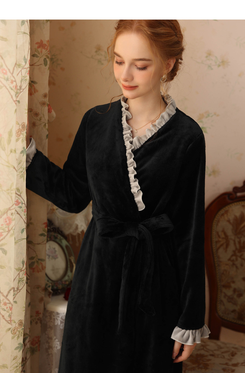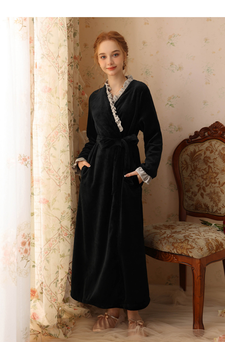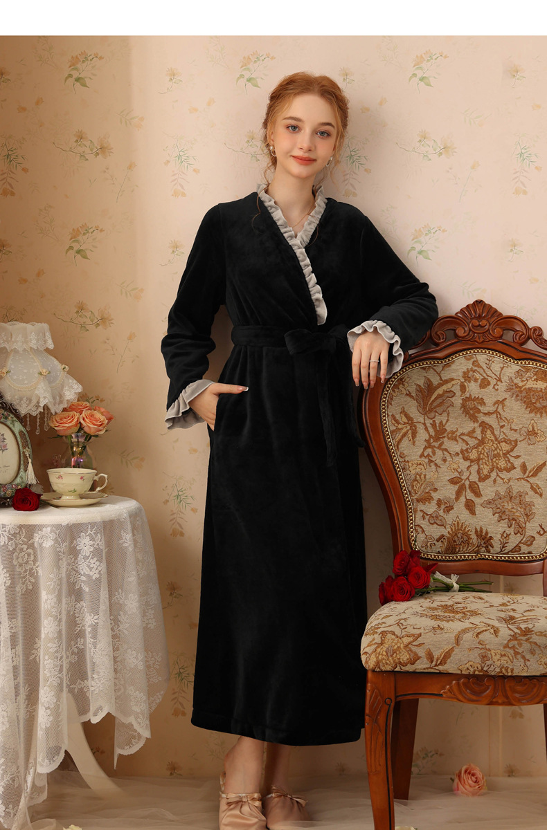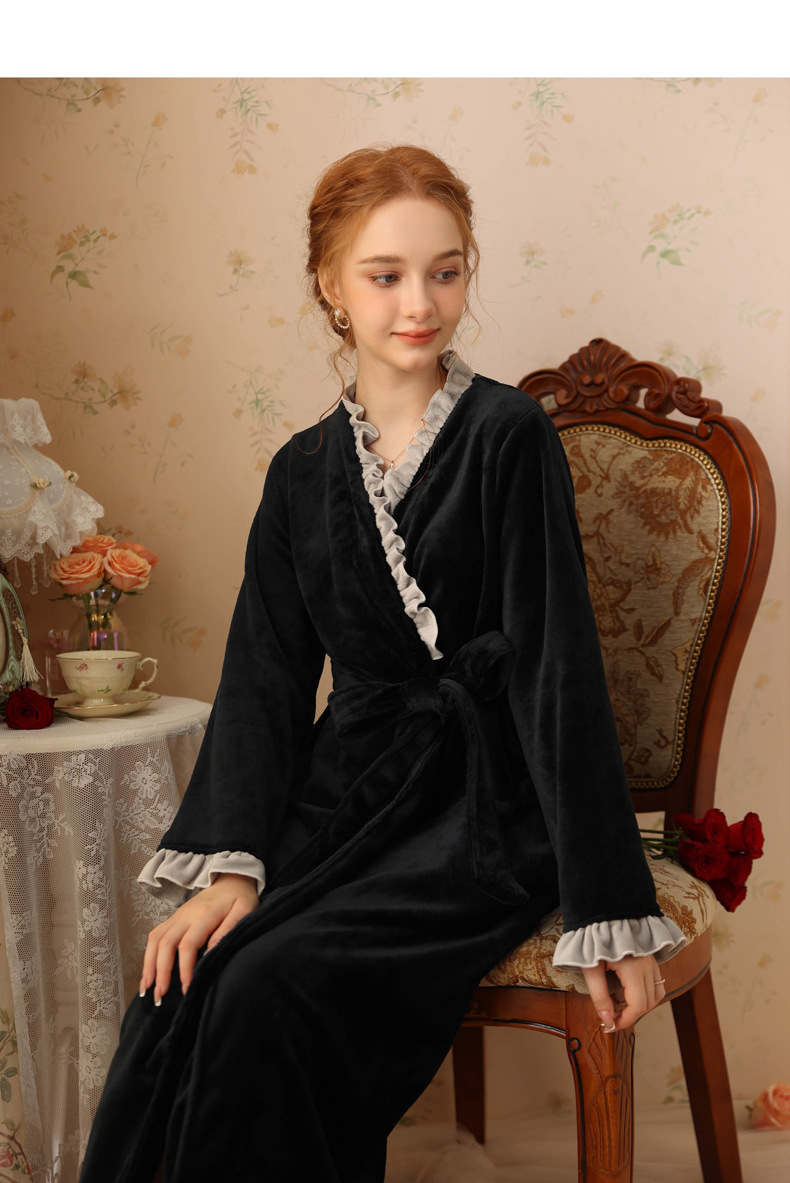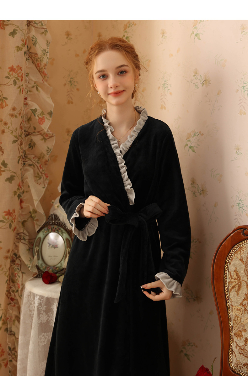 TCLN122100023 絨睡袍少女秋冬加厚浴袍長款甜美性感法式公主長款睡衣保暖家居服