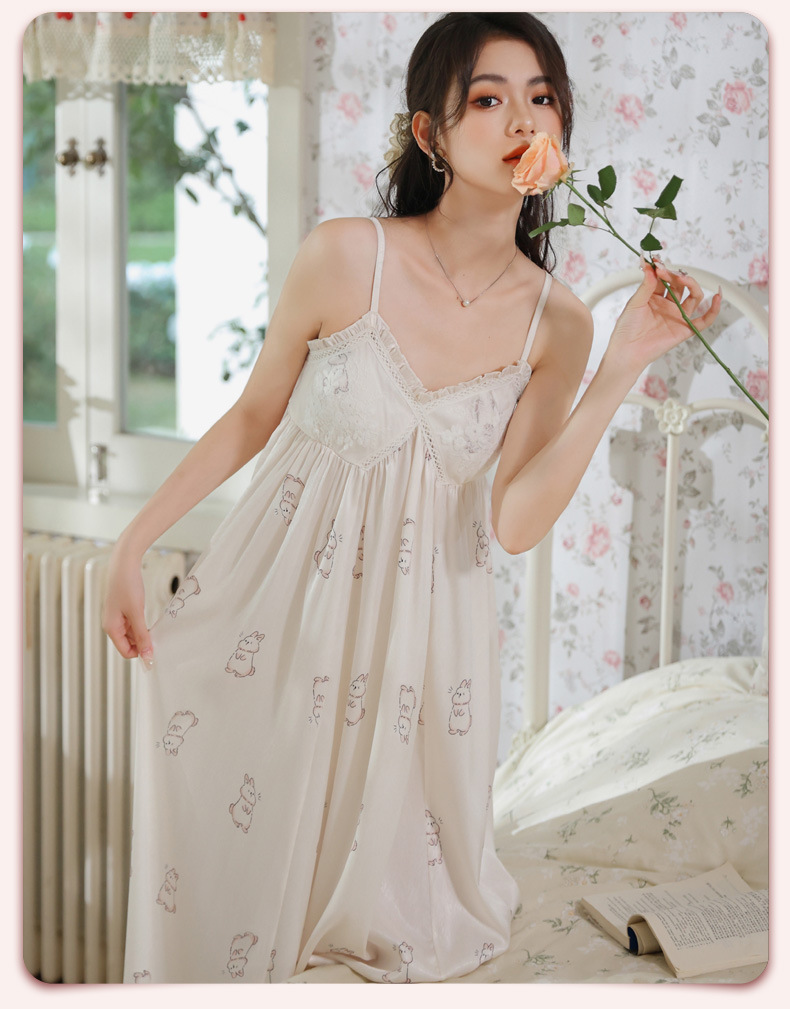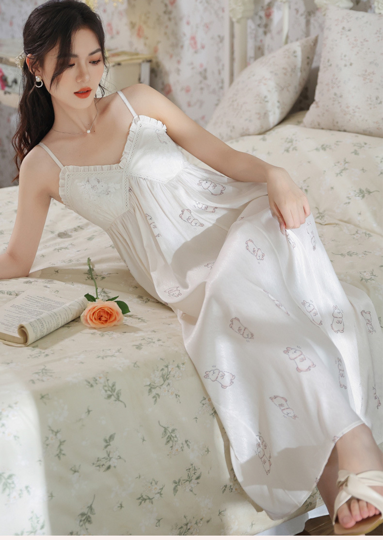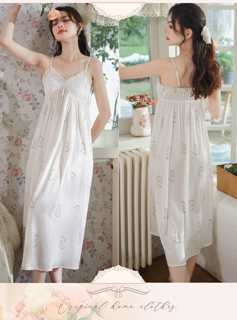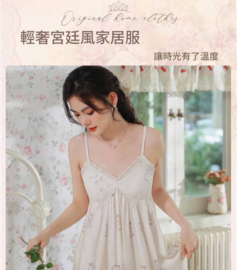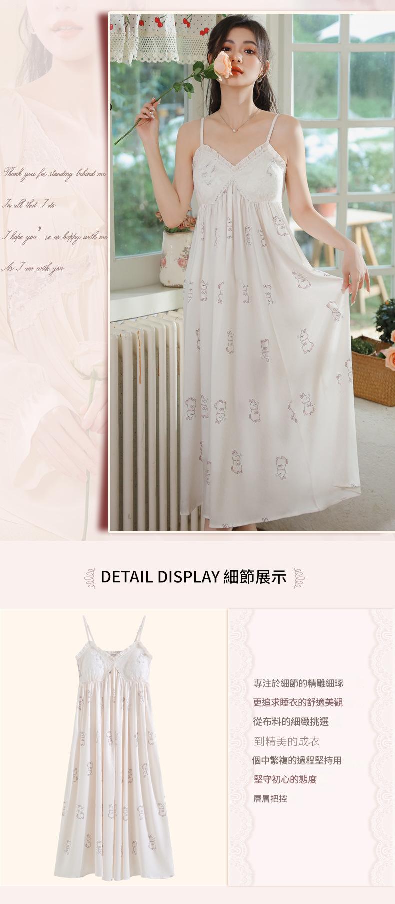PRDN121100102 薄款吊帶睡裙女夏季可愛宮廷風長款冰絲睡衣裙帶胸墊可外穿家居服