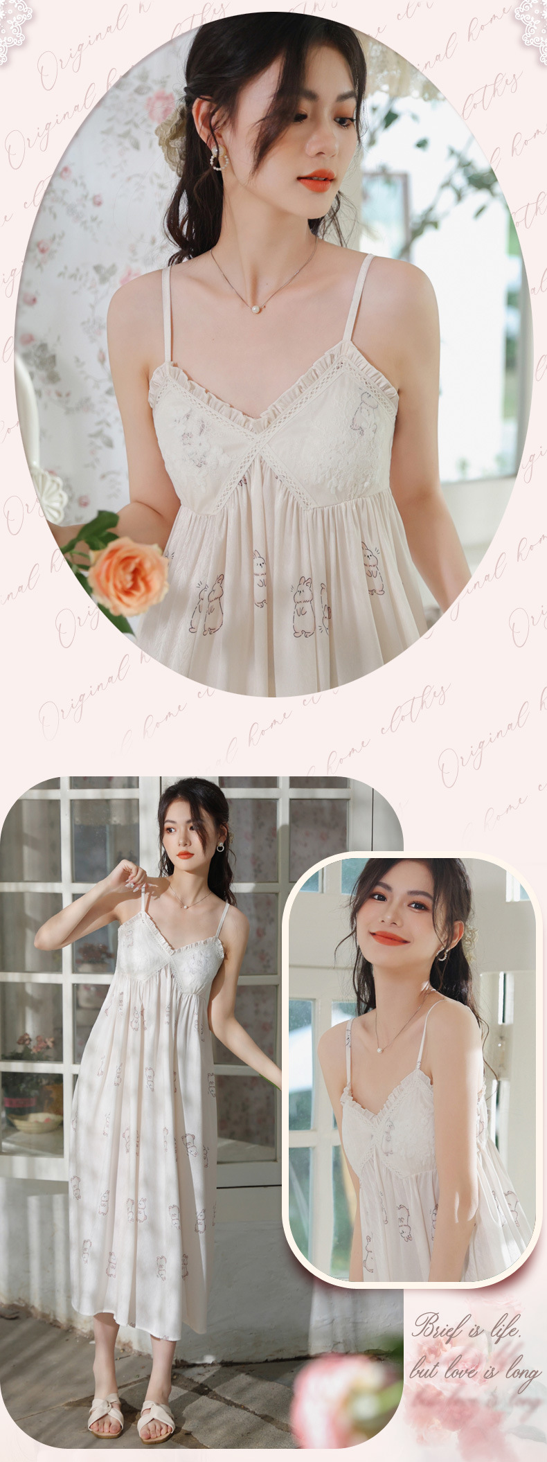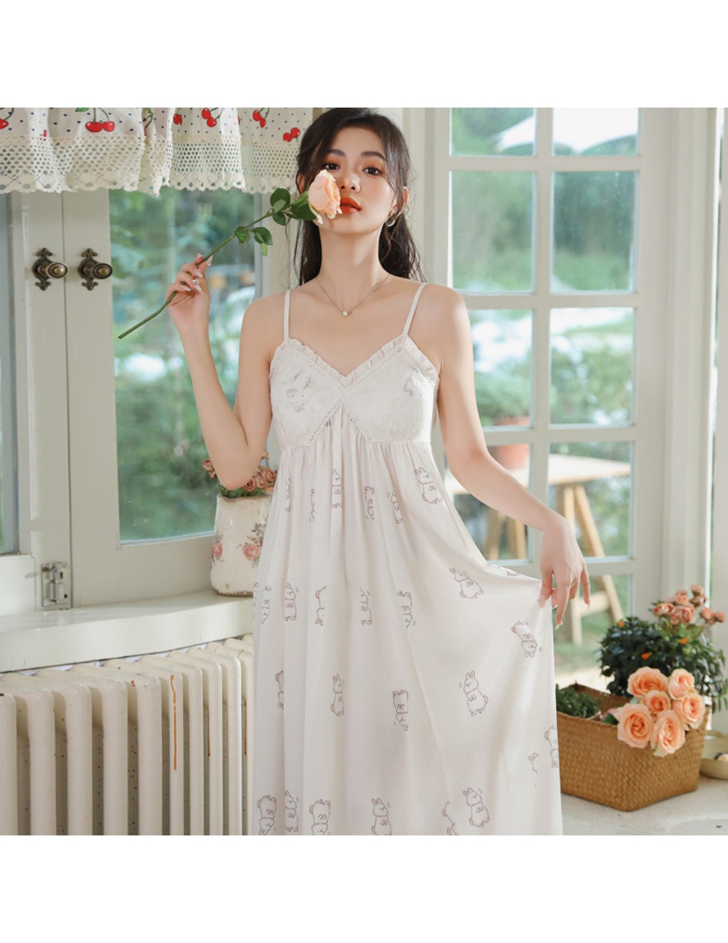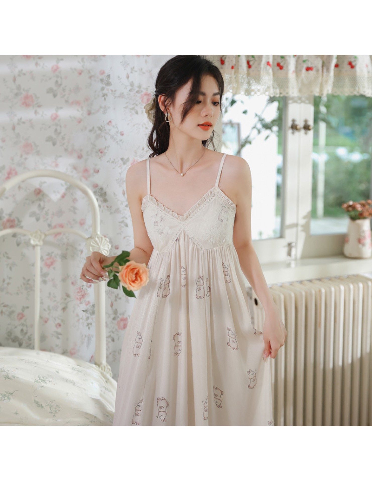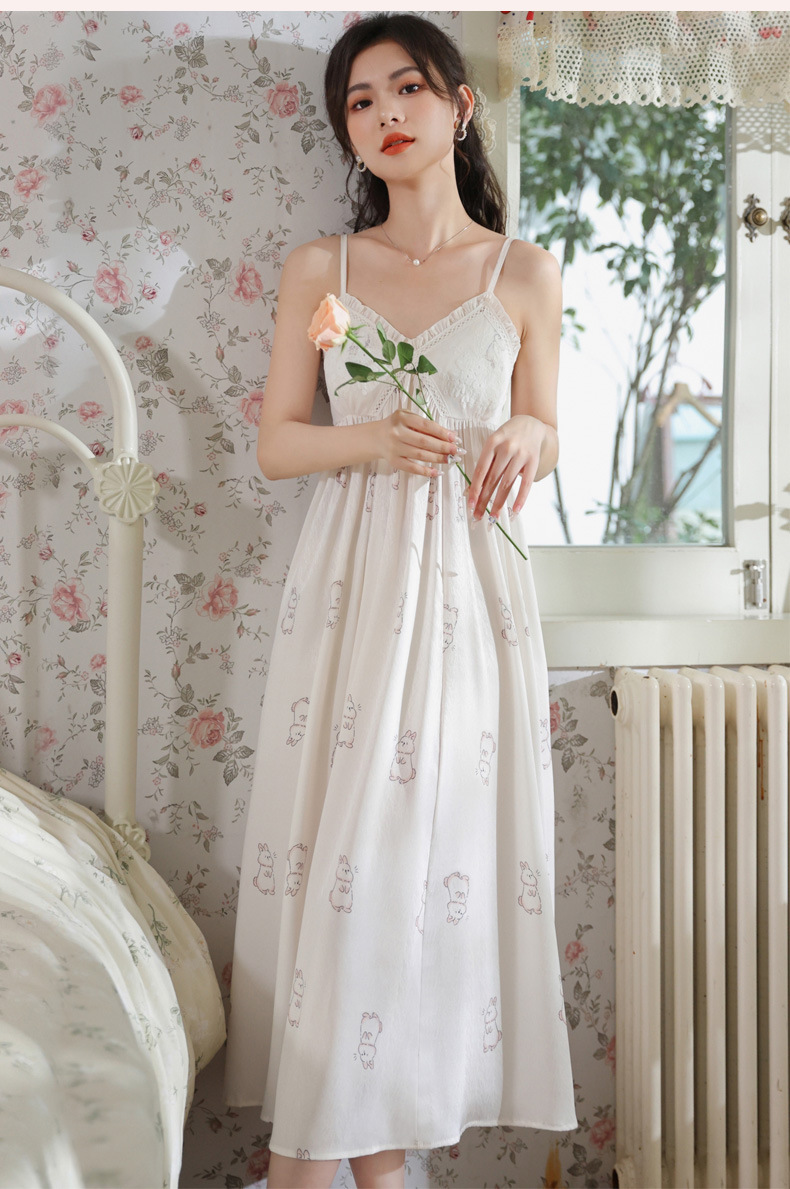PRDN121100102 薄款吊帶睡裙女夏季可愛宮廷風長款冰絲睡衣裙帶胸墊可外穿家居服