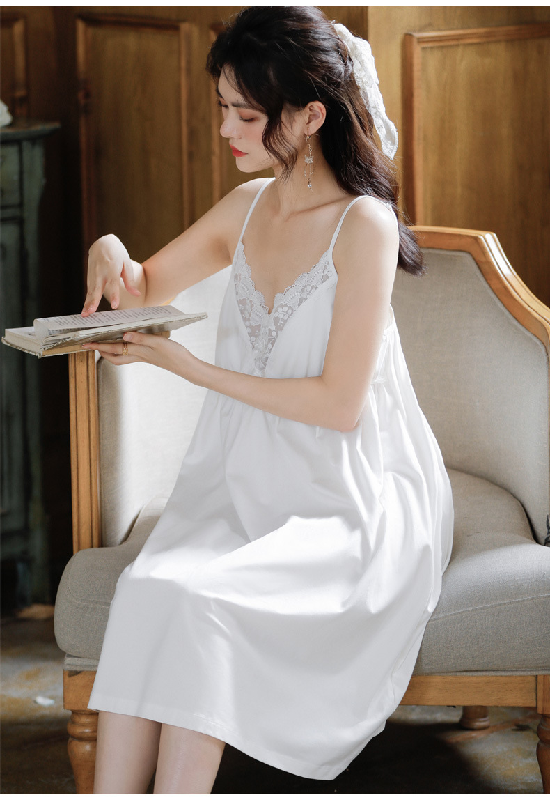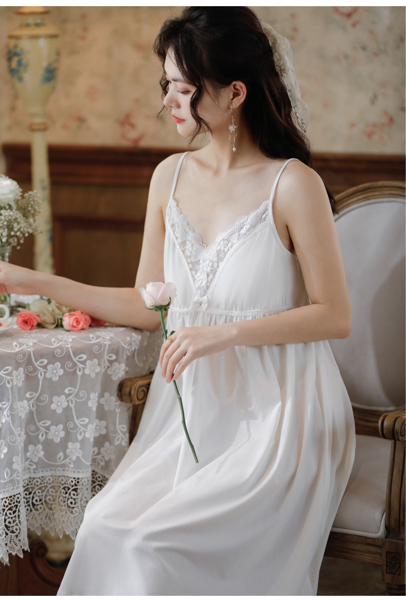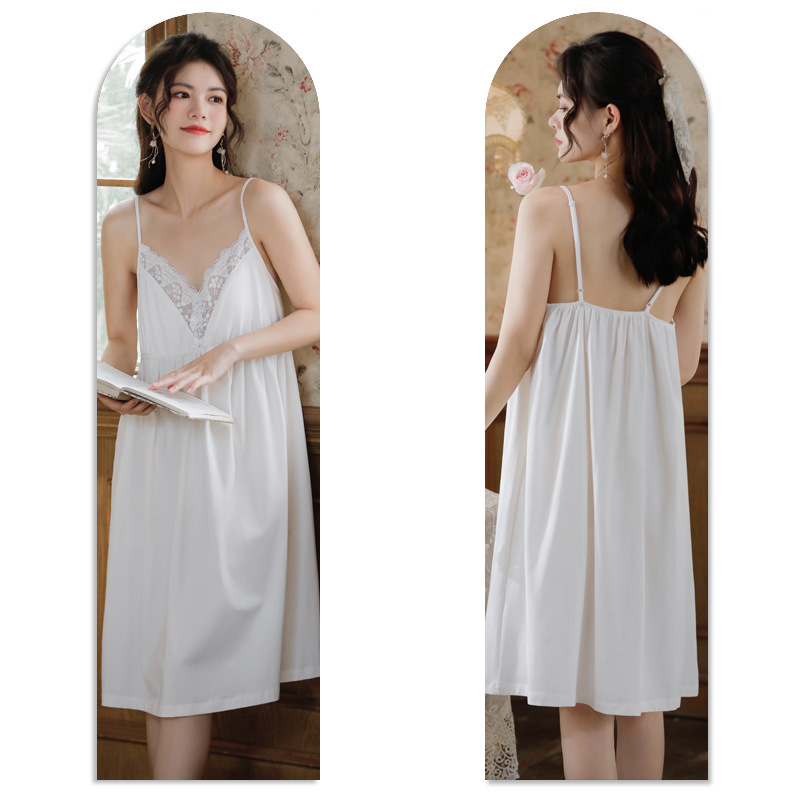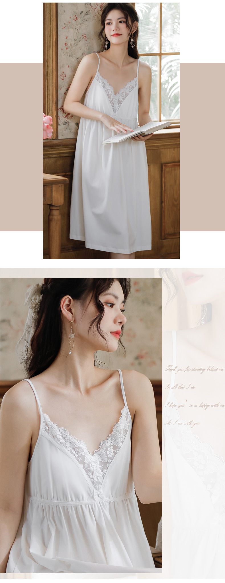PRDN121100105 吊帶睡裙女夏棉宮廷風性感舒適蕾絲公主睡衣胸墊繡花可外穿家居服