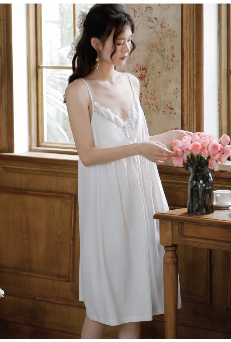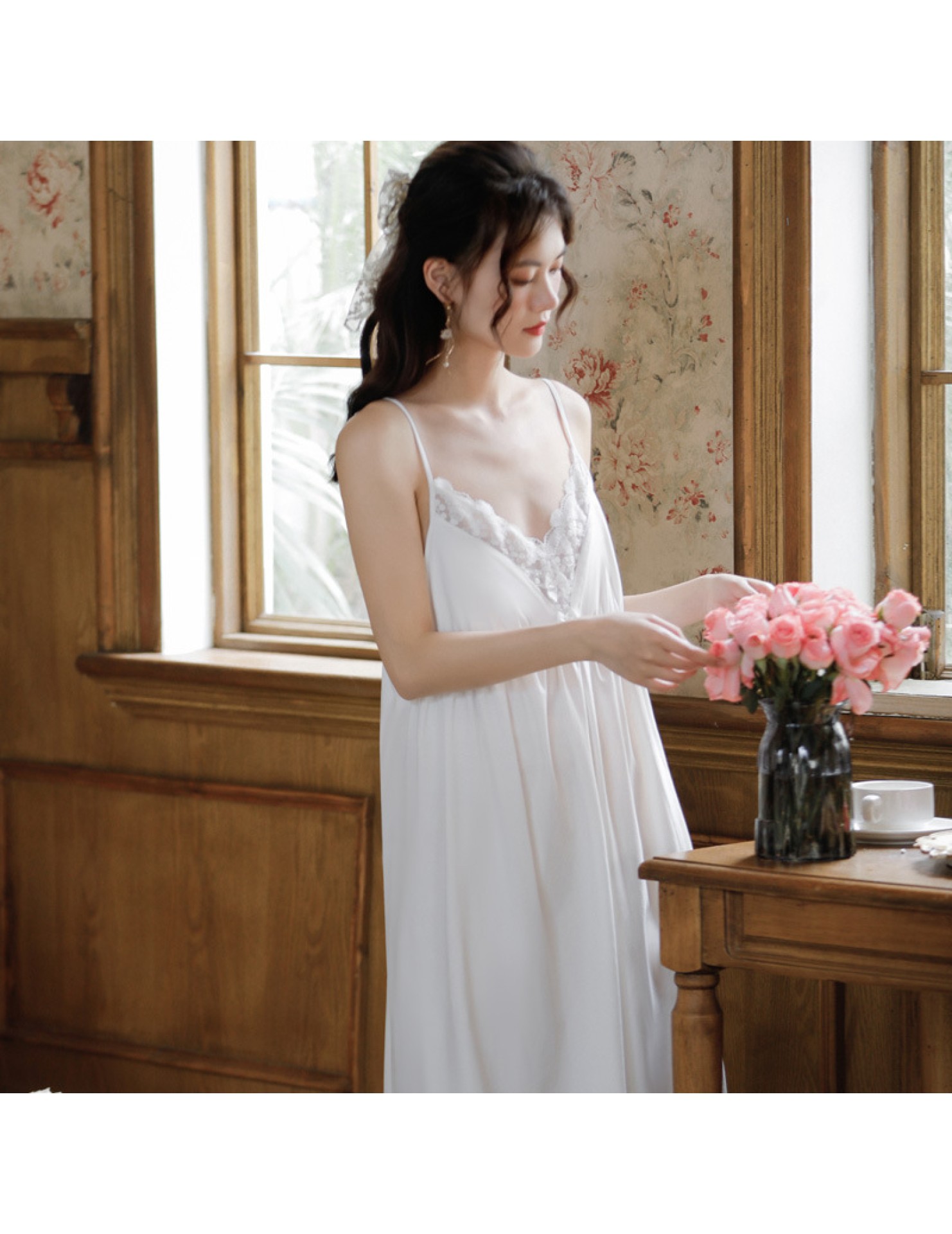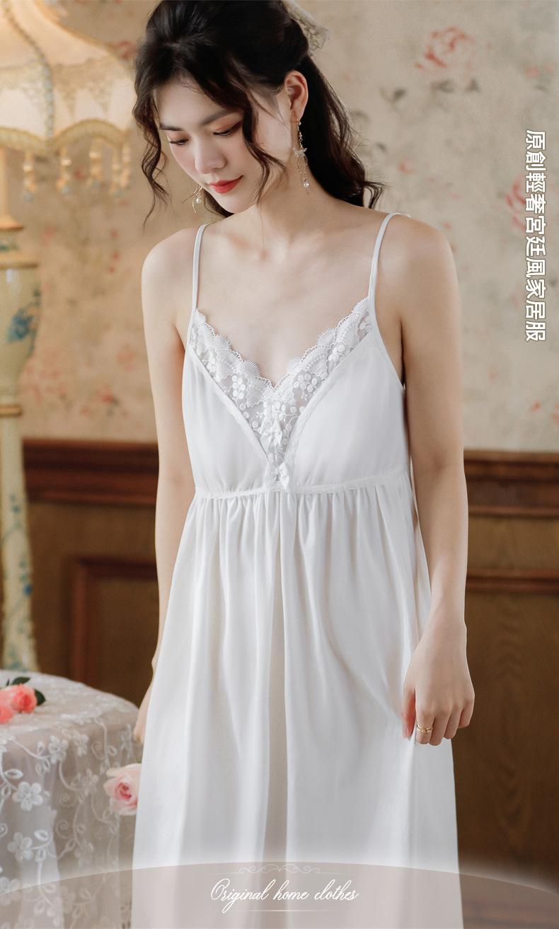 PRDN121100105 吊帶睡裙女夏棉宮廷風性感舒適蕾絲公主睡衣胸墊繡花可外穿家居服