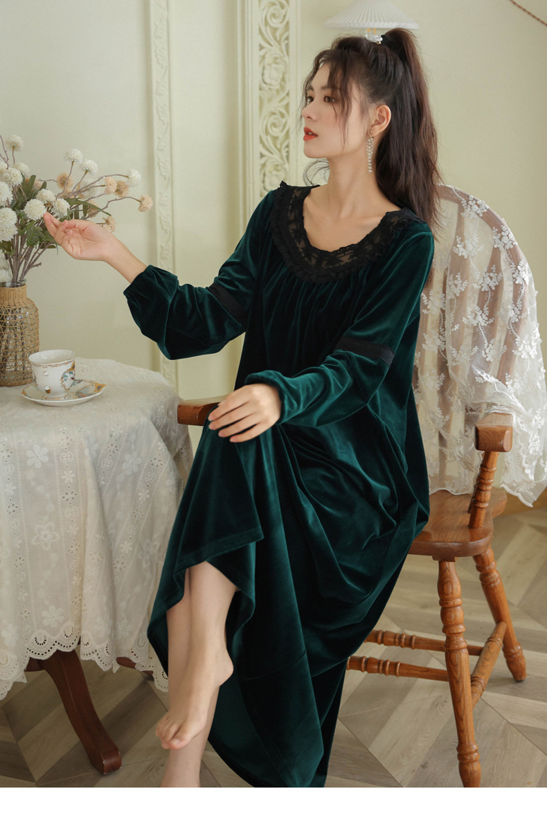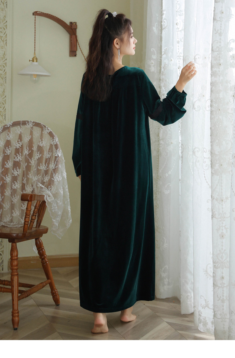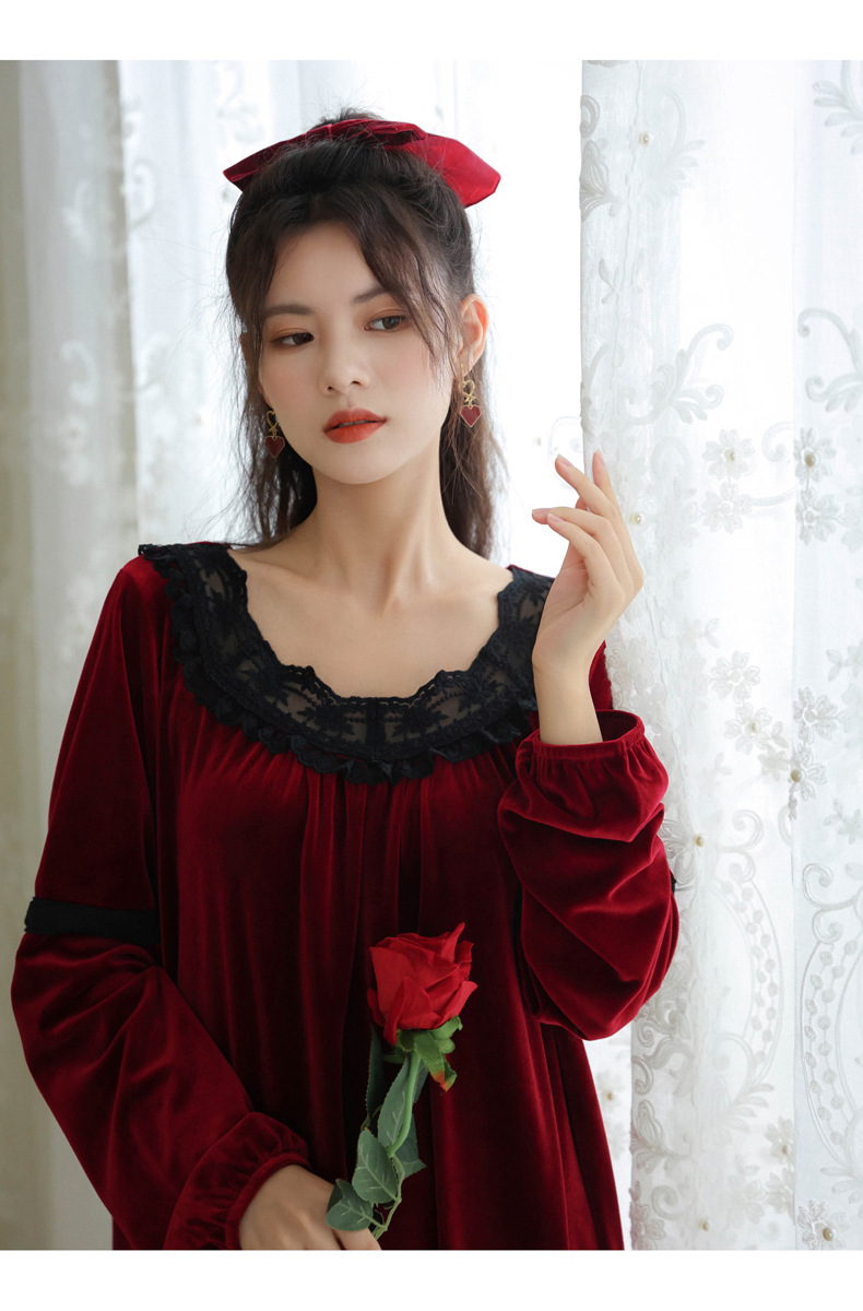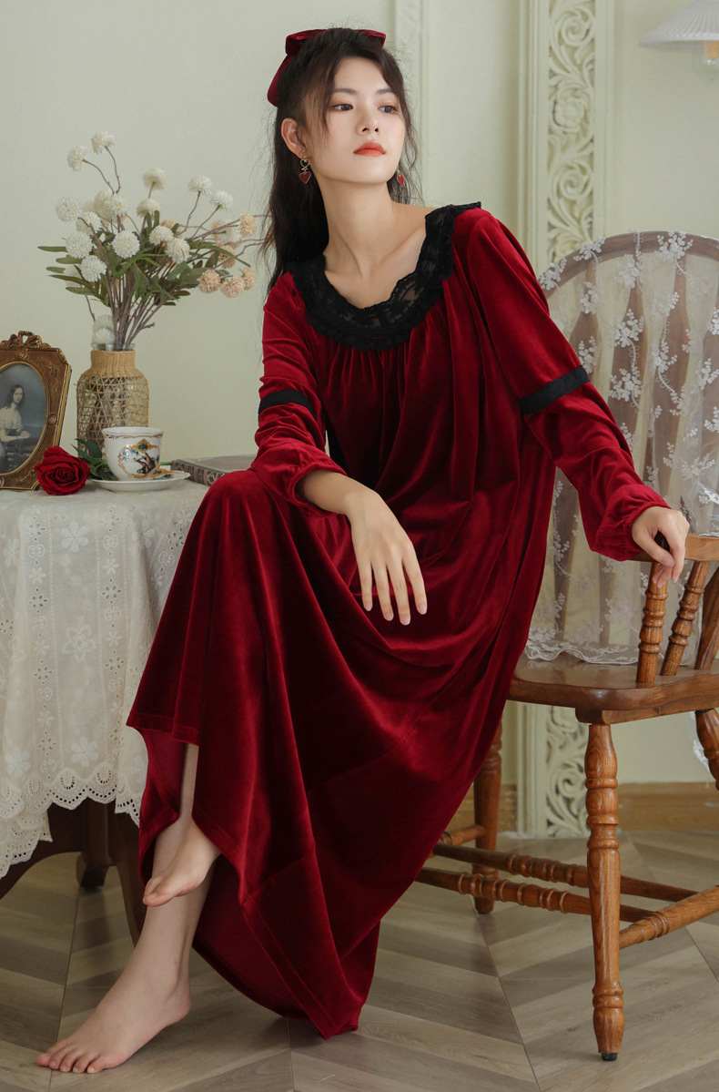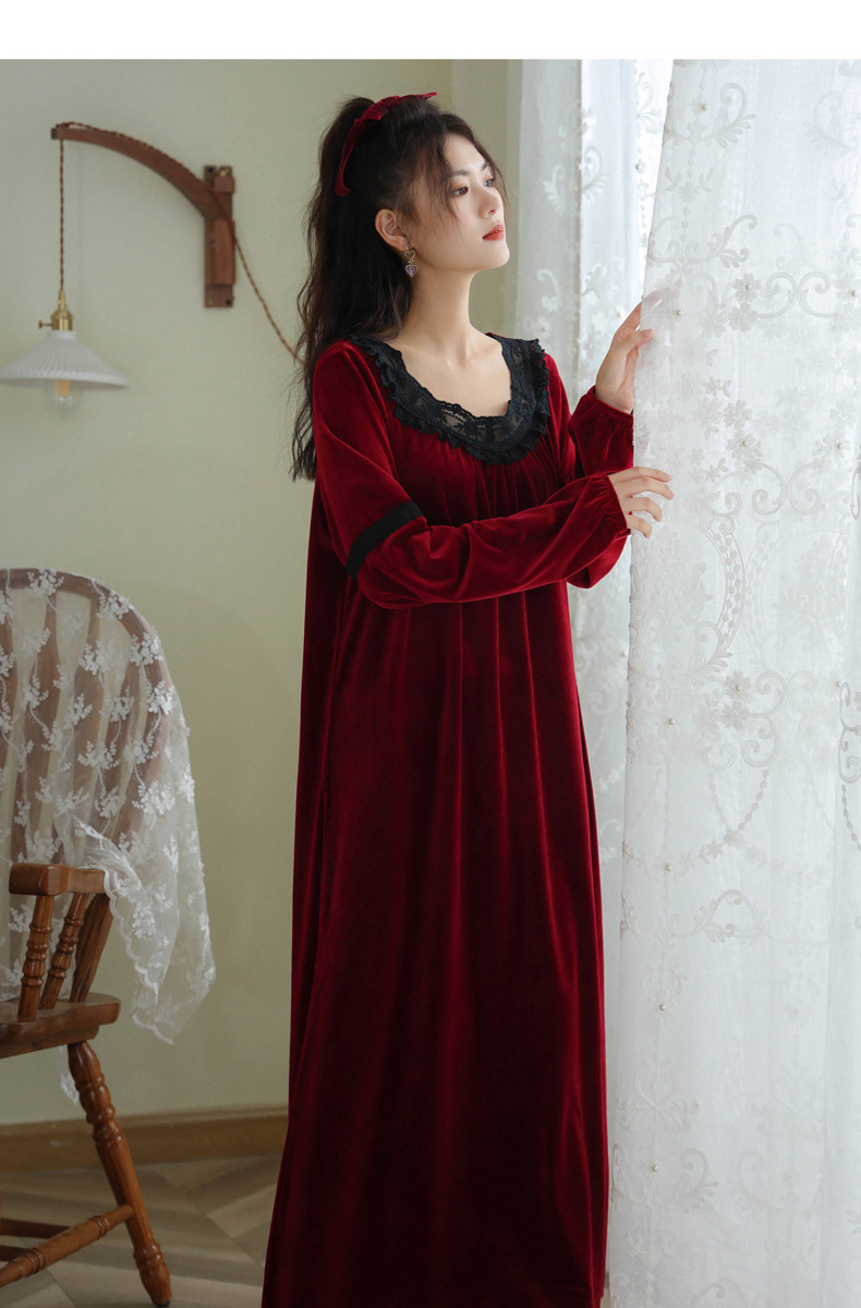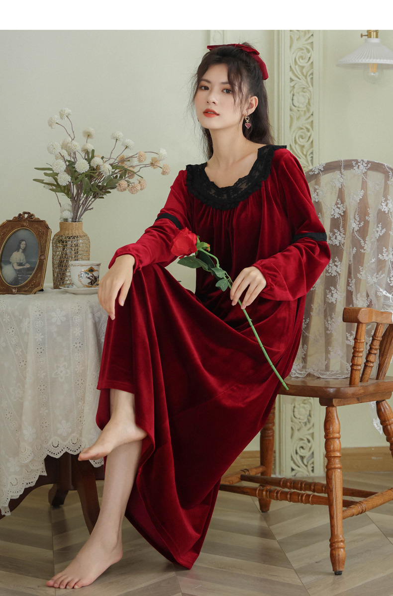 TCLN122100011 長袖加絨睡裙女冬宮廷風長裙保暖紅色絨睡衣外穿寬松大碼家居服春