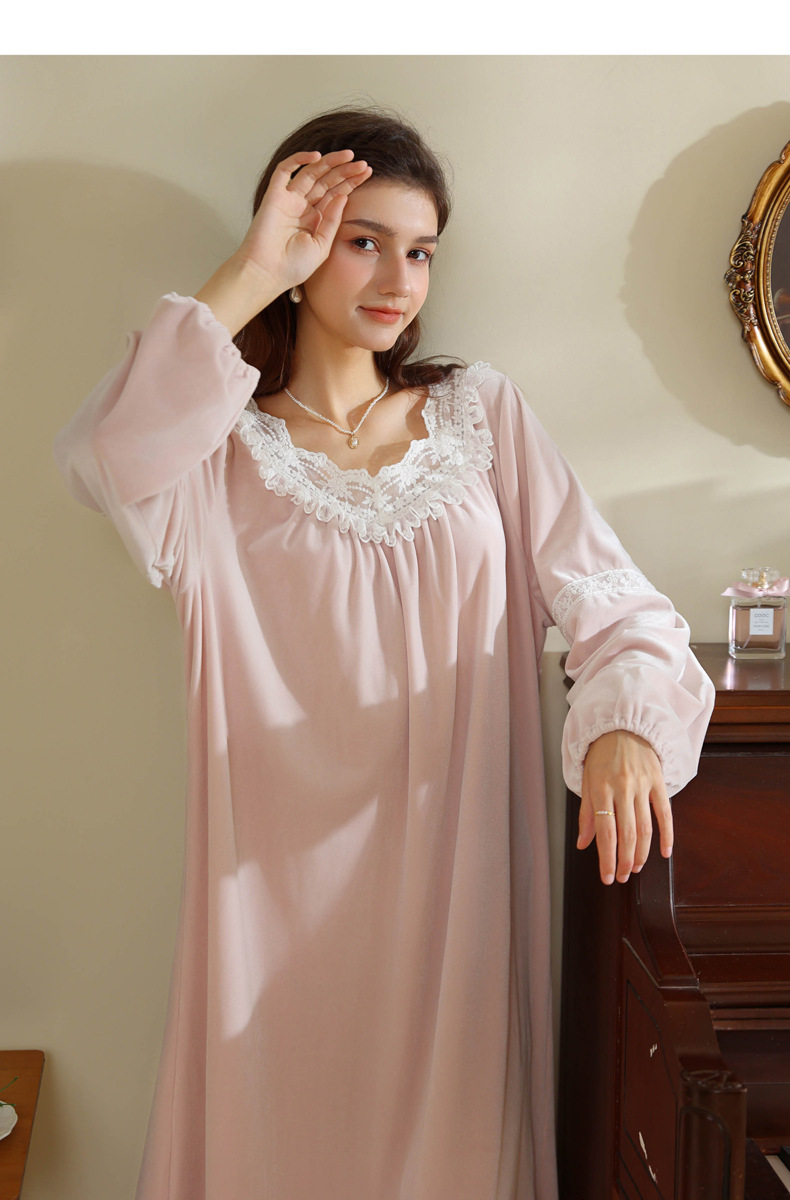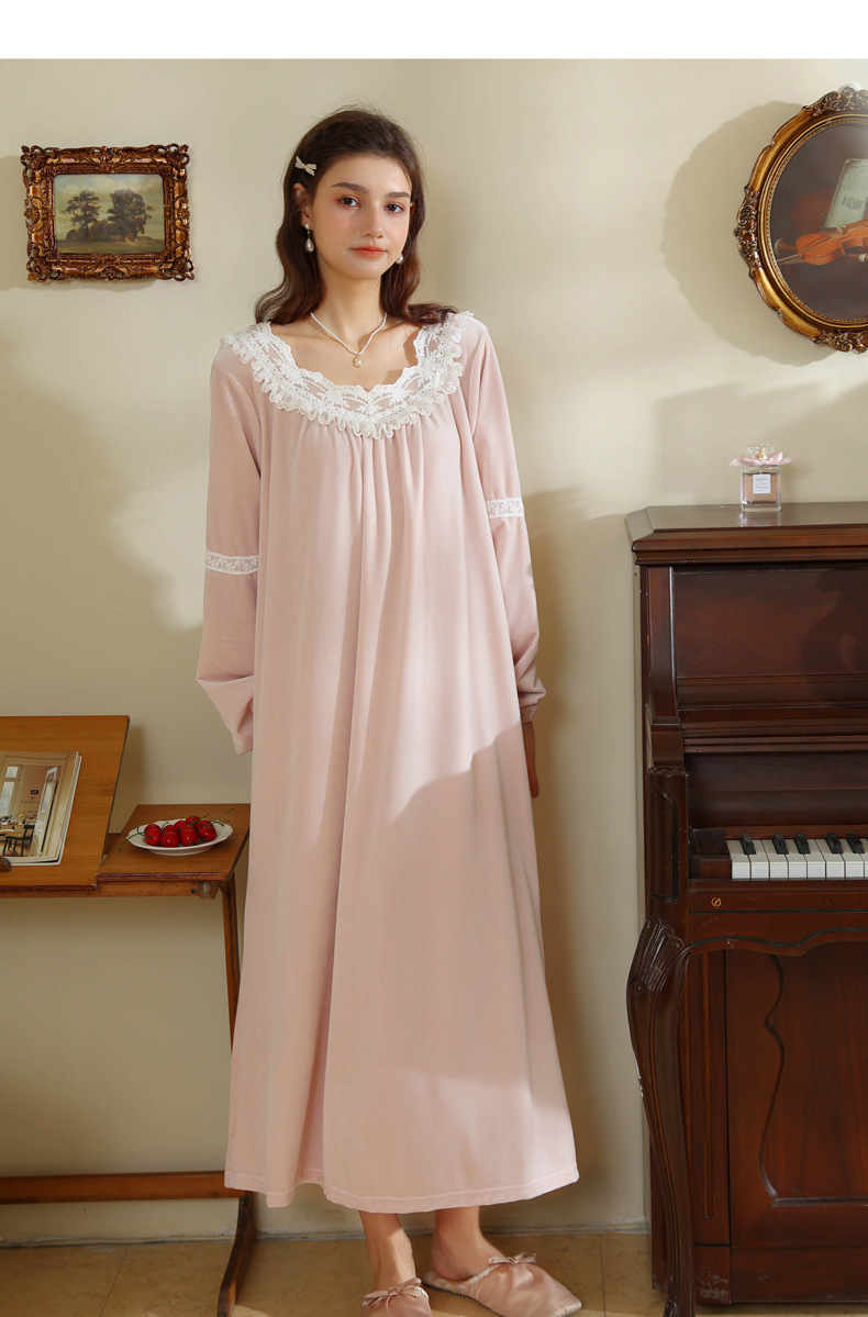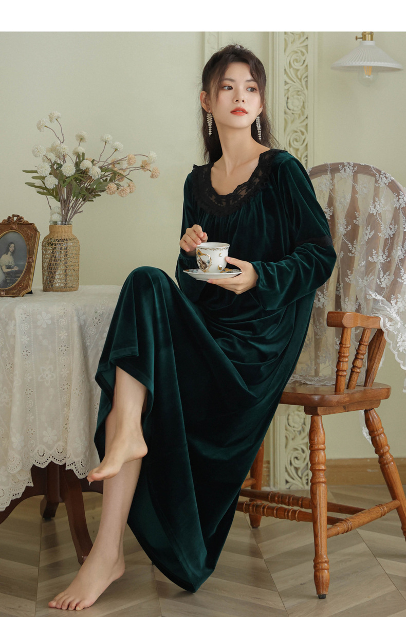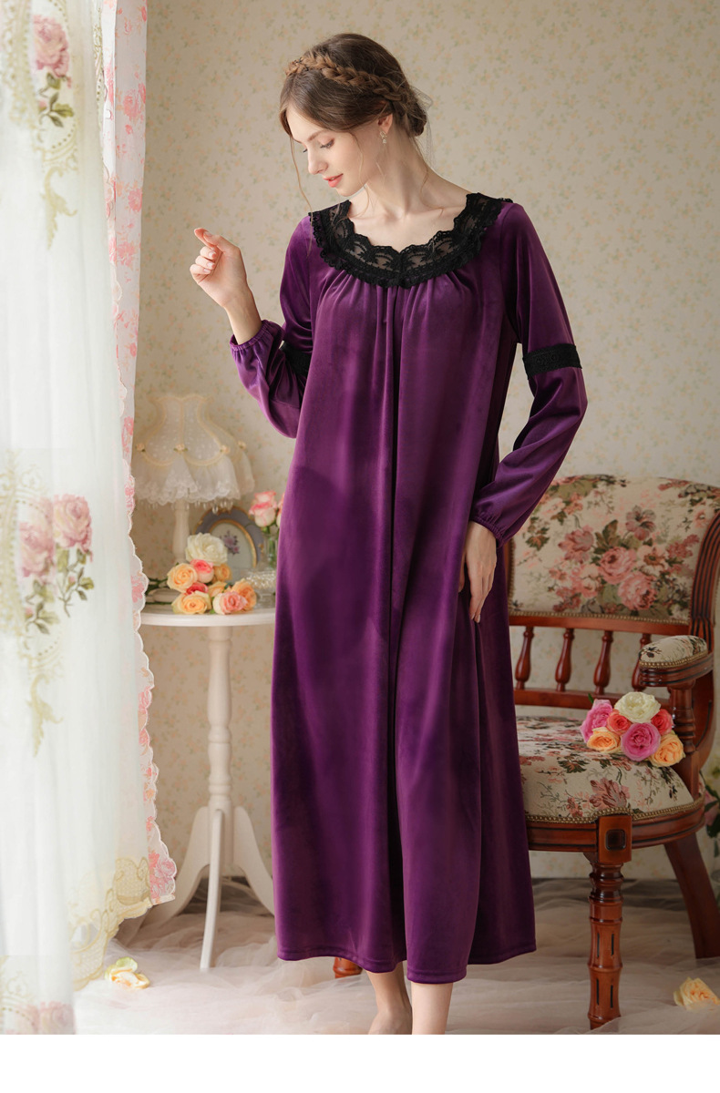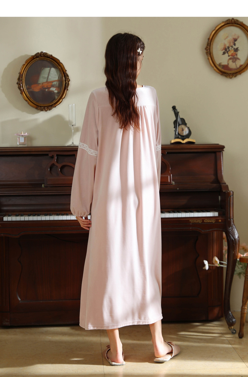 TCLN122100011 長袖加絨睡裙女冬宮廷風長裙保暖紅色絨睡衣外穿寬松大碼家居服春