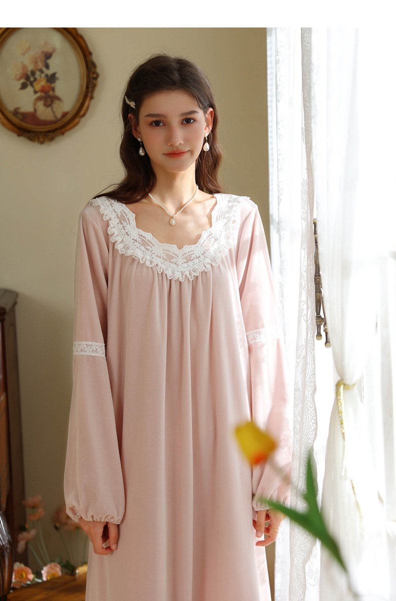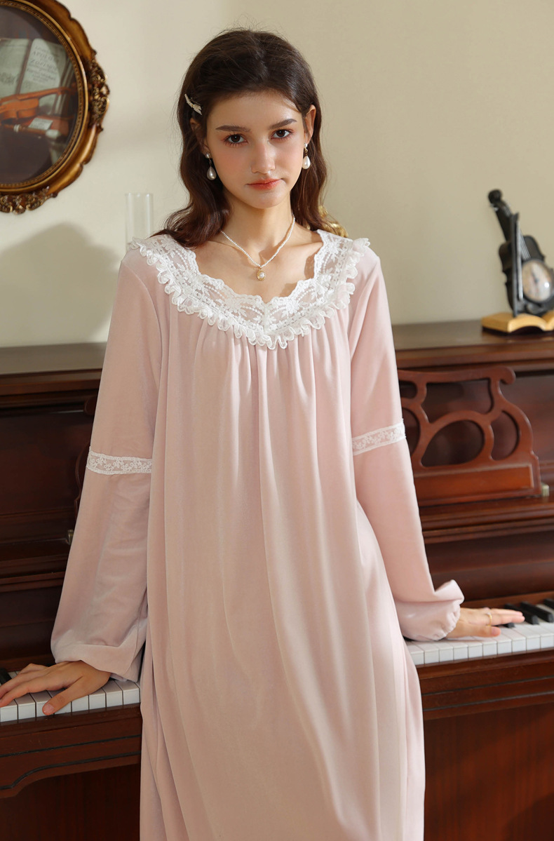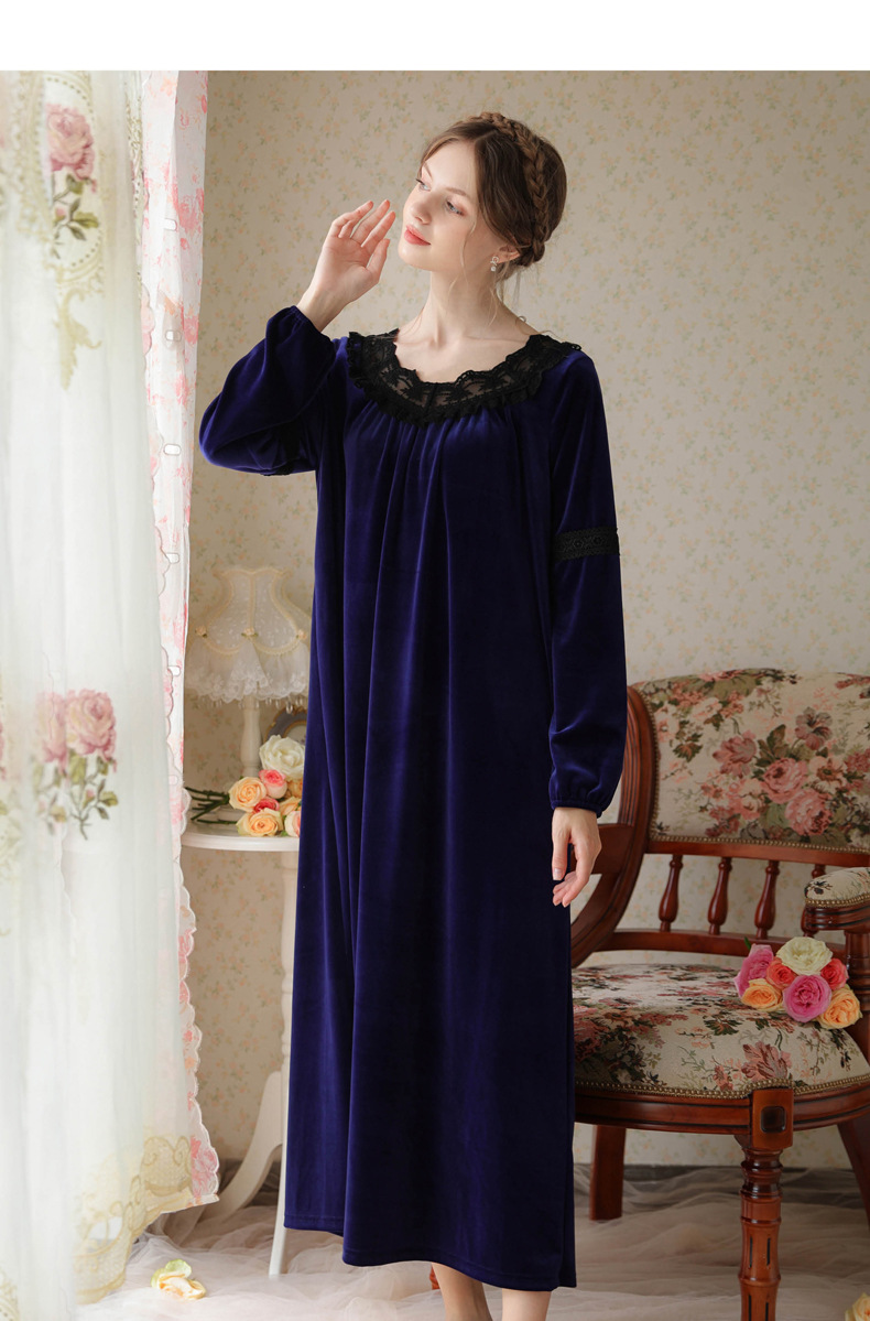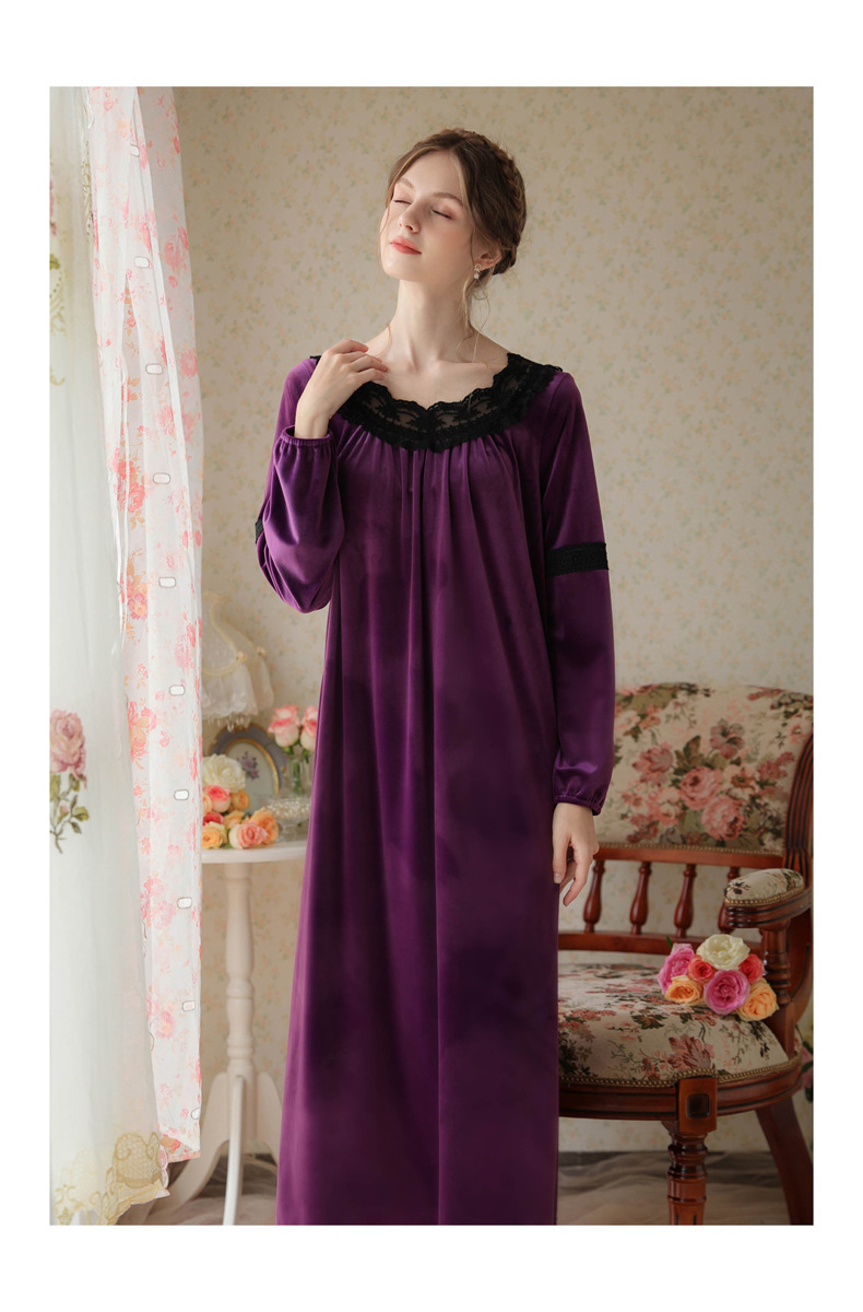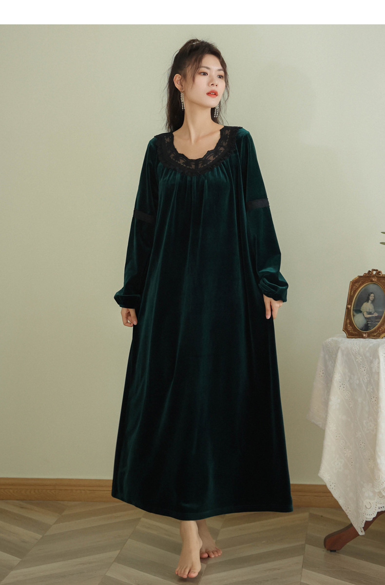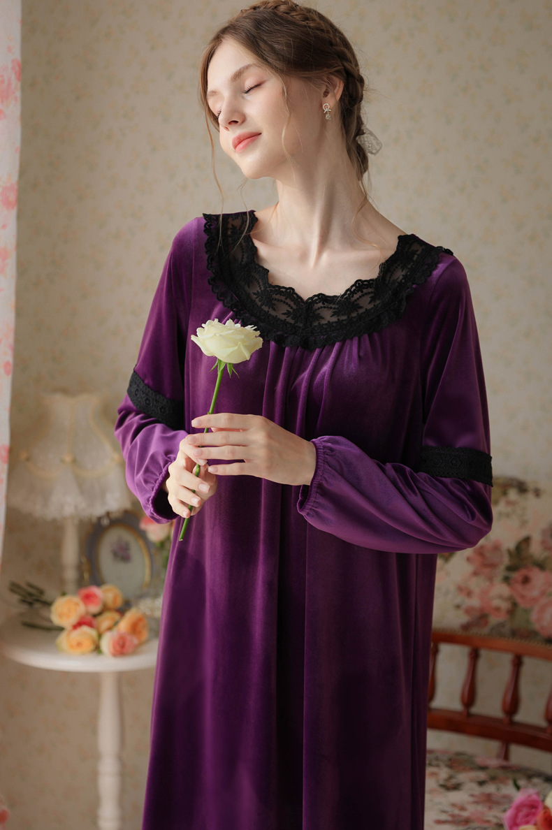 TCLN122100011 長袖加絨睡裙女冬宮廷風長裙保暖紅色絨睡衣外穿寬松大碼家居服春