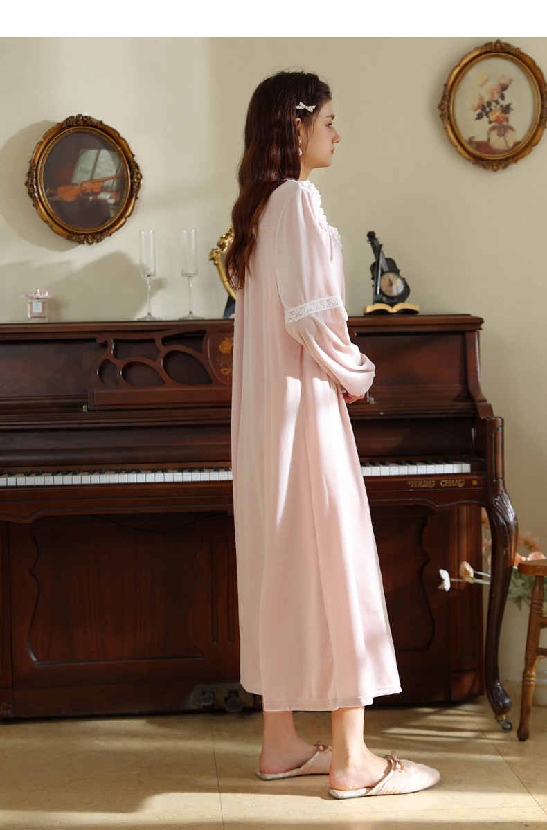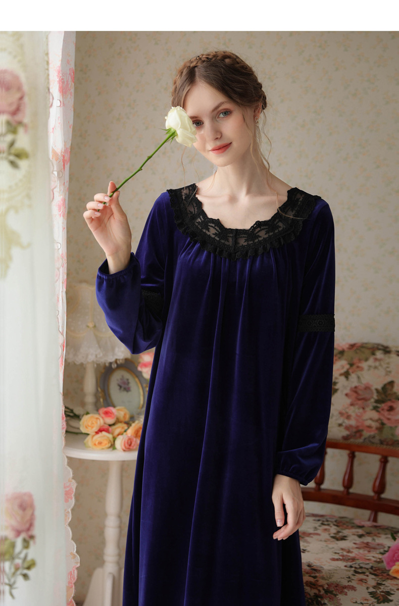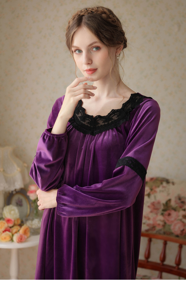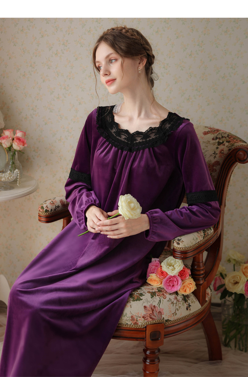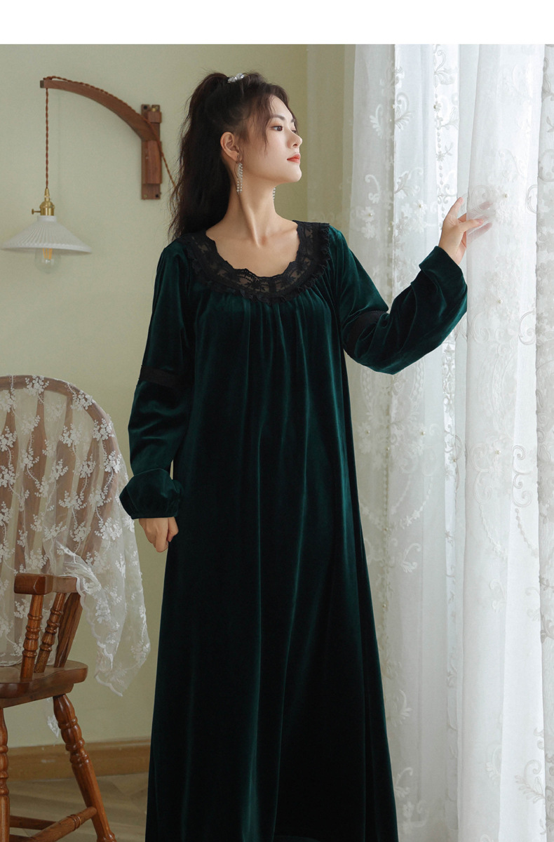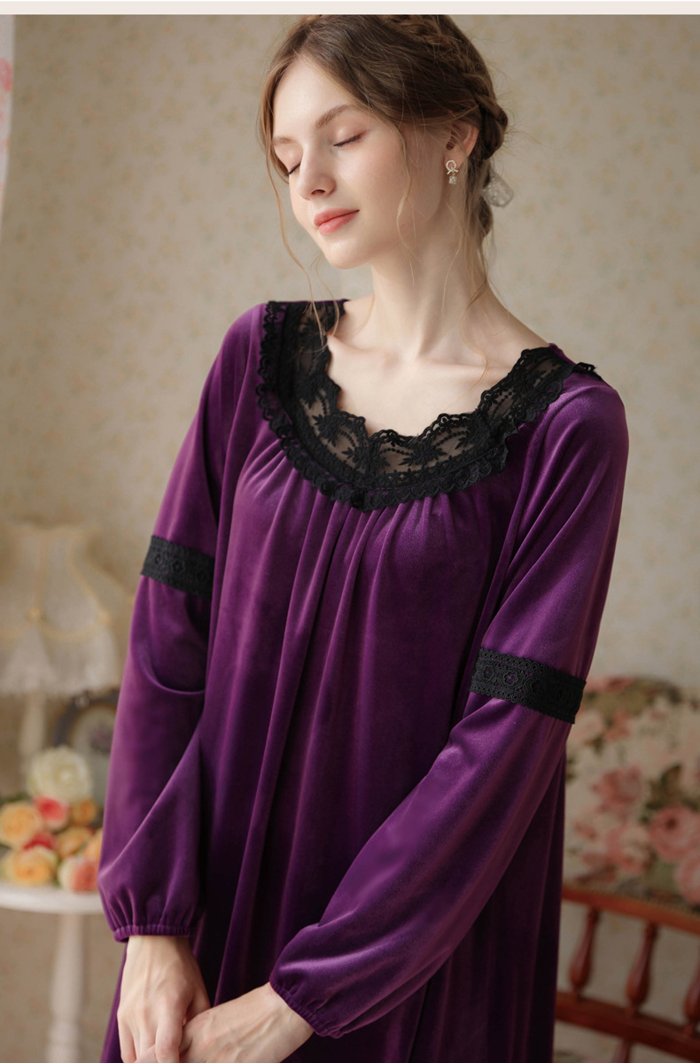 TCLN122100011 長袖加絨睡裙女冬宮廷風長裙保暖紅色絨睡衣外穿寬松大碼家居服春