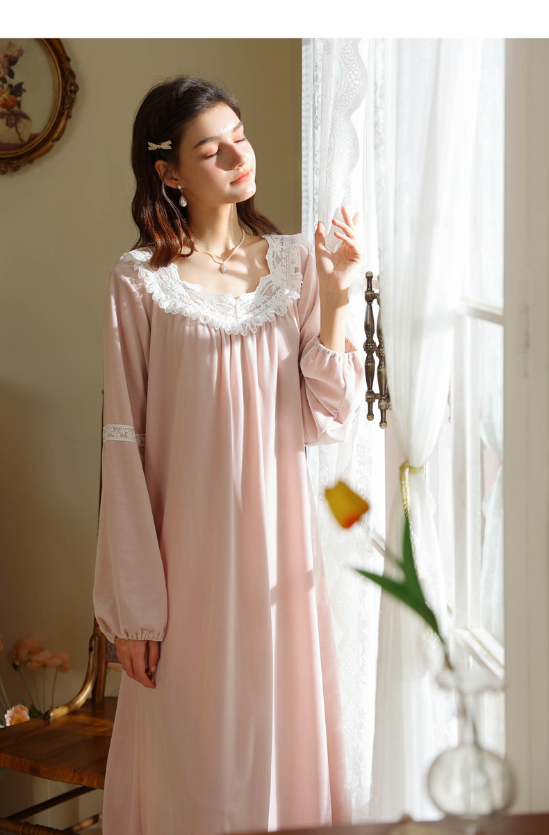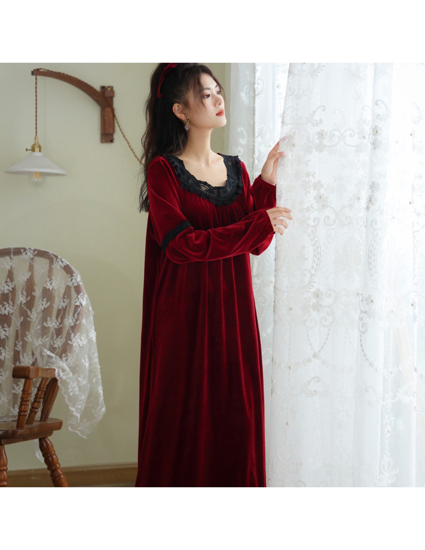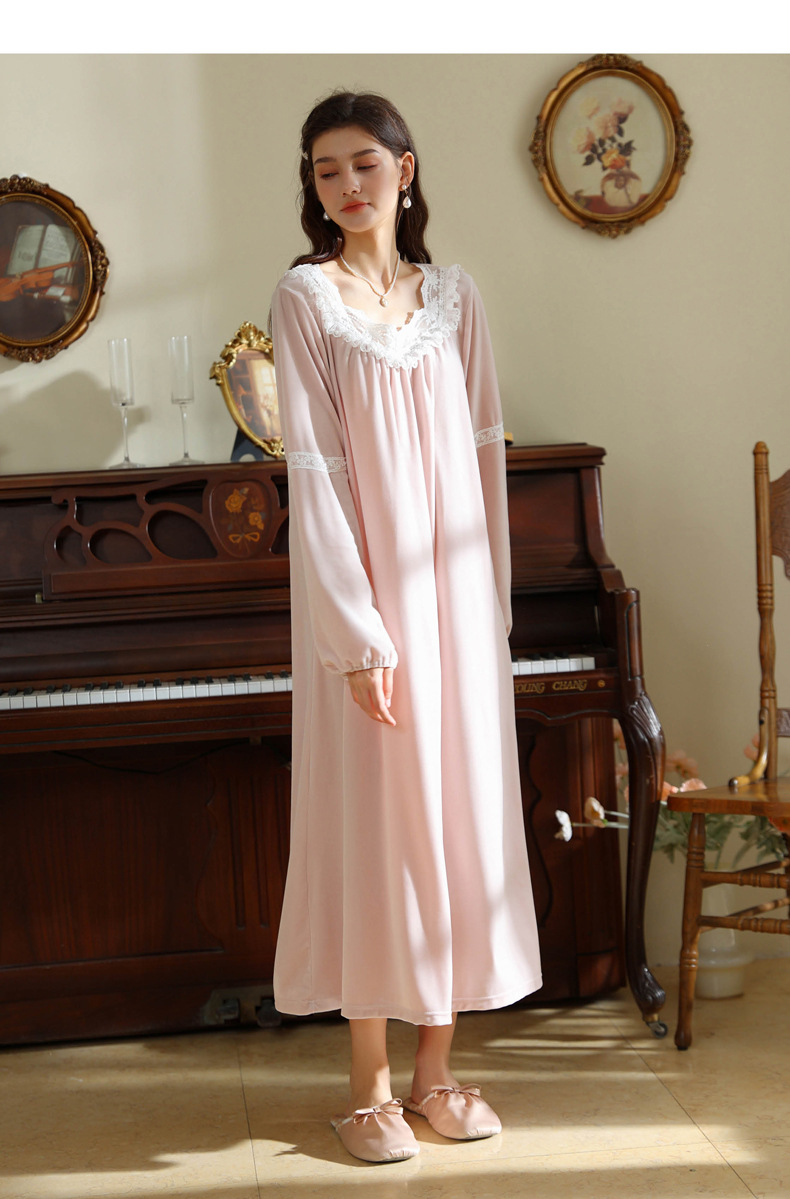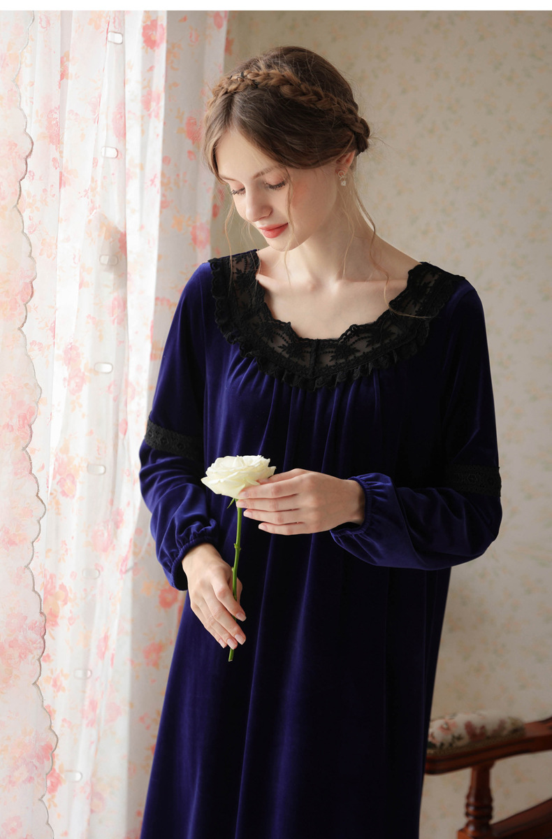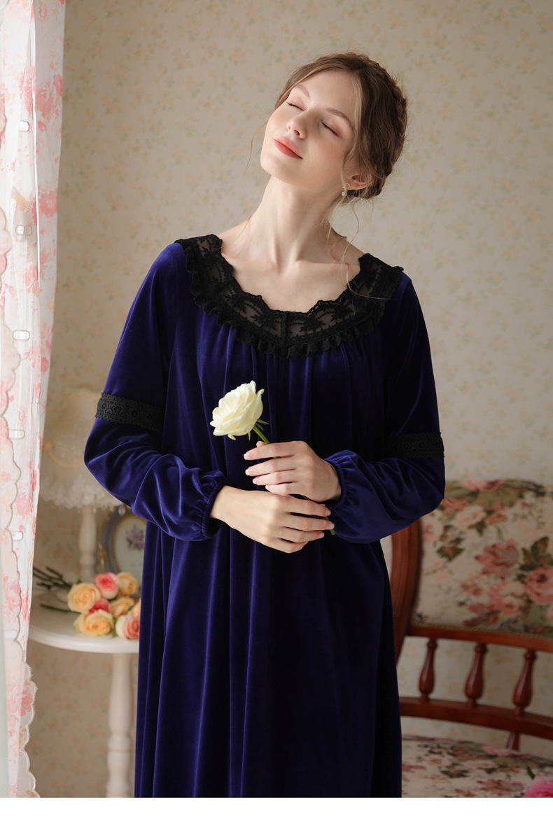TCLN122100011 長袖加絨睡裙女冬宮廷風長裙保暖紅色絨睡衣外穿寬松大碼家居服春