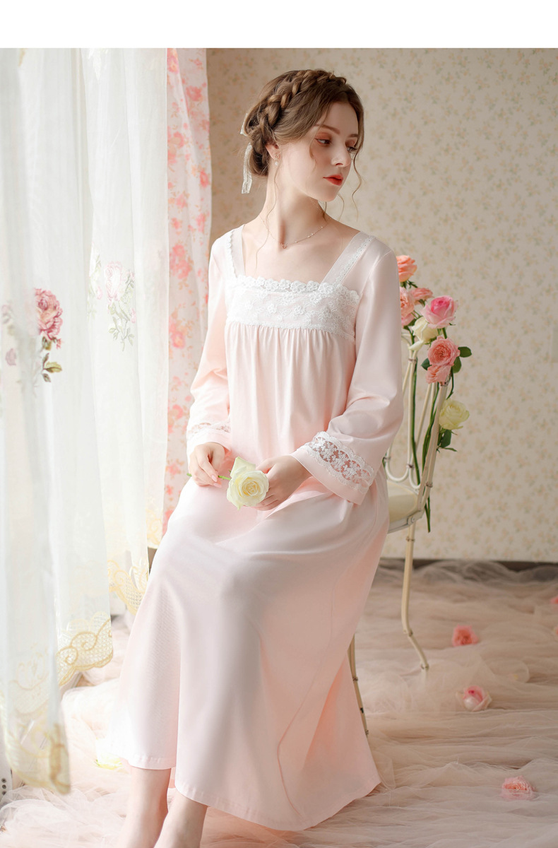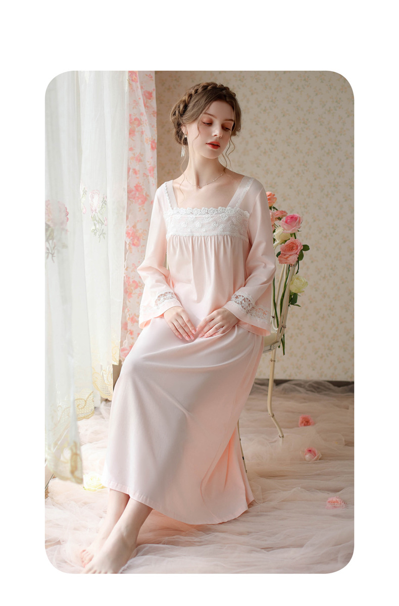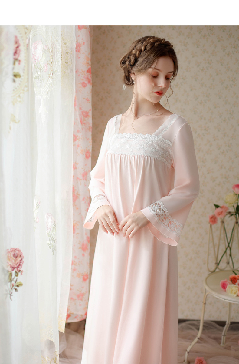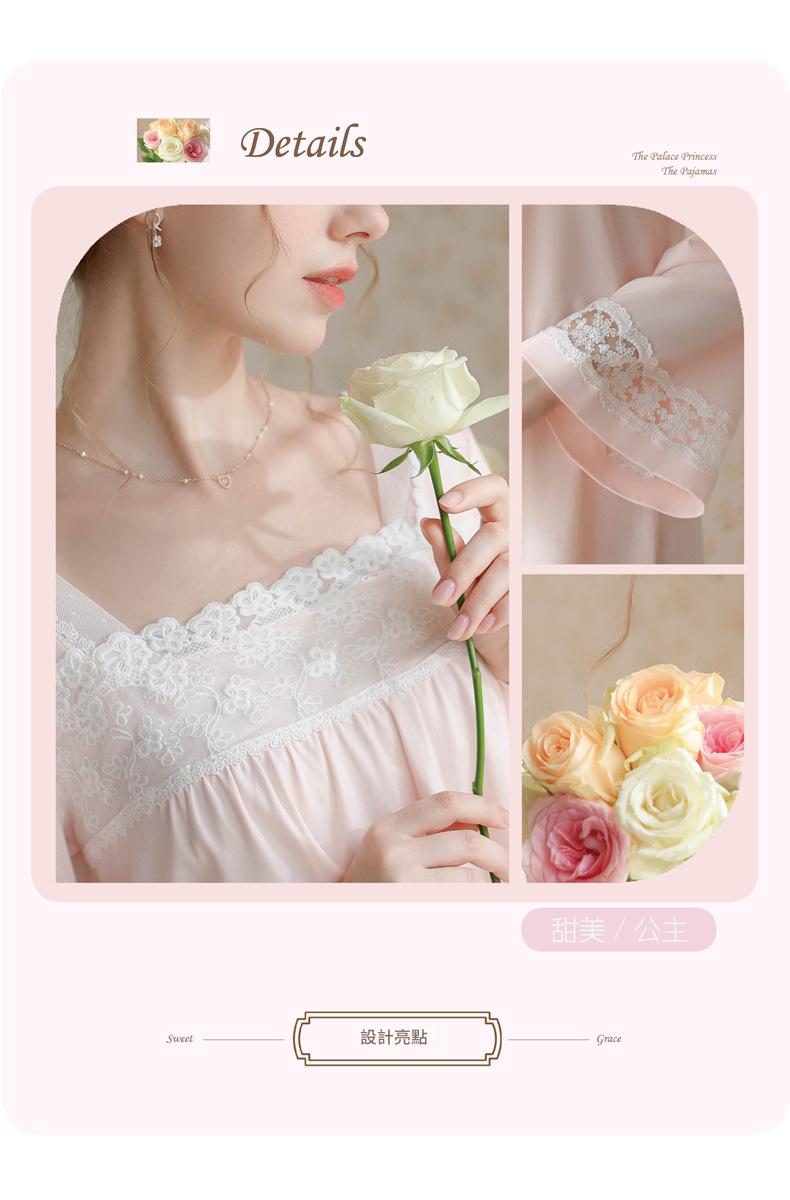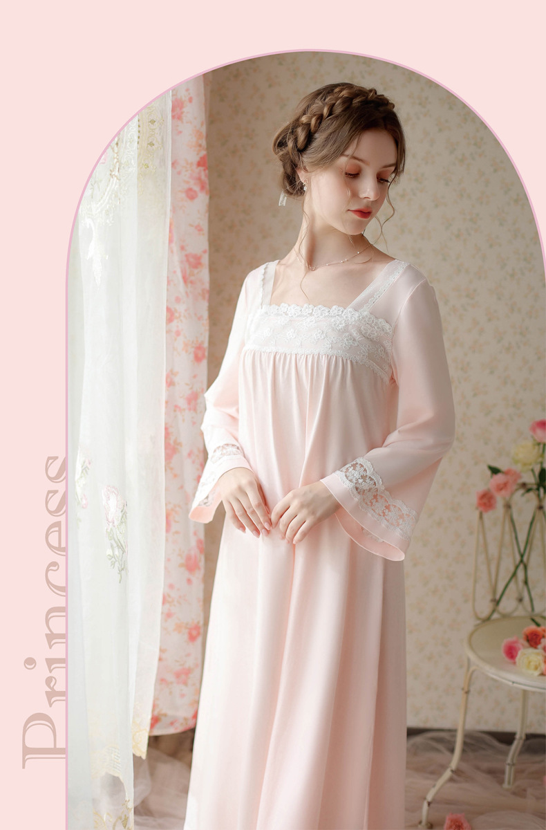 TCLN122100017 漢服睡衣女春秋薄款長袖蕾絲古風國甜美長裙方領少女寬松長款睡裙