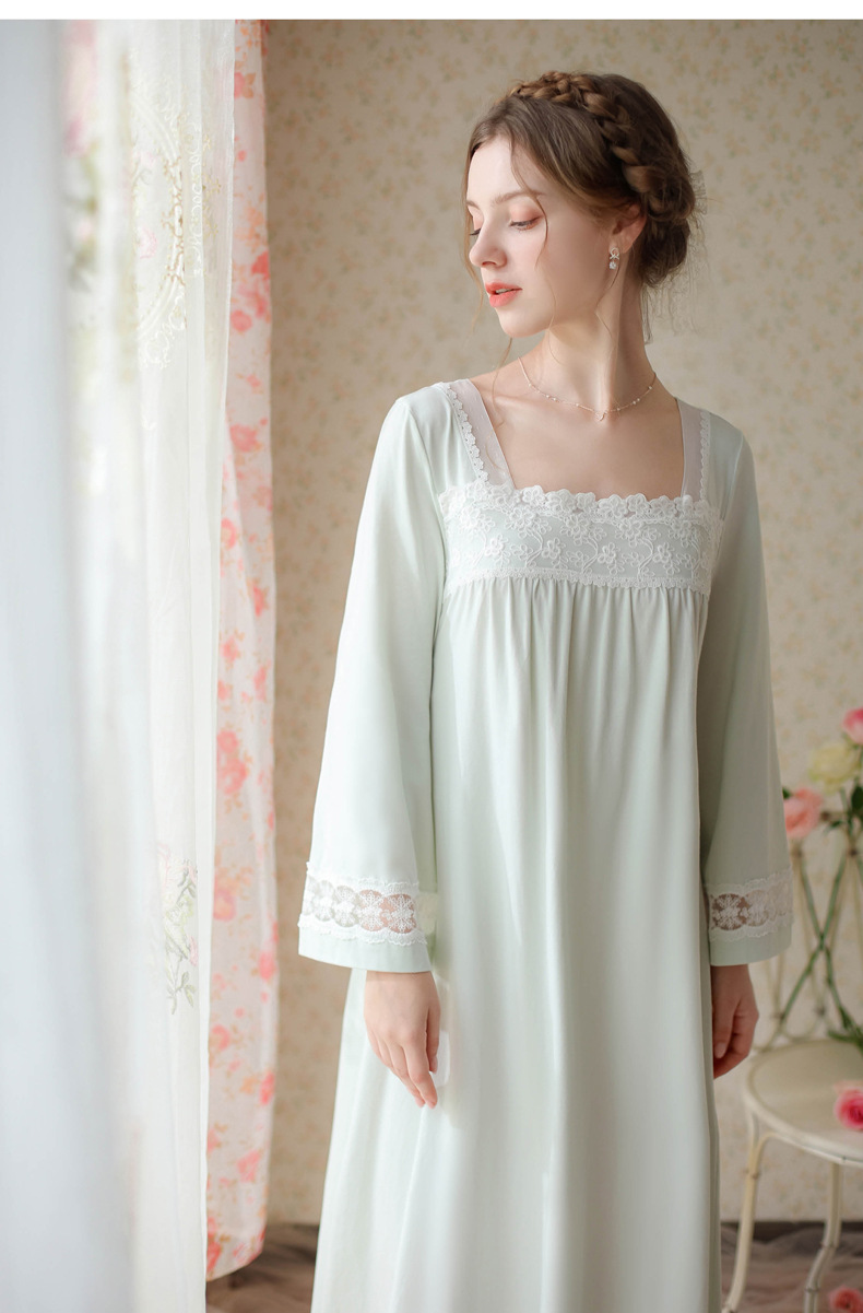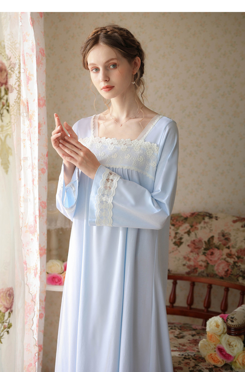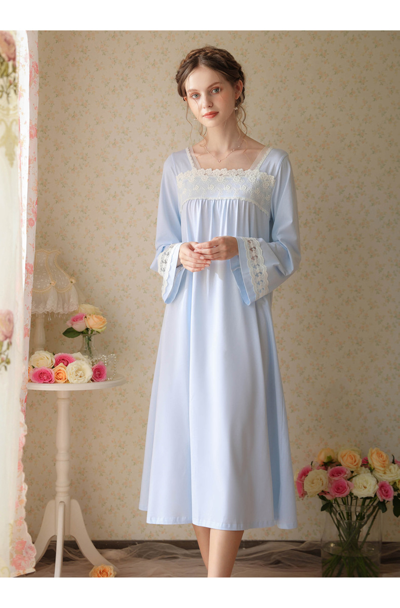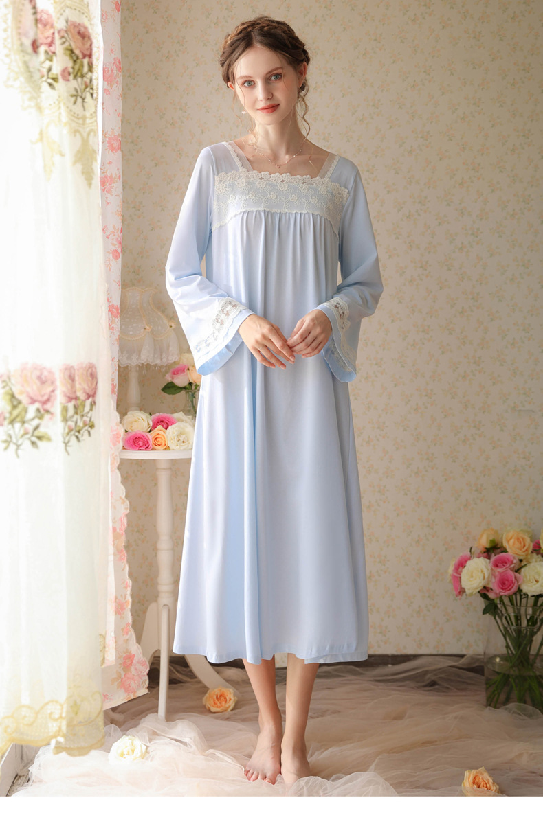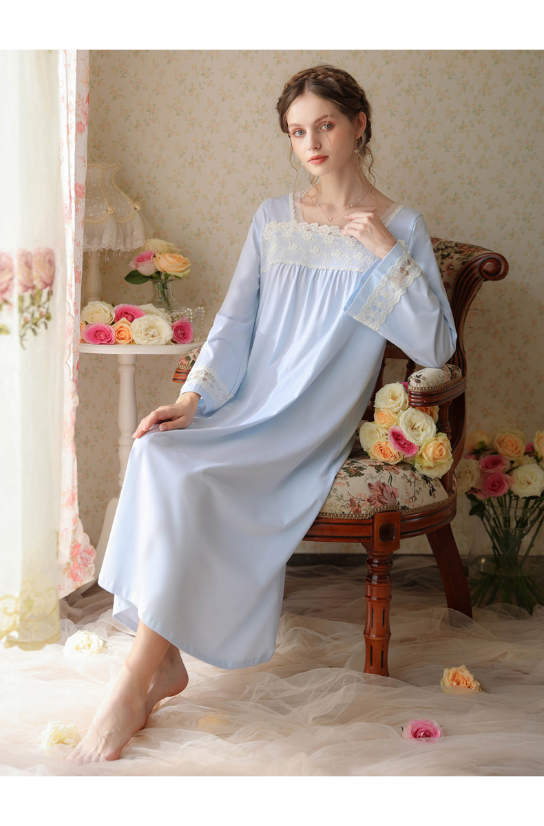 TCLN122100017 漢服睡衣女春秋薄款長袖蕾絲古風國甜美長裙方領少女寬松長款睡裙