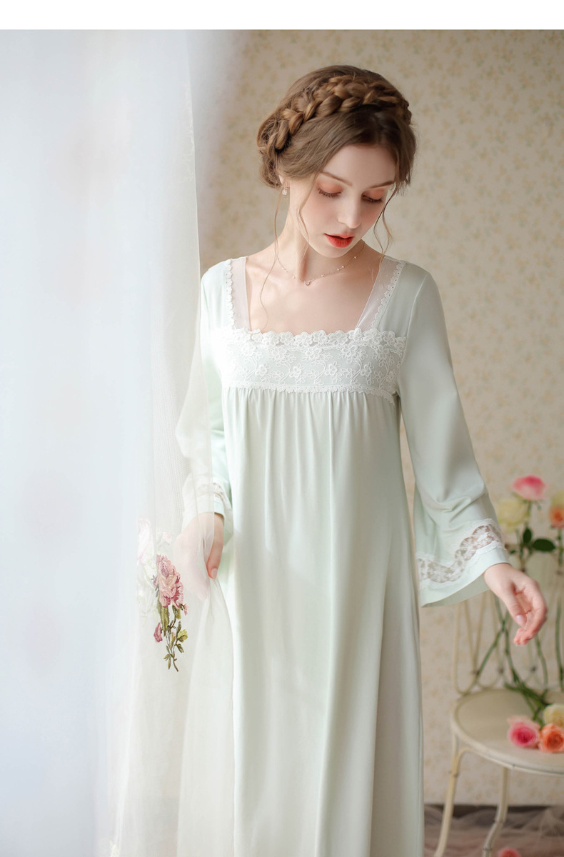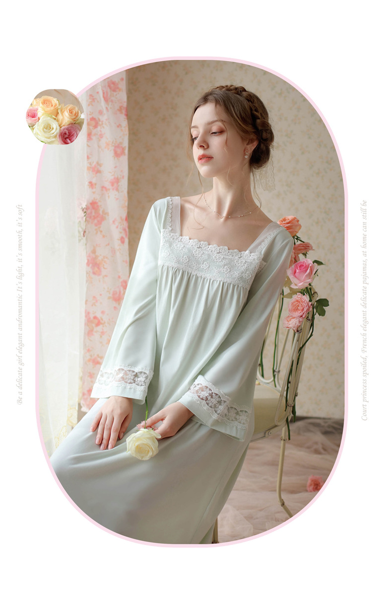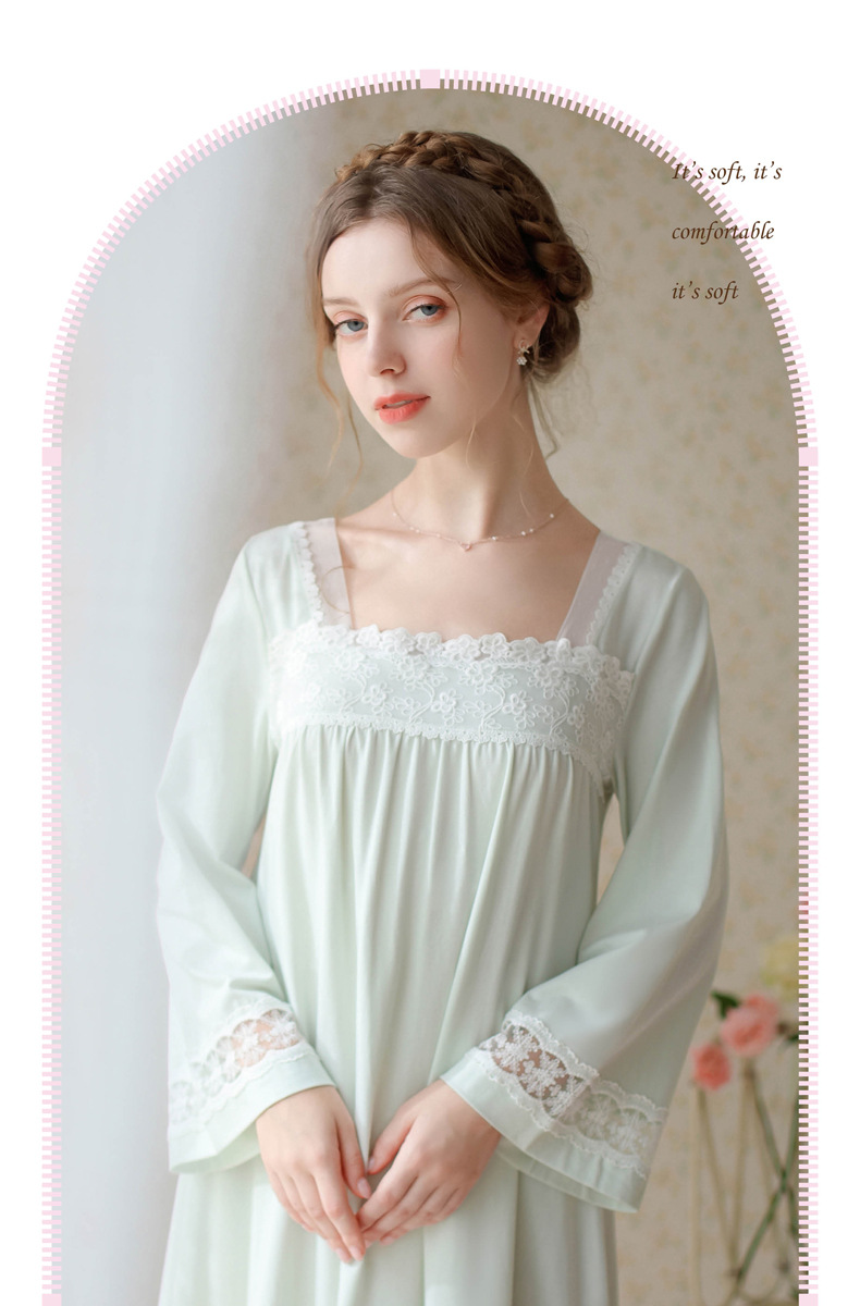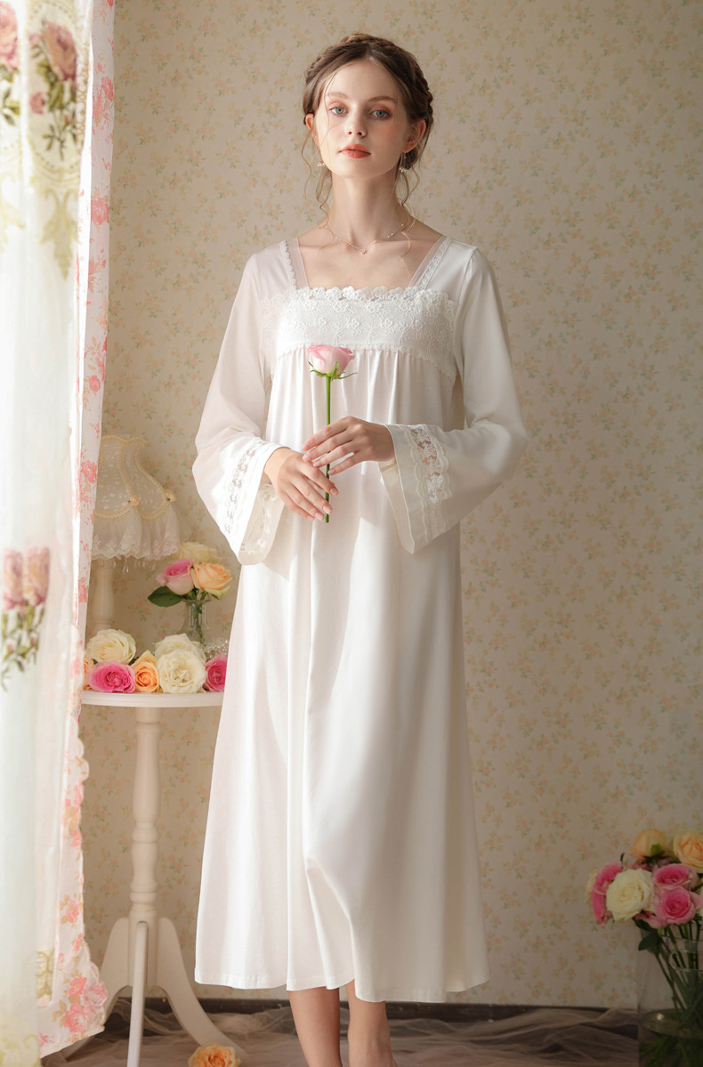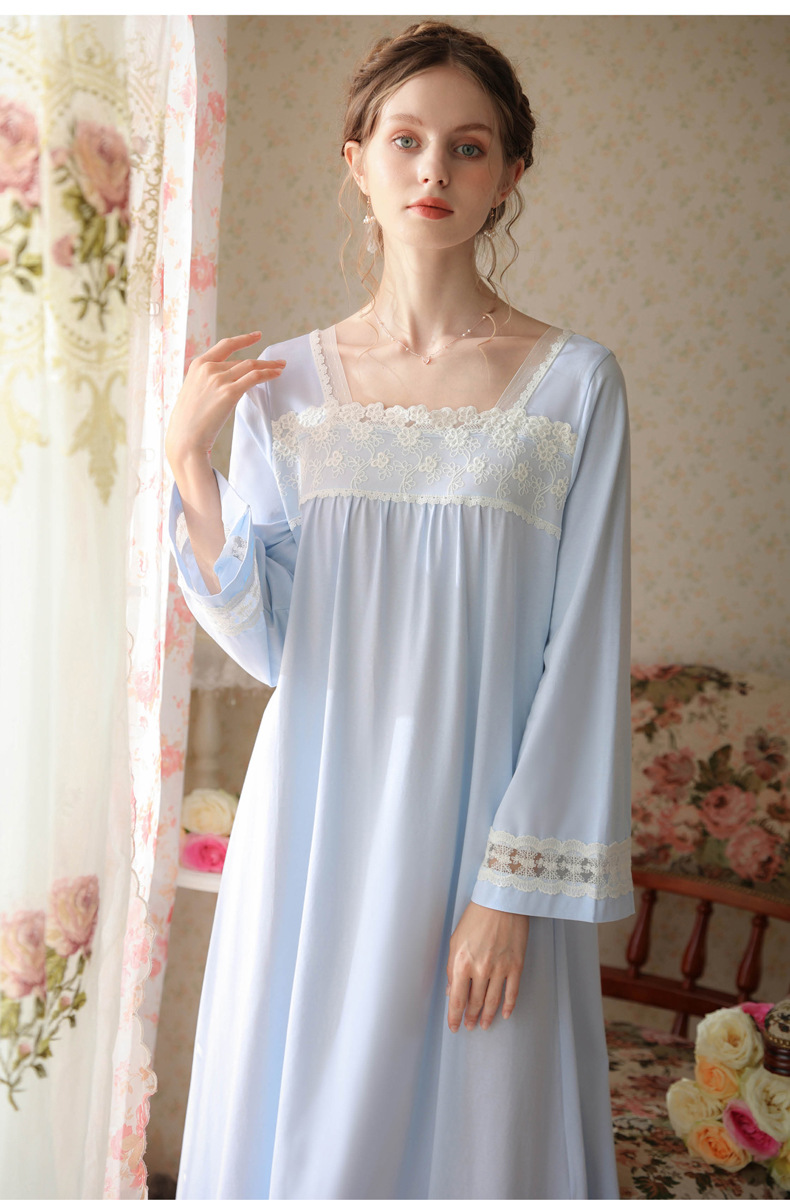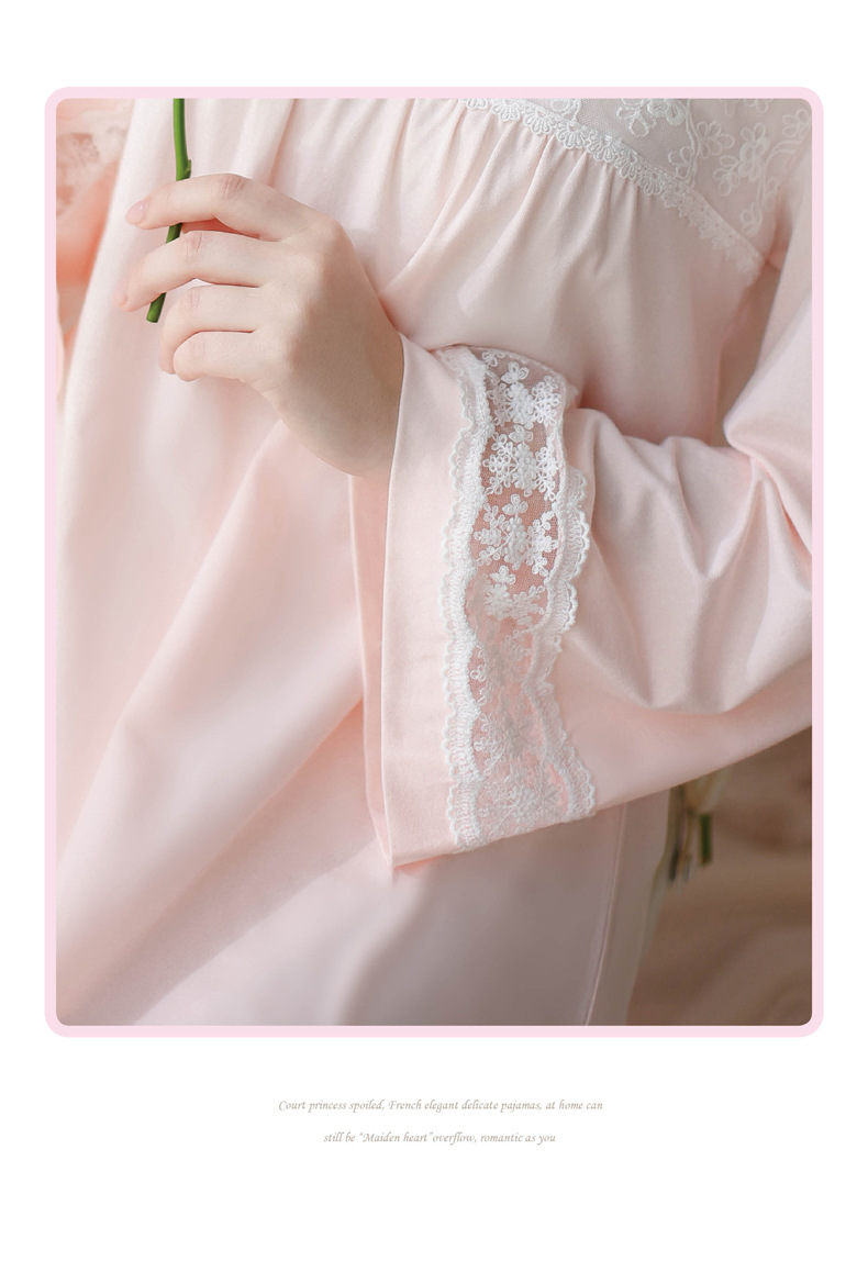 TCLN122100017 漢服睡衣女春秋薄款長袖蕾絲古風國甜美長裙方領少女寬松長款睡裙