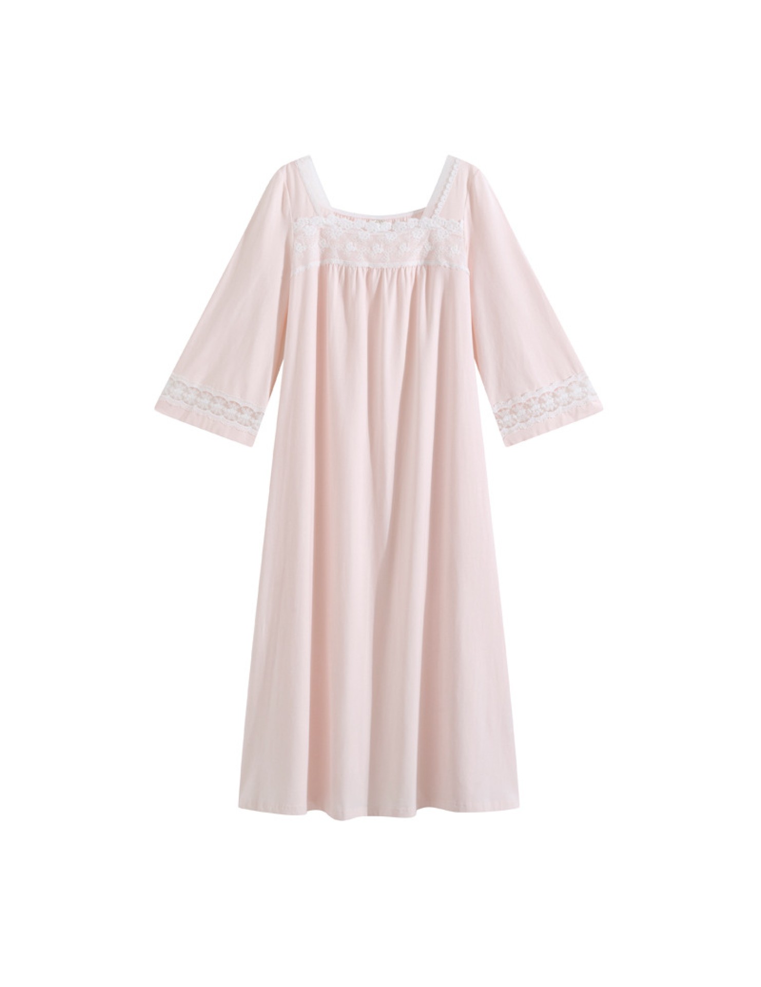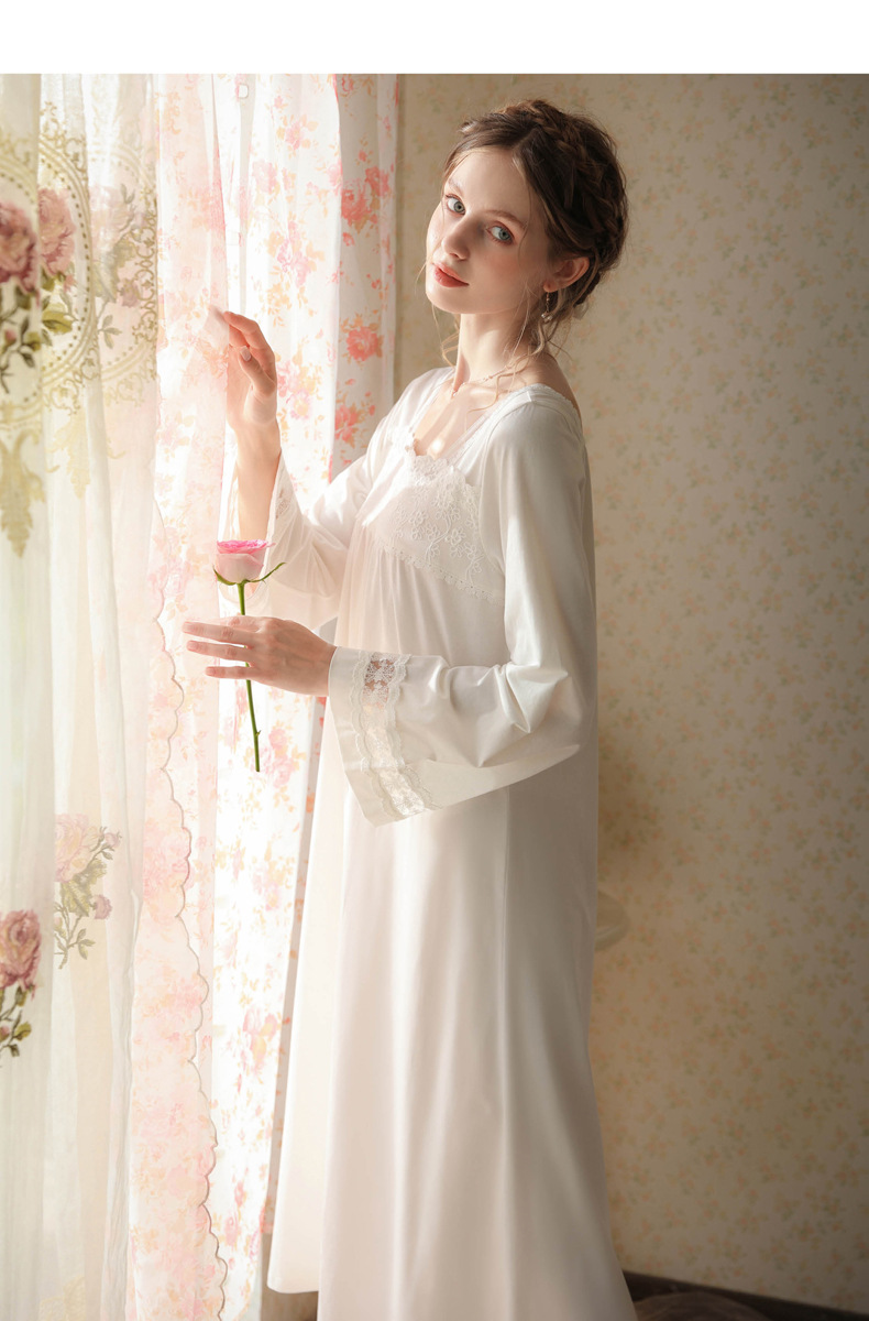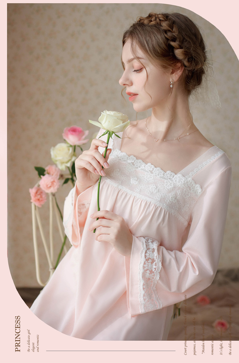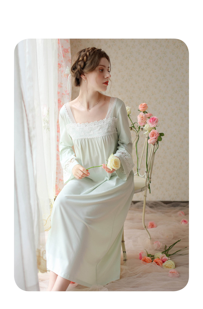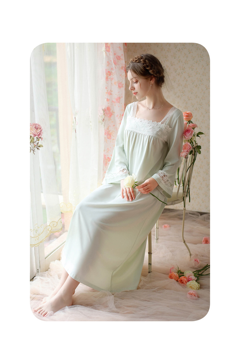 TCLN122100017 漢服睡衣女春秋薄款長袖蕾絲古風國甜美長裙方領少女寬松長款睡裙
