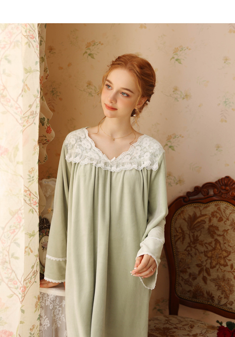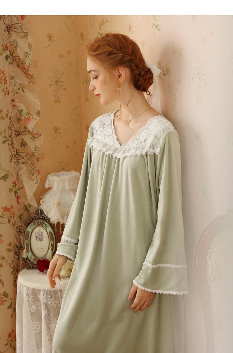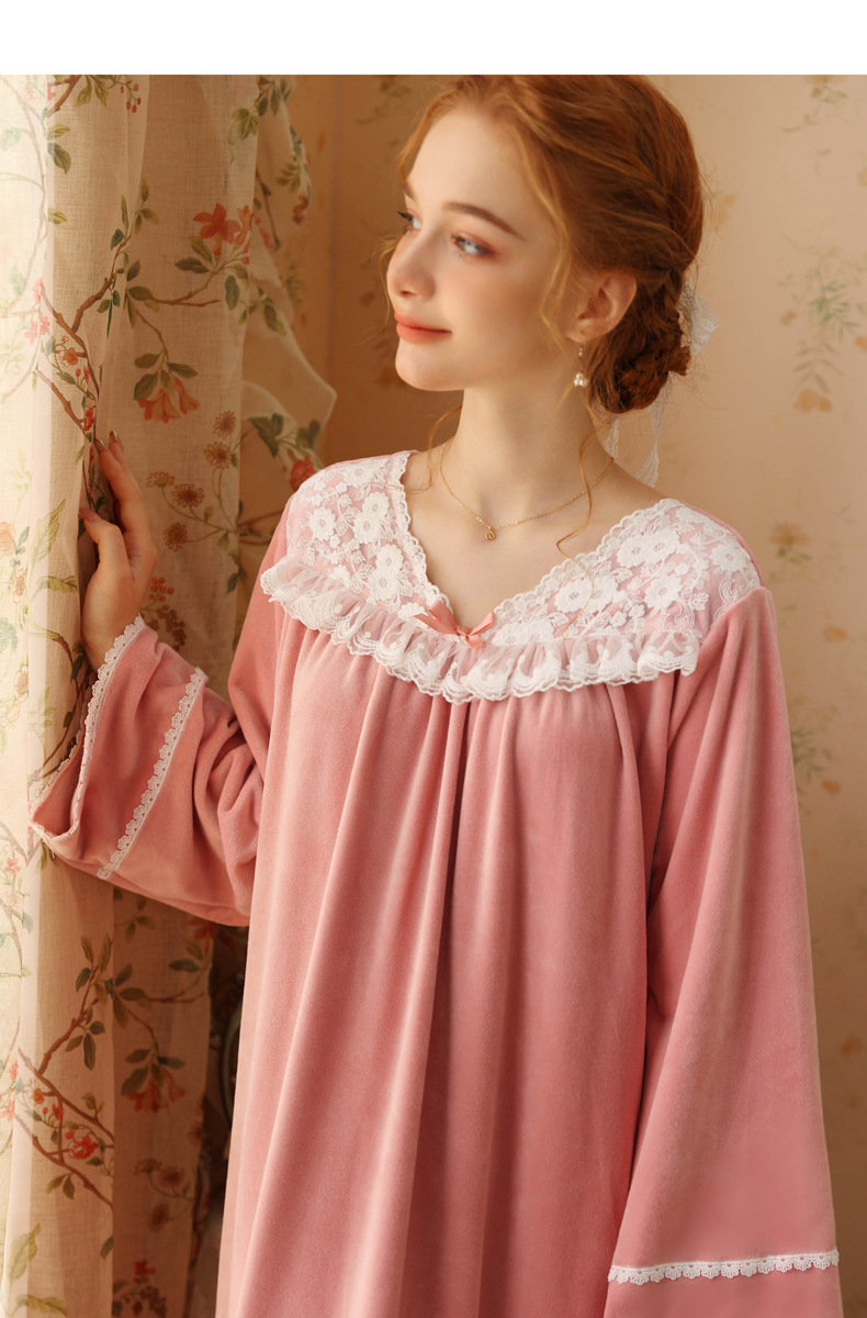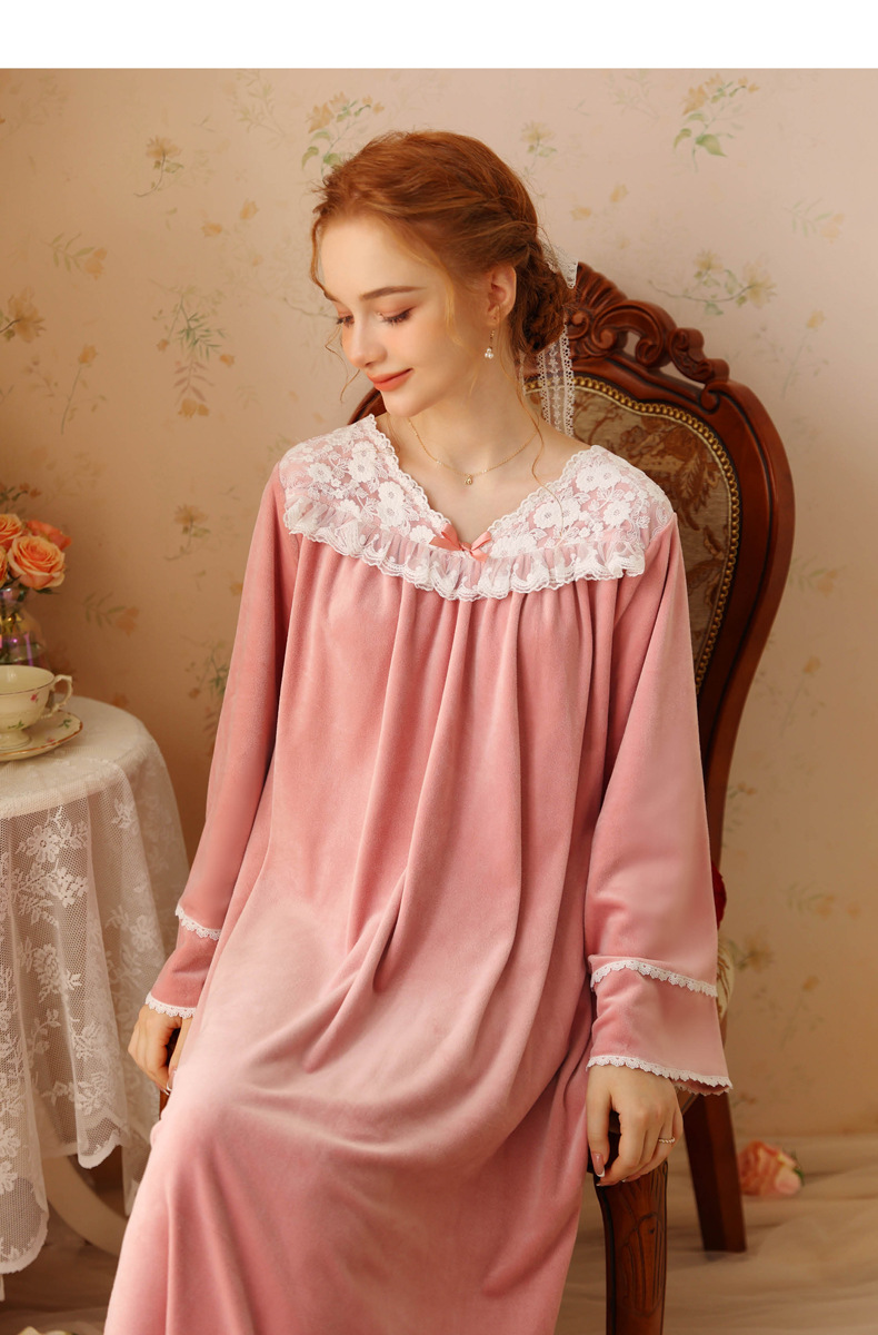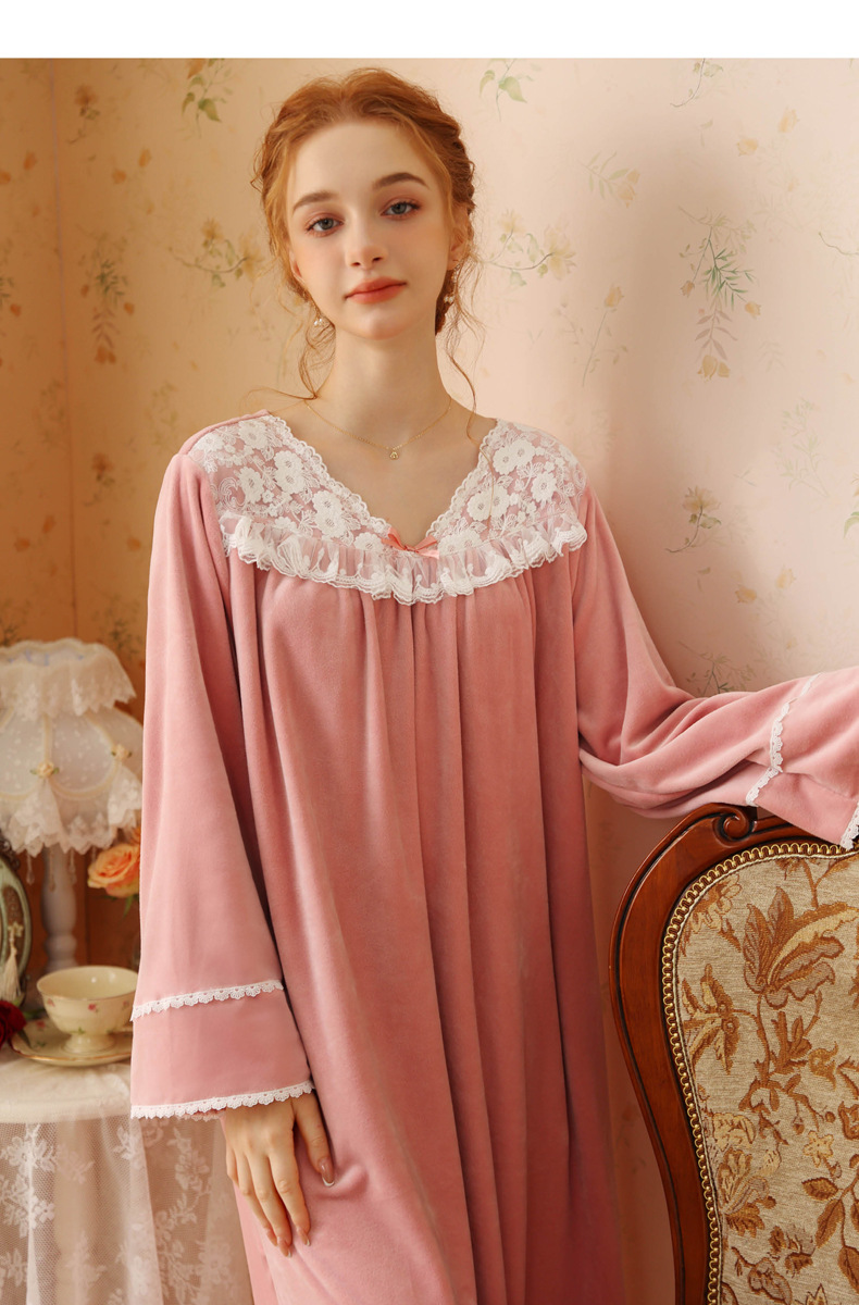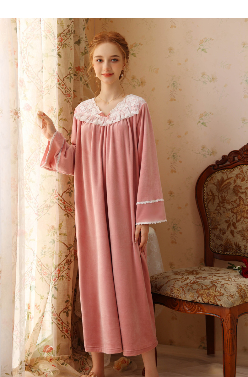 TCLN122100026 絨睡裙少女秋冬季長款長袖公主睡衣法式加絨甜美保暖家居服可外穿