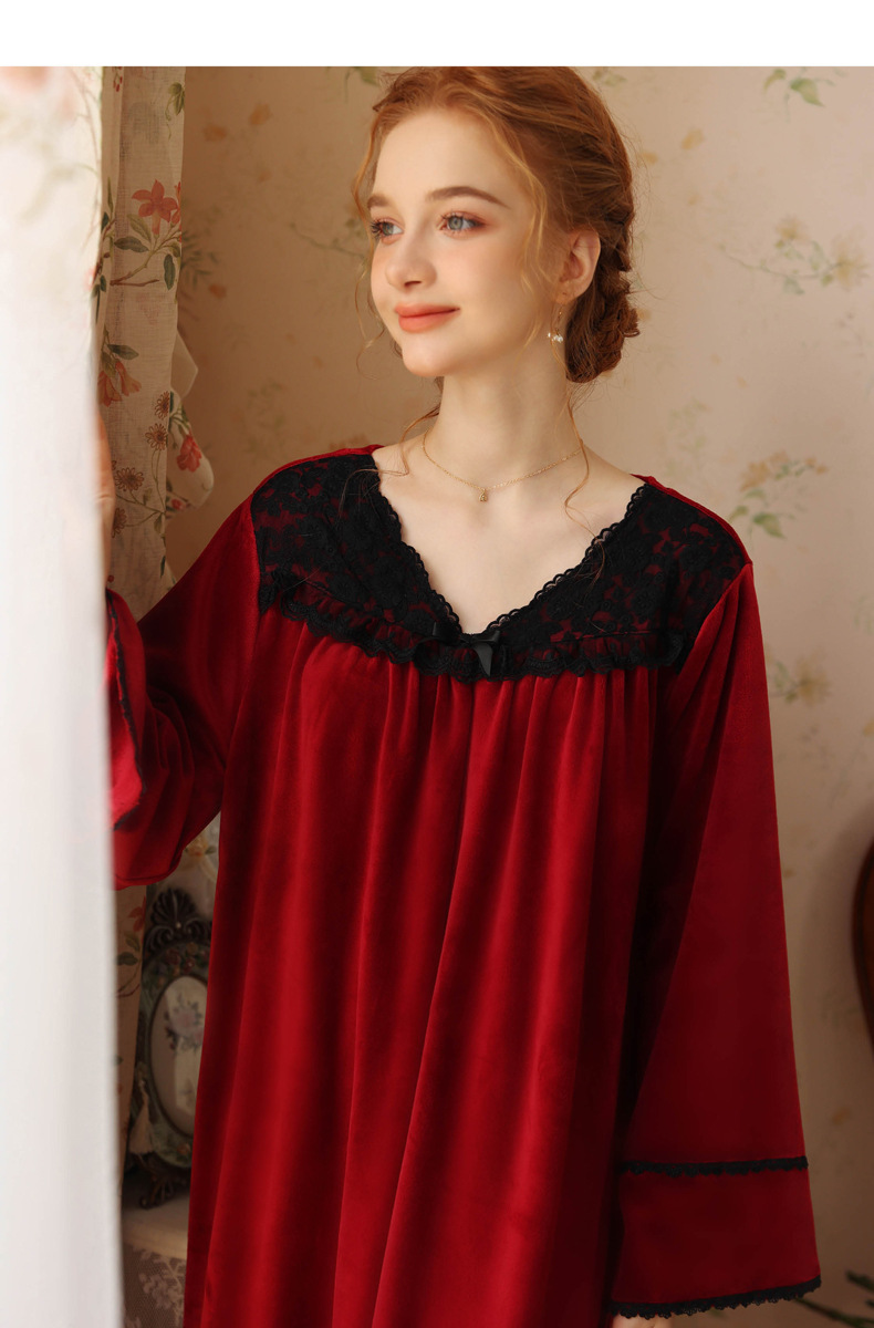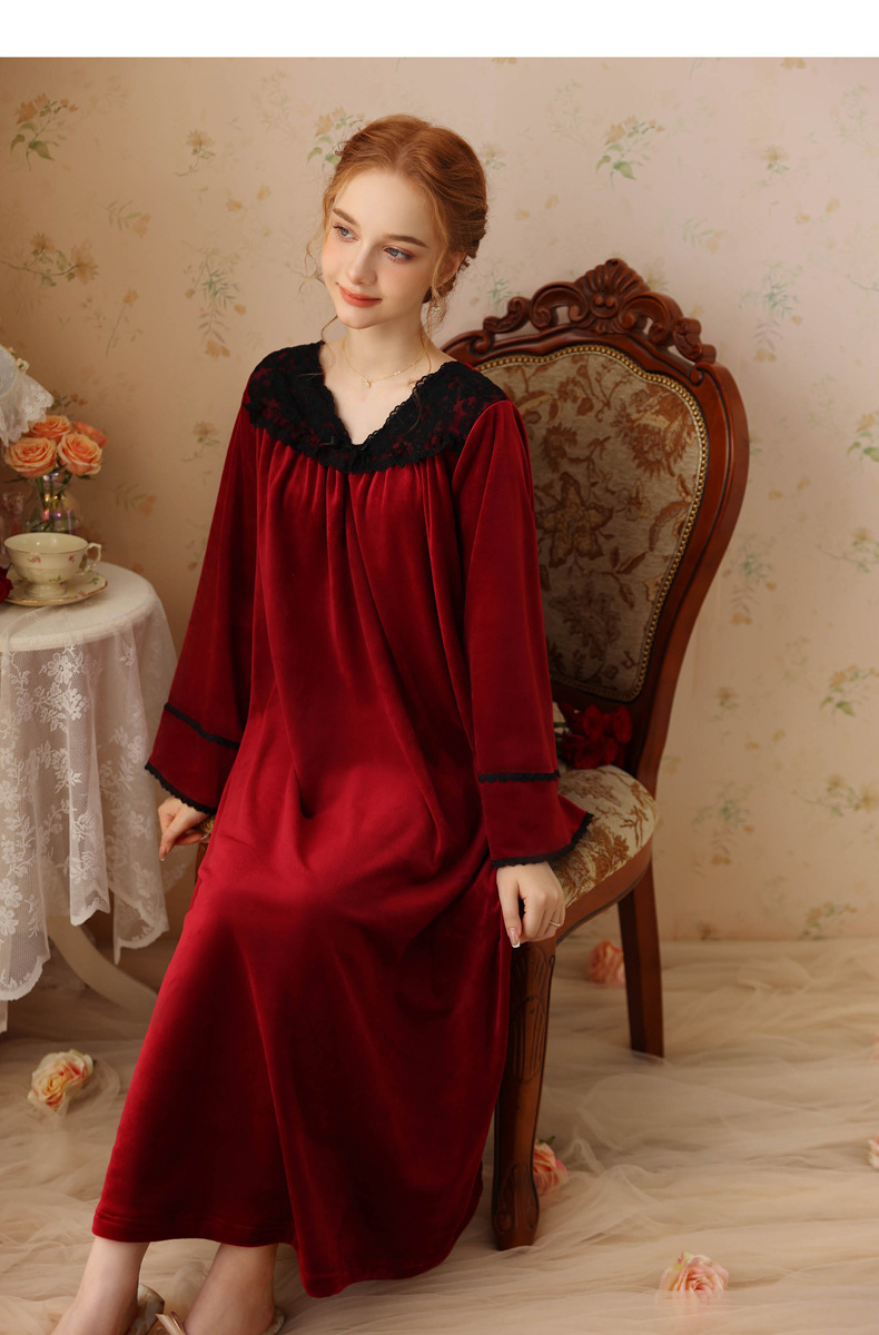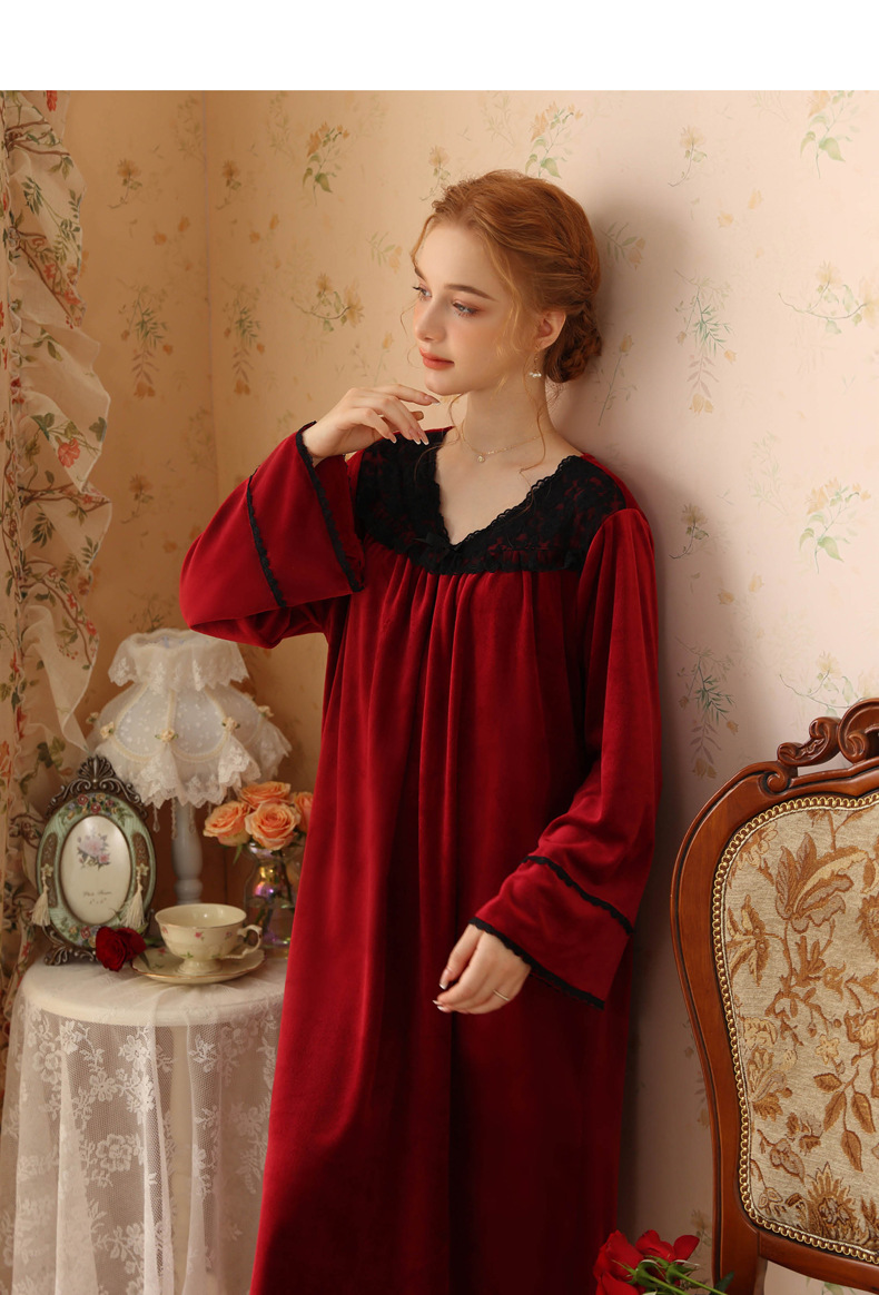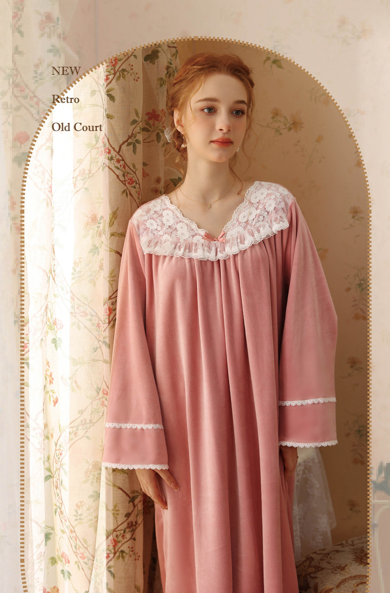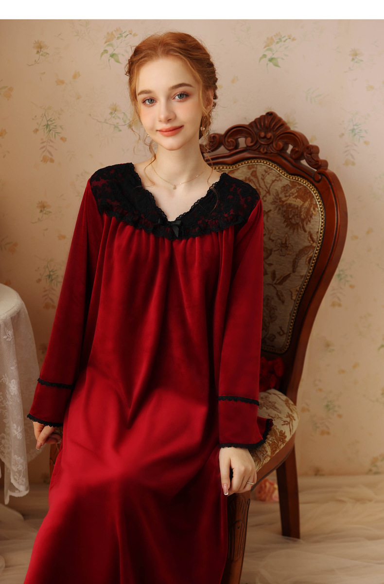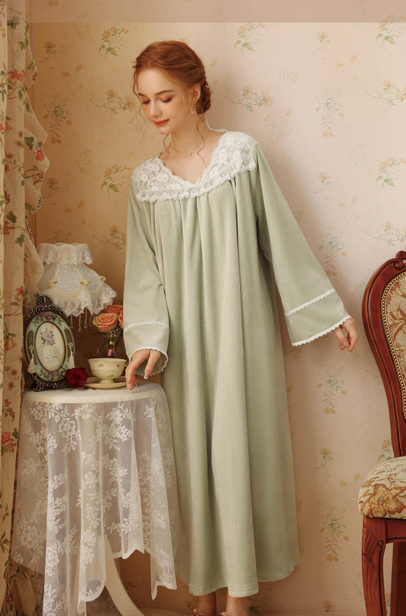 TCLN122100026 絨睡裙少女秋冬季長款長袖公主睡衣法式加絨甜美保暖家居服可外穿