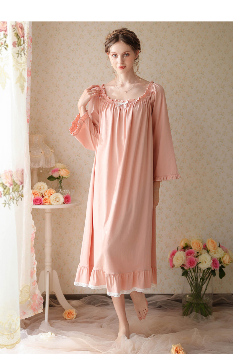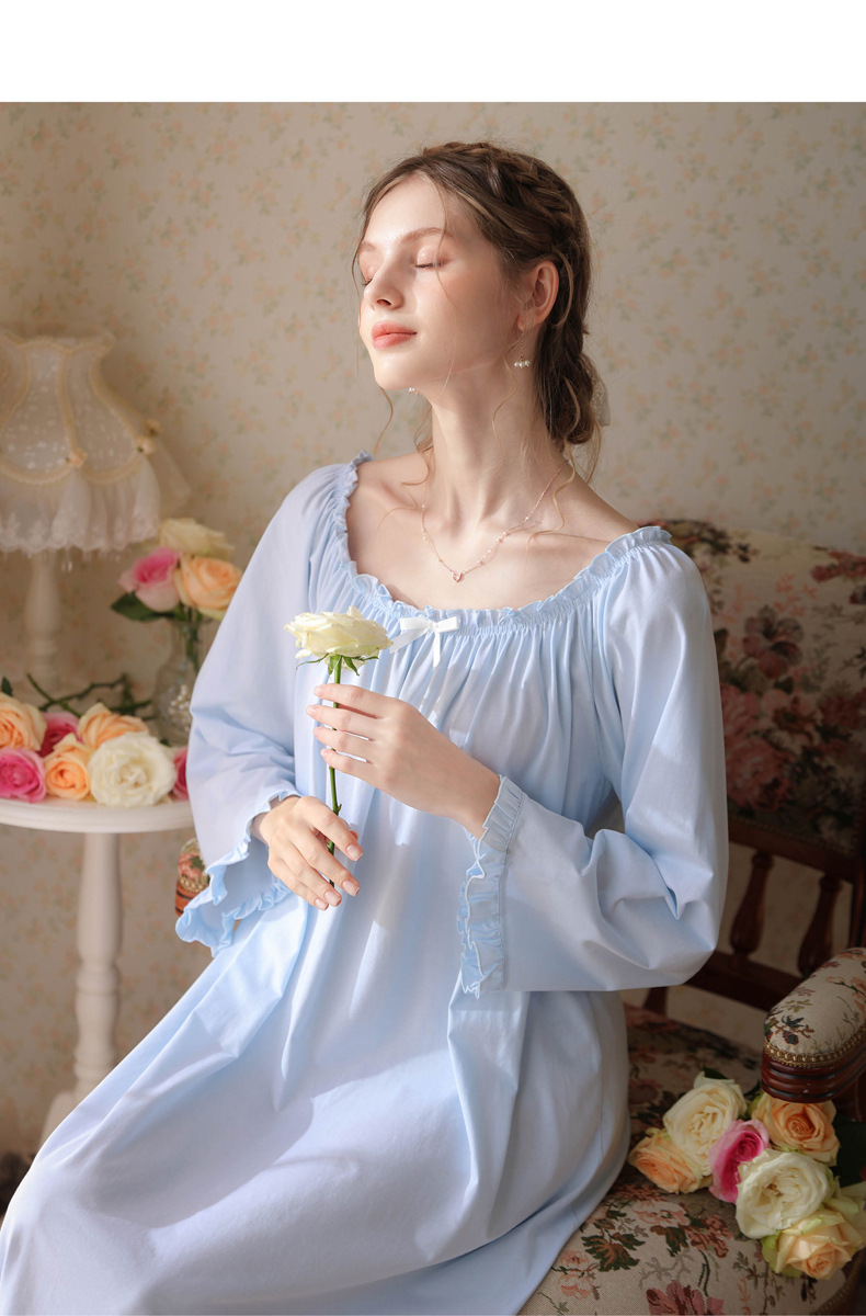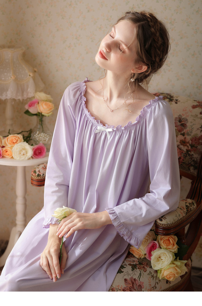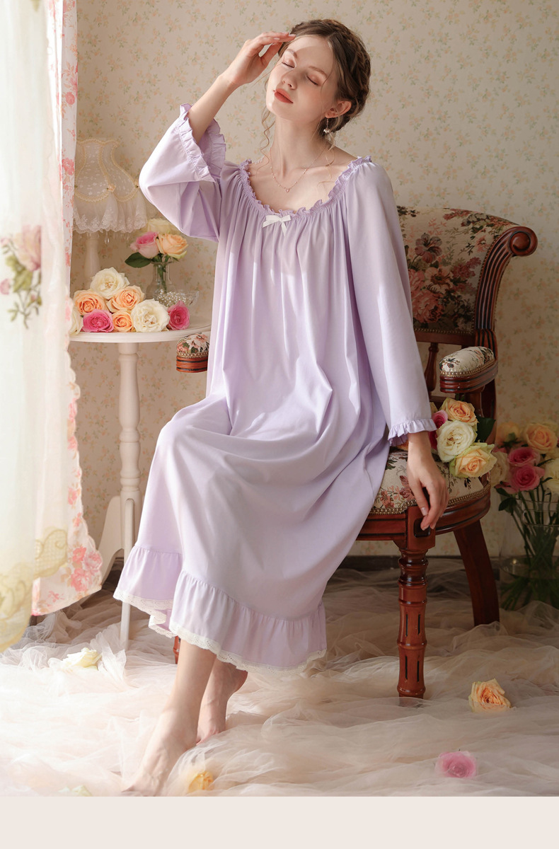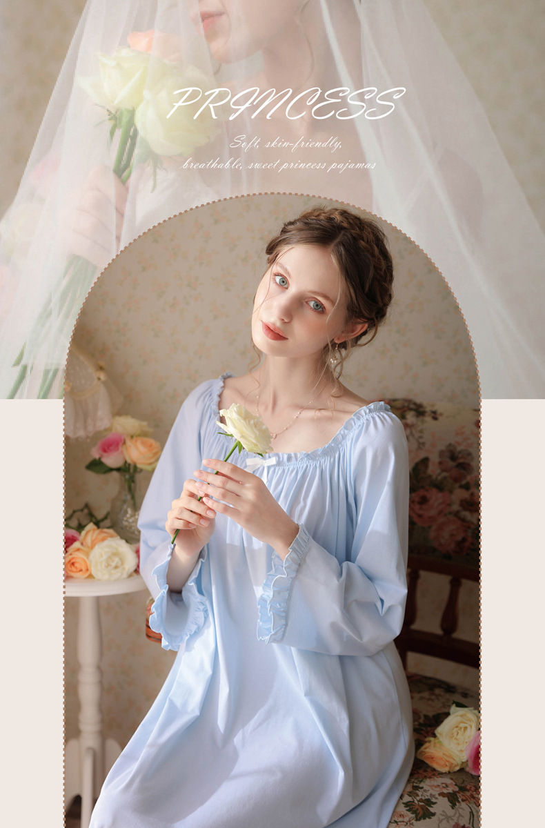 TCLN122100028 法式春秋長款睡衣少女長袖薄款寬松大碼家居服睡裙