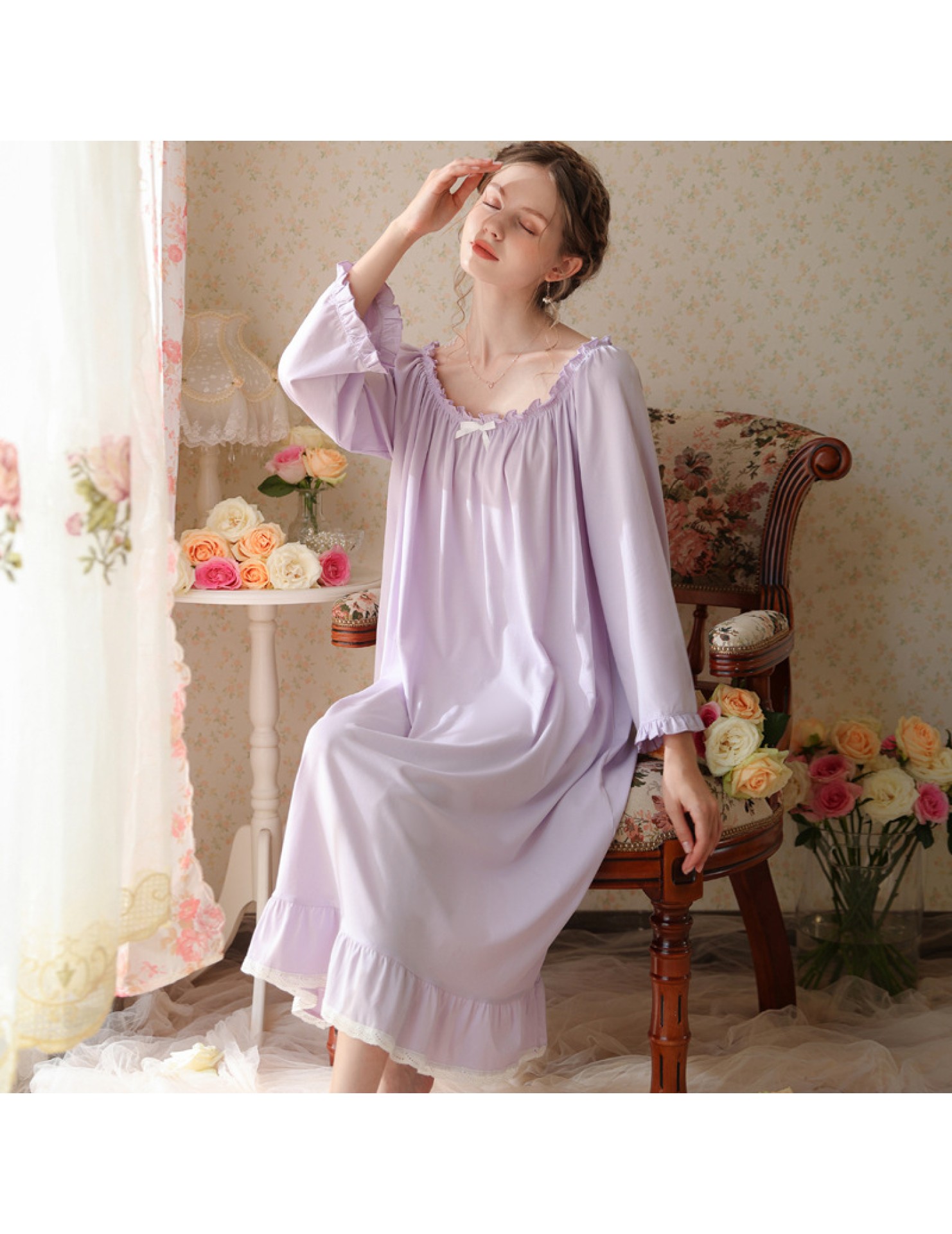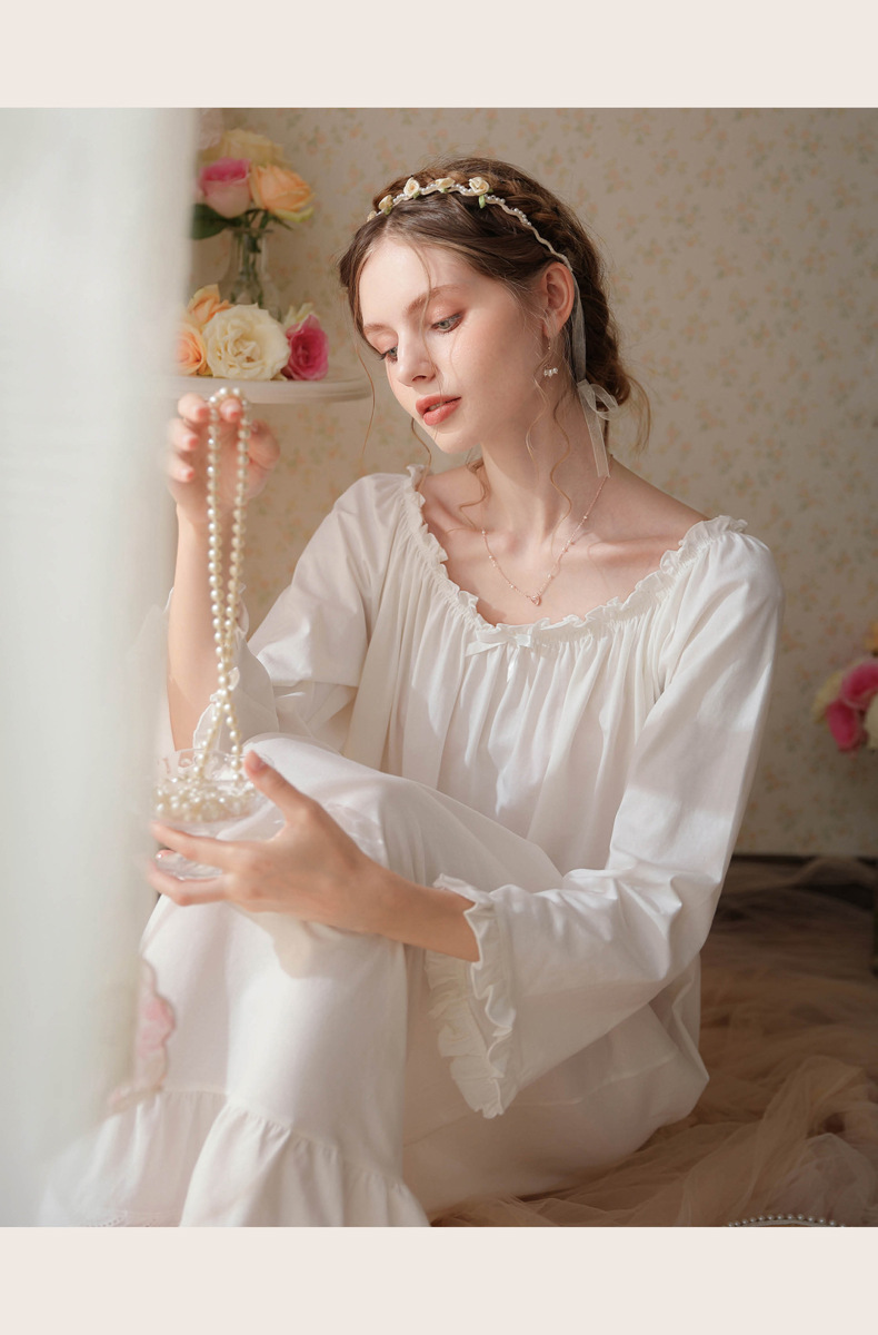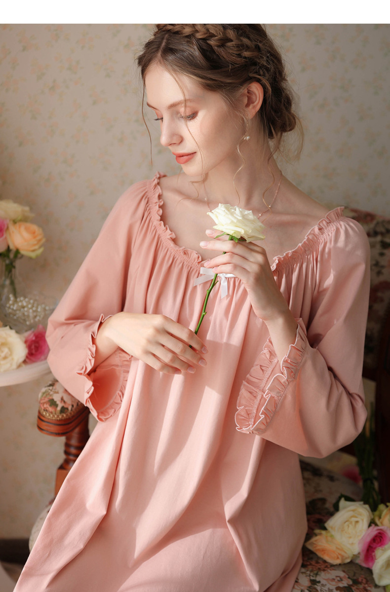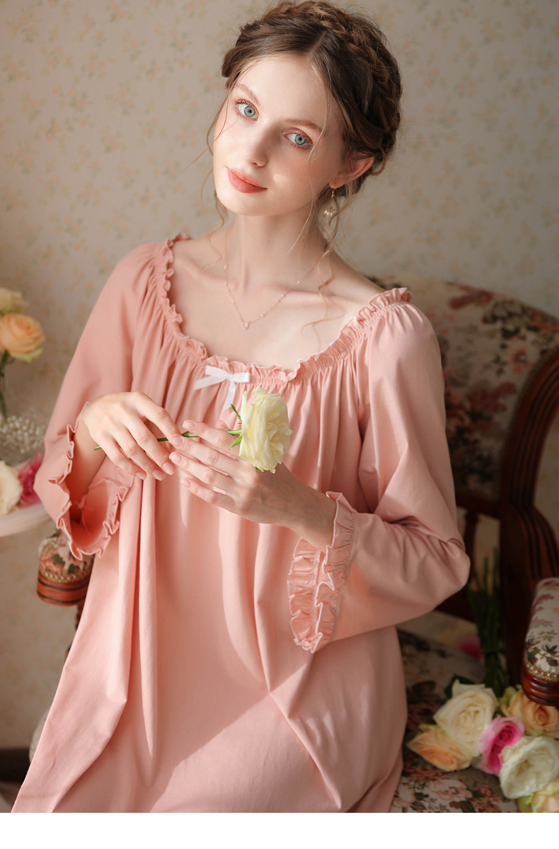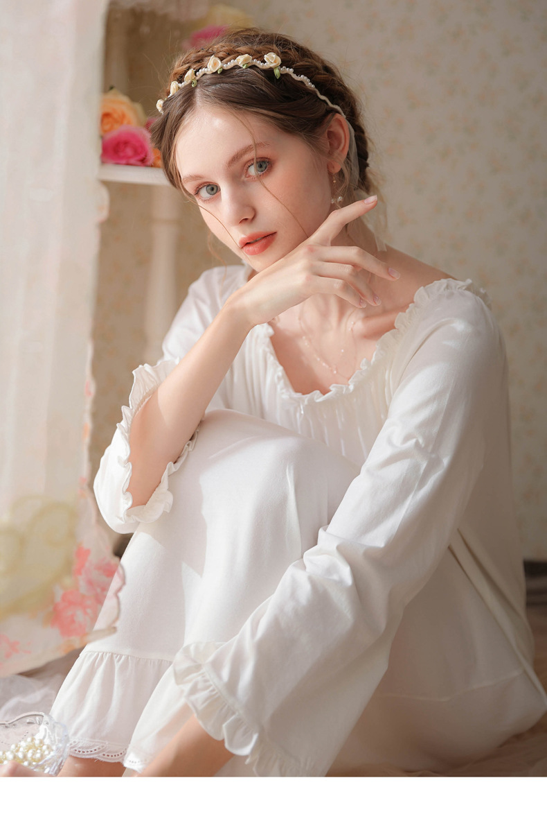 TCLN122100028 法式春秋長款睡衣少女長袖薄款寬松大碼家居服睡裙