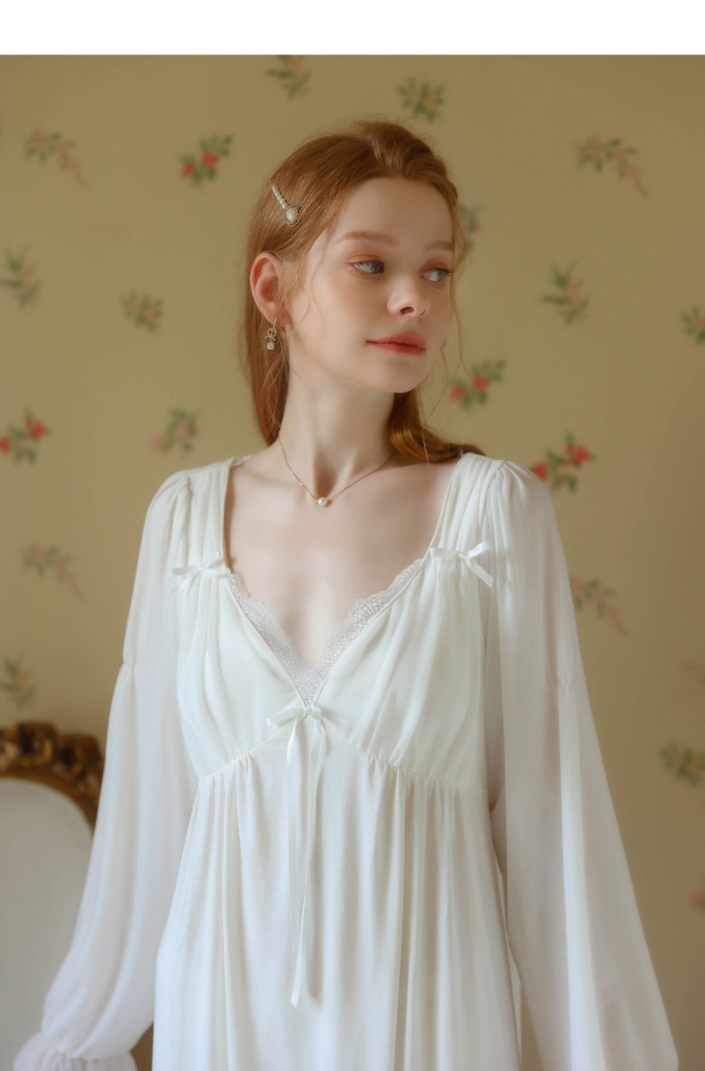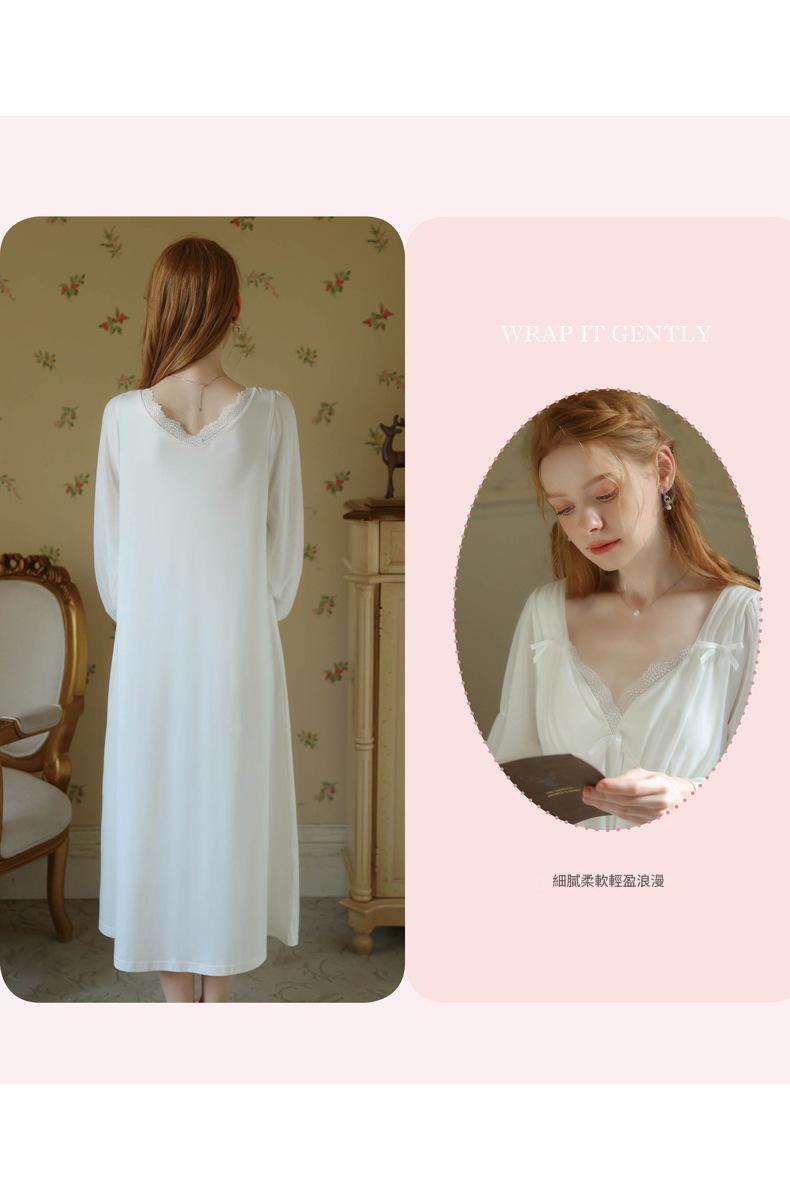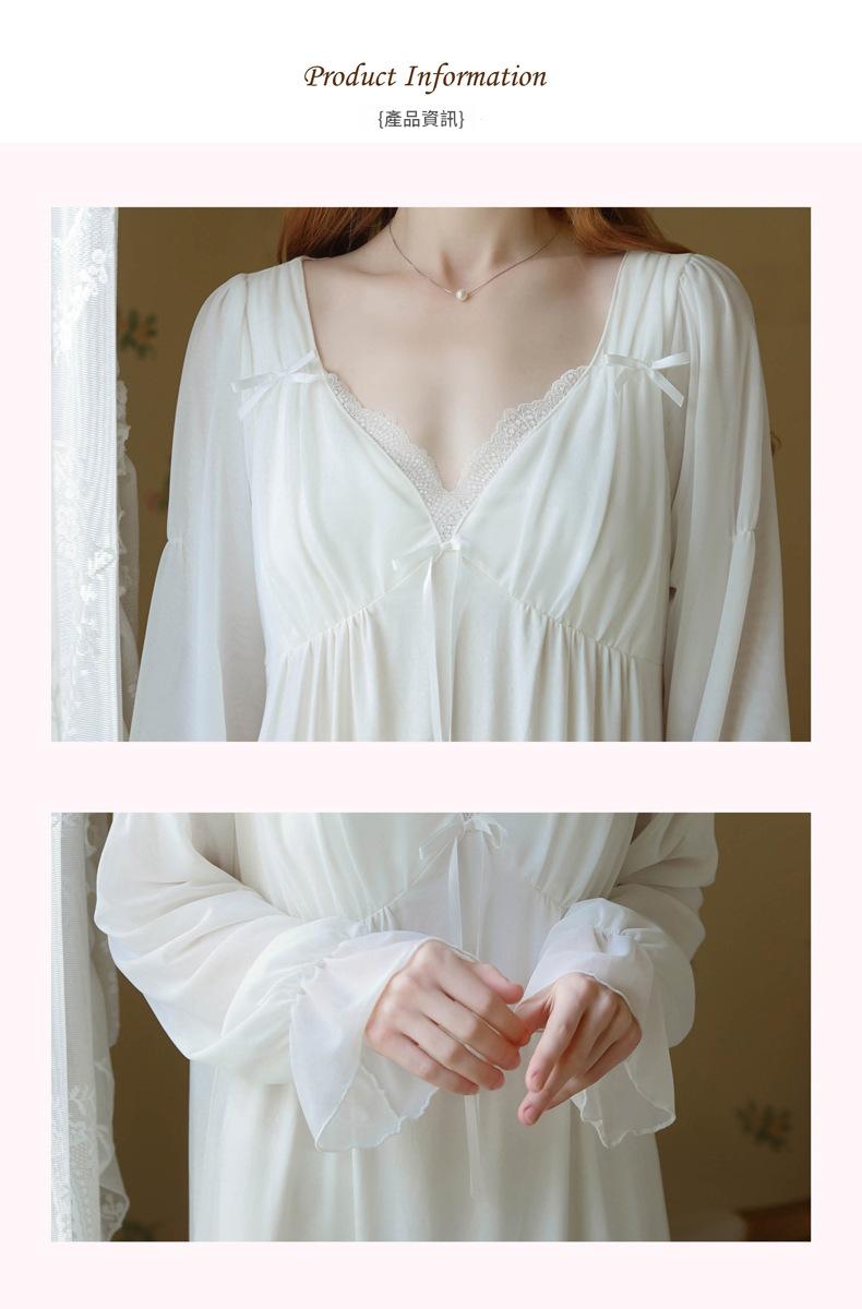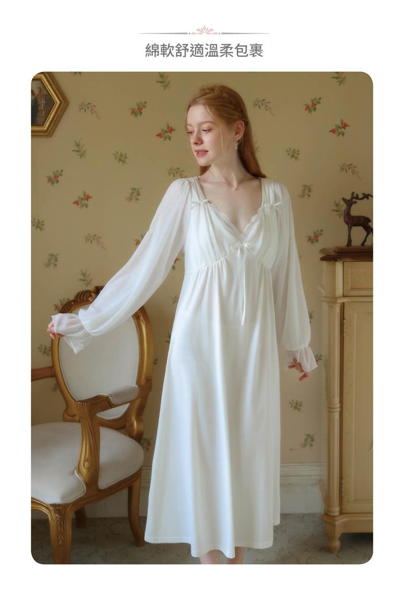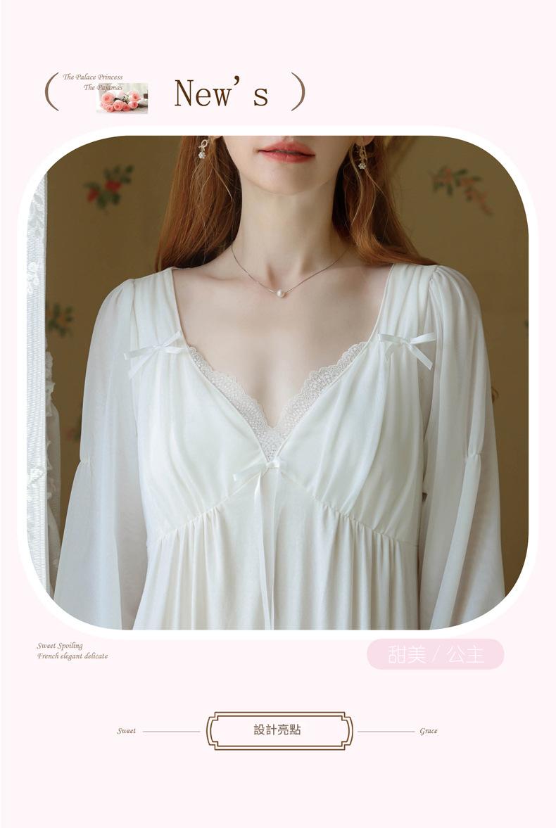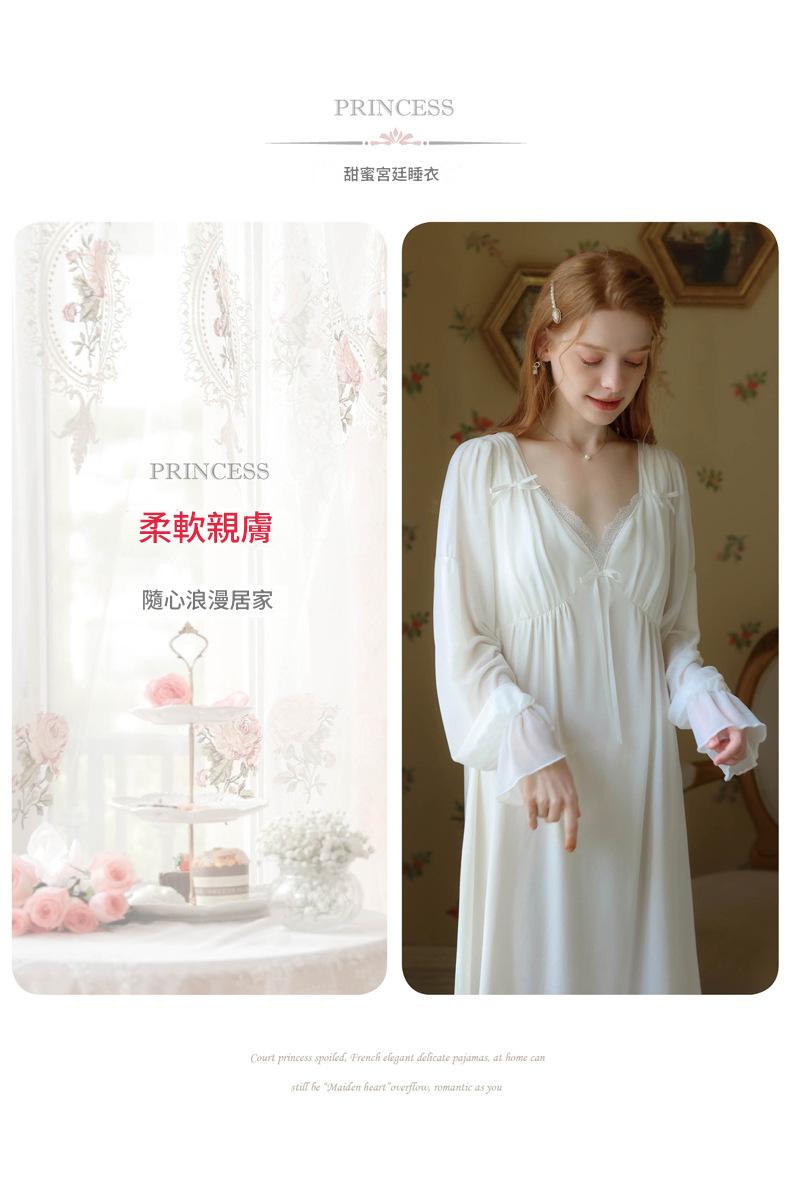 TCLN122100029 公主睡裙女春秋長袖長款蕾絲性感法式宮廷復古睡衣連衣裙帶胸墊