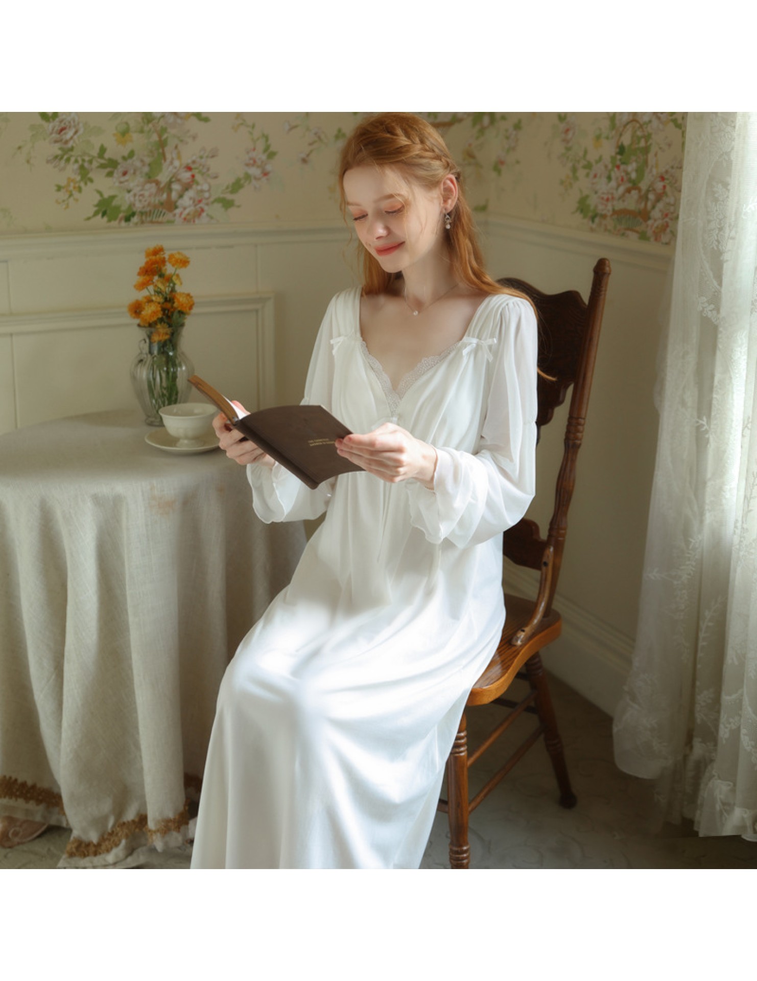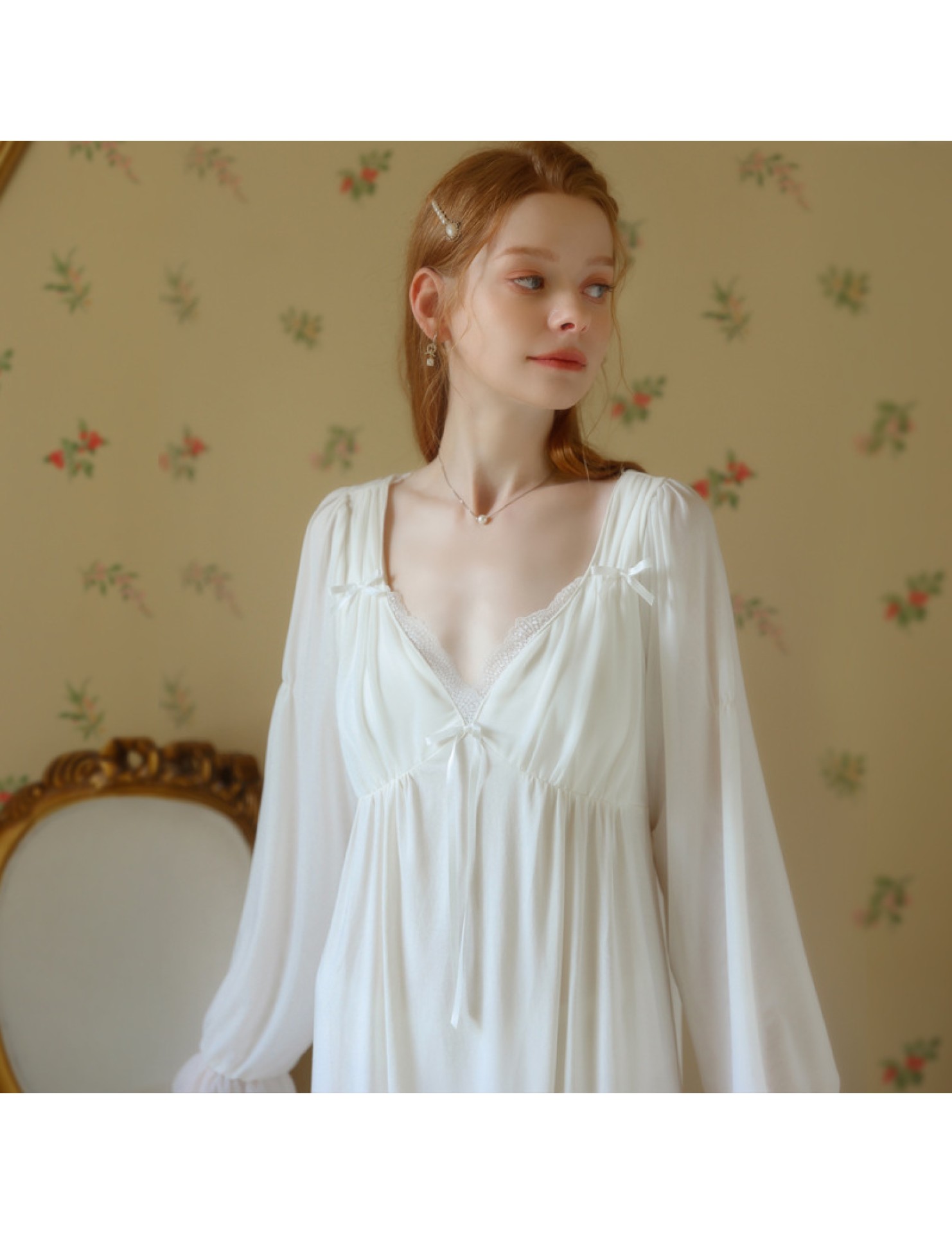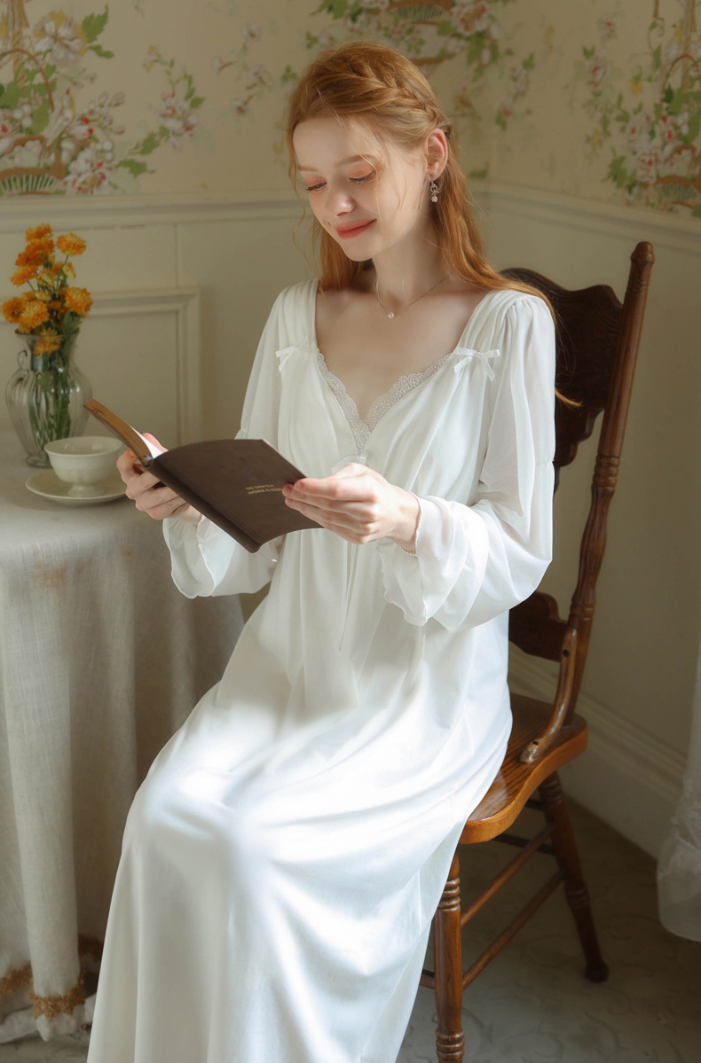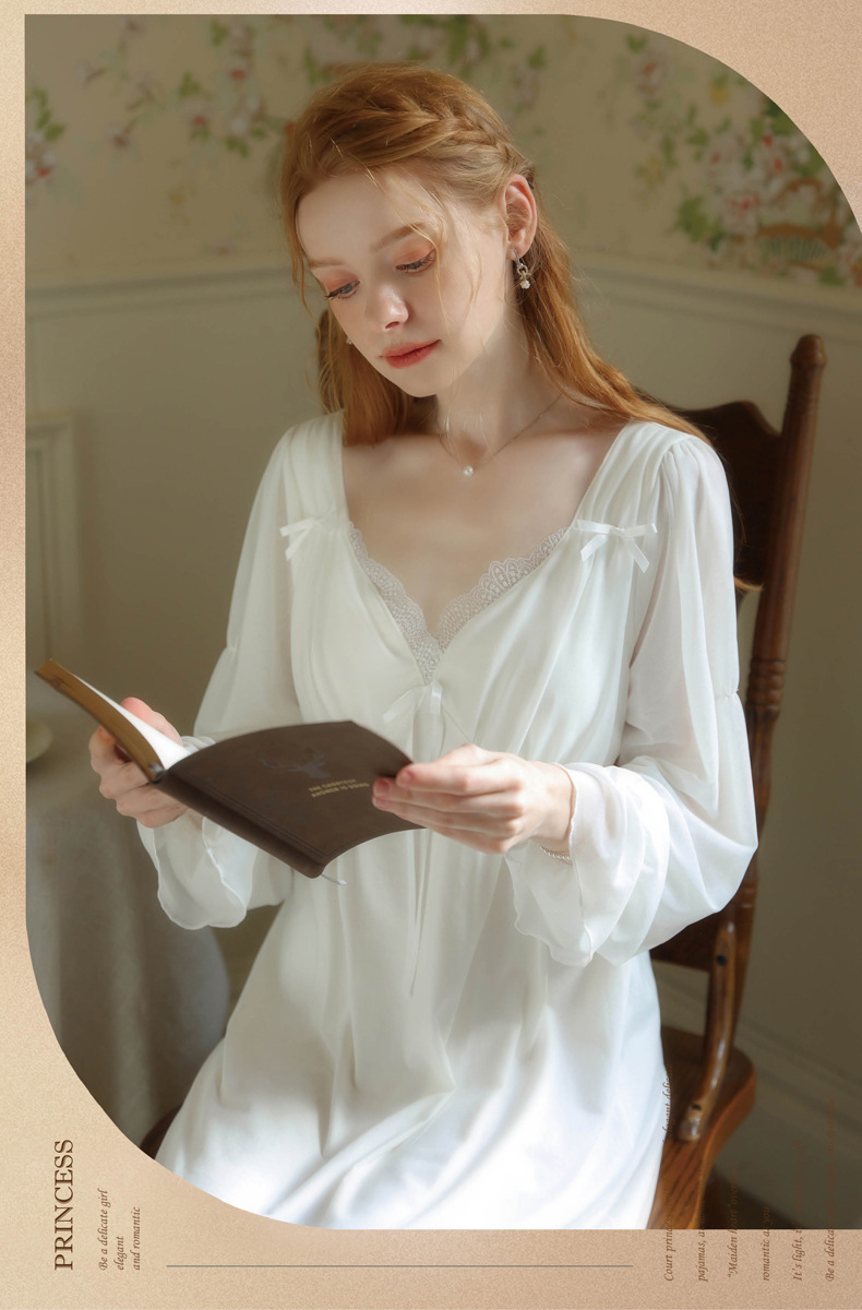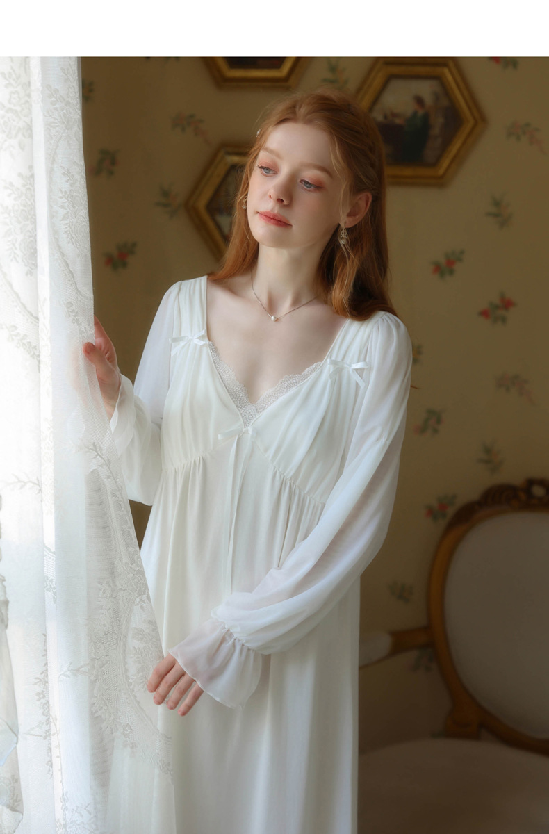 TCLN122100029 公主睡裙女春秋長袖長款蕾絲性感法式宮廷復古睡衣連衣裙帶胸墊