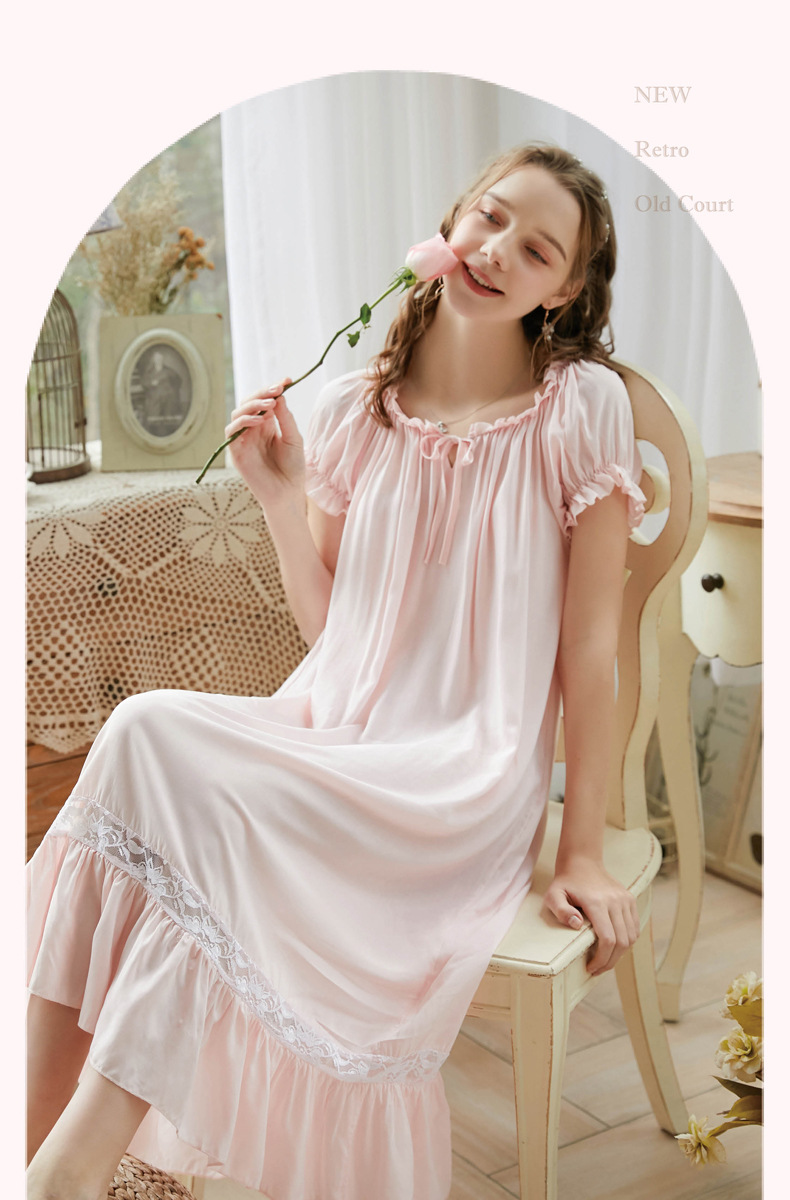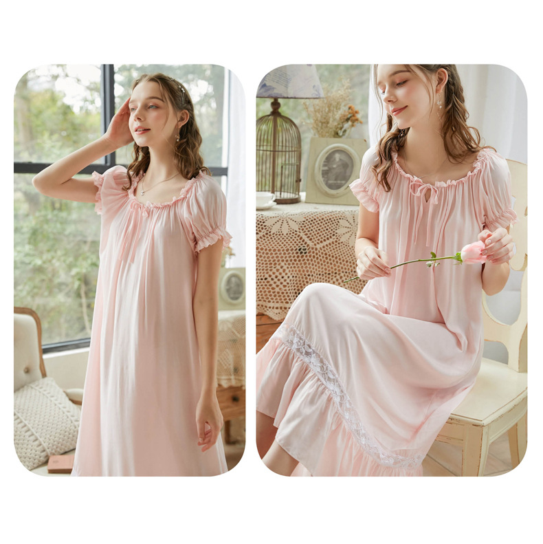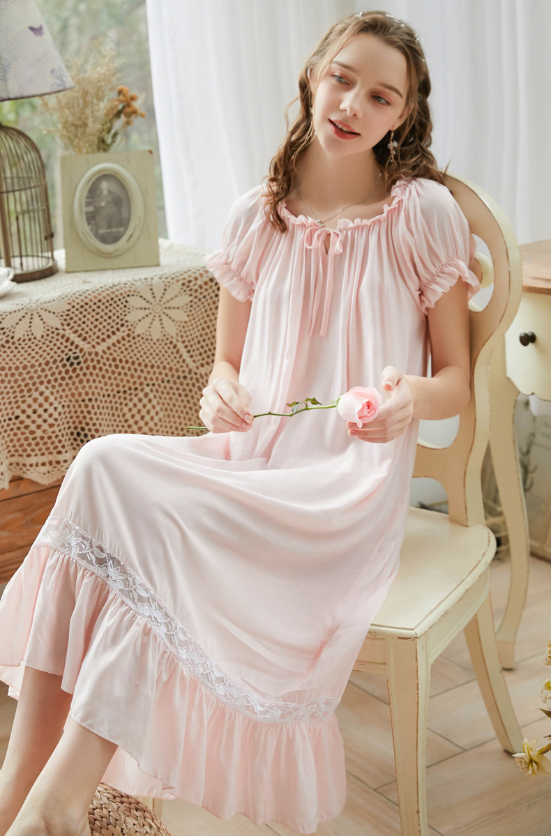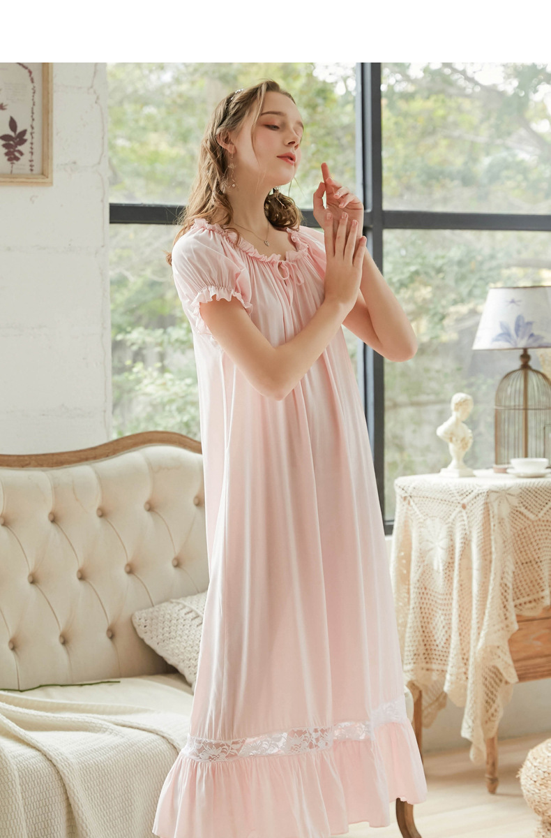 TCLN122100030 短袖睡裙新品棉女夏長裙寬松可愛宮廷甜美公主風廠家睡衣家居