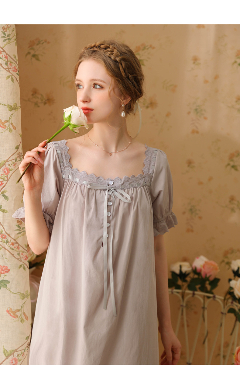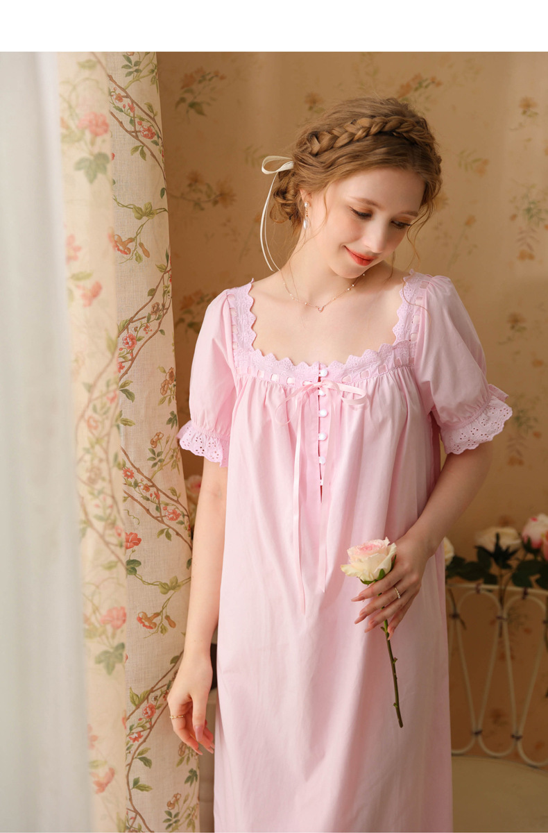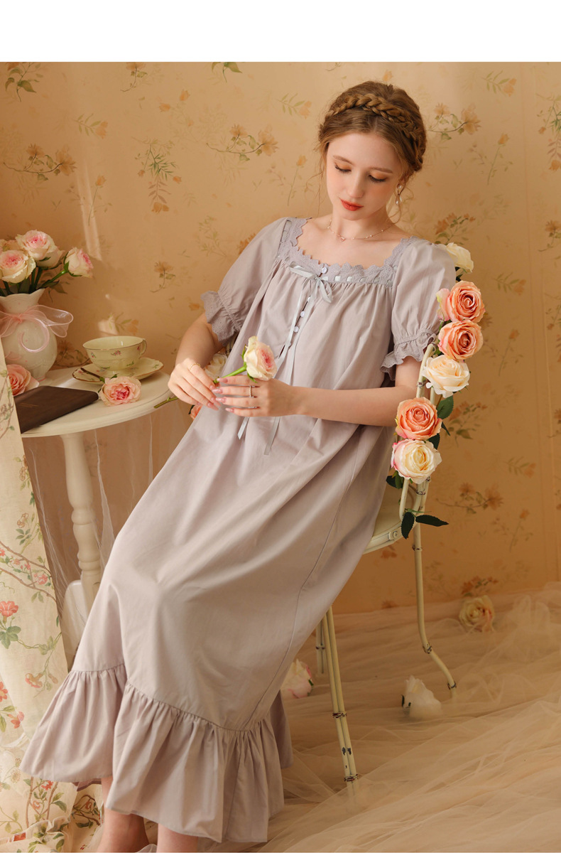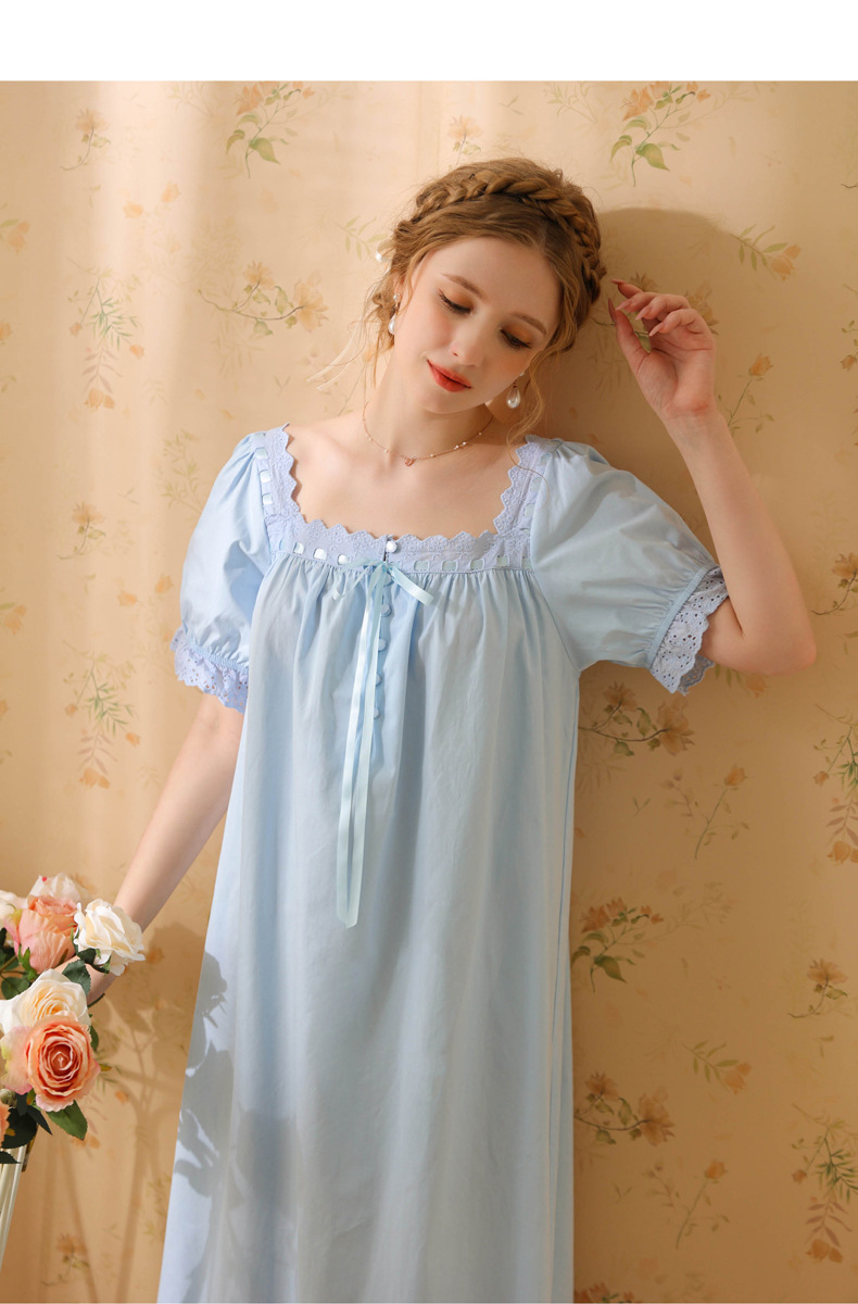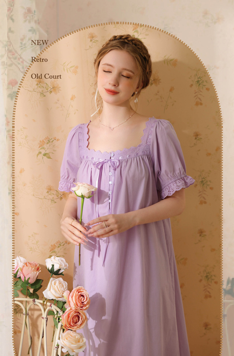 TCLN122100032 新款宮廷風睡裙少女夏長款性感復古法式公主短袖長款寬松睡衣