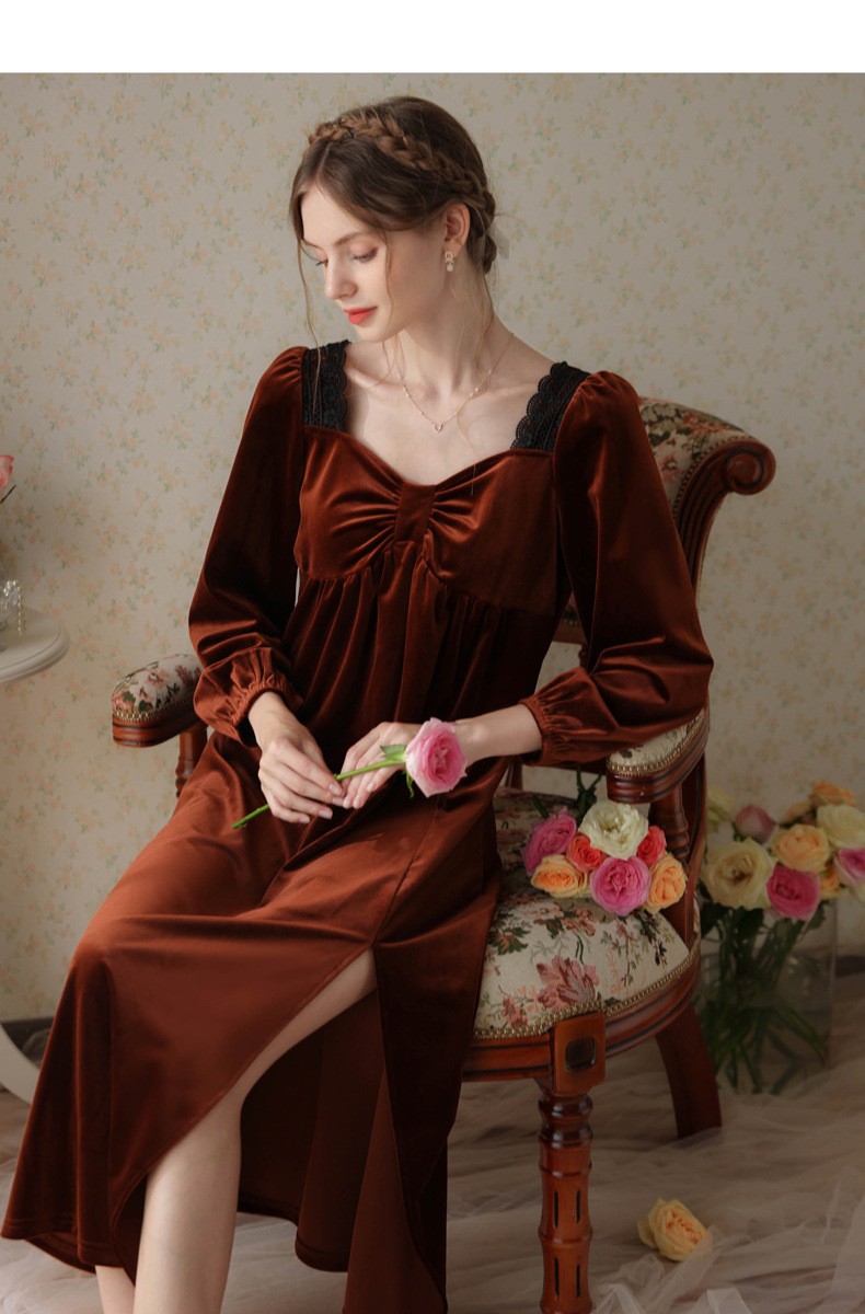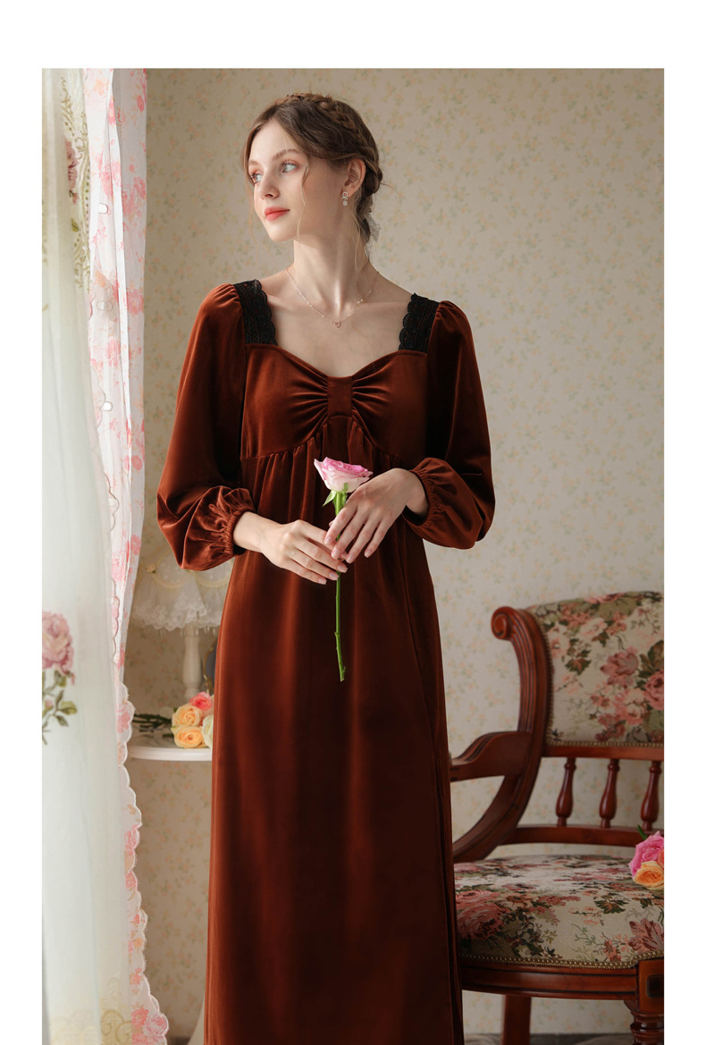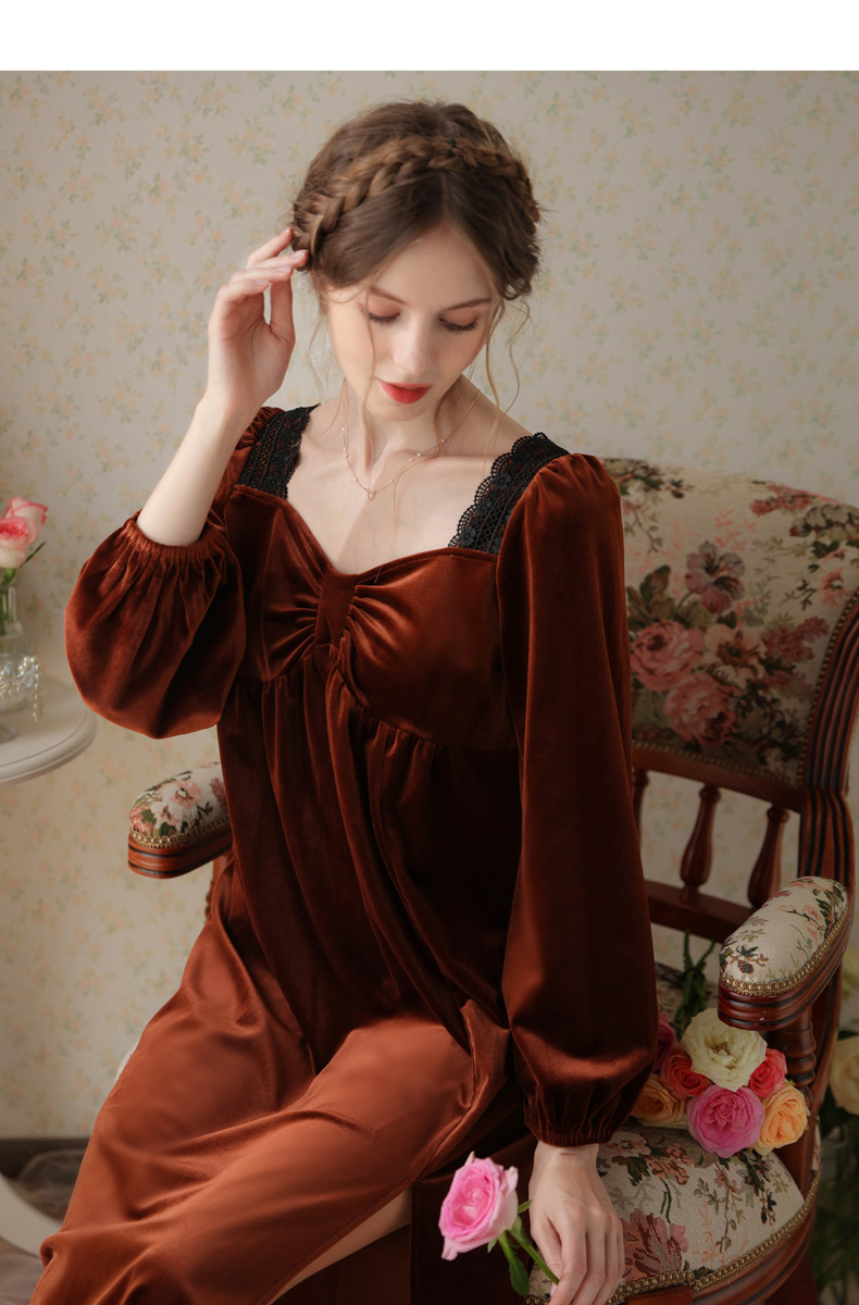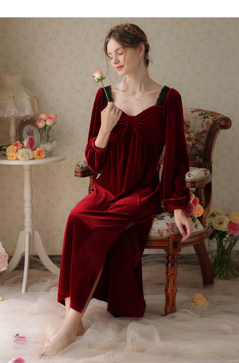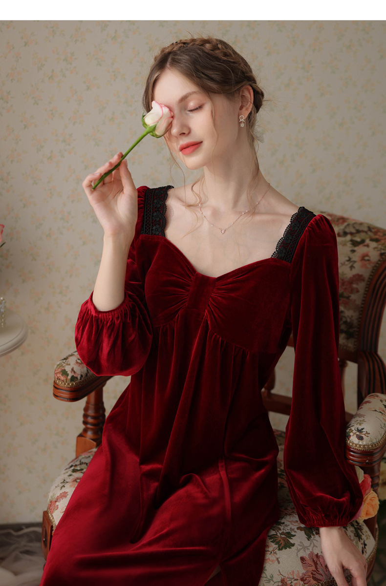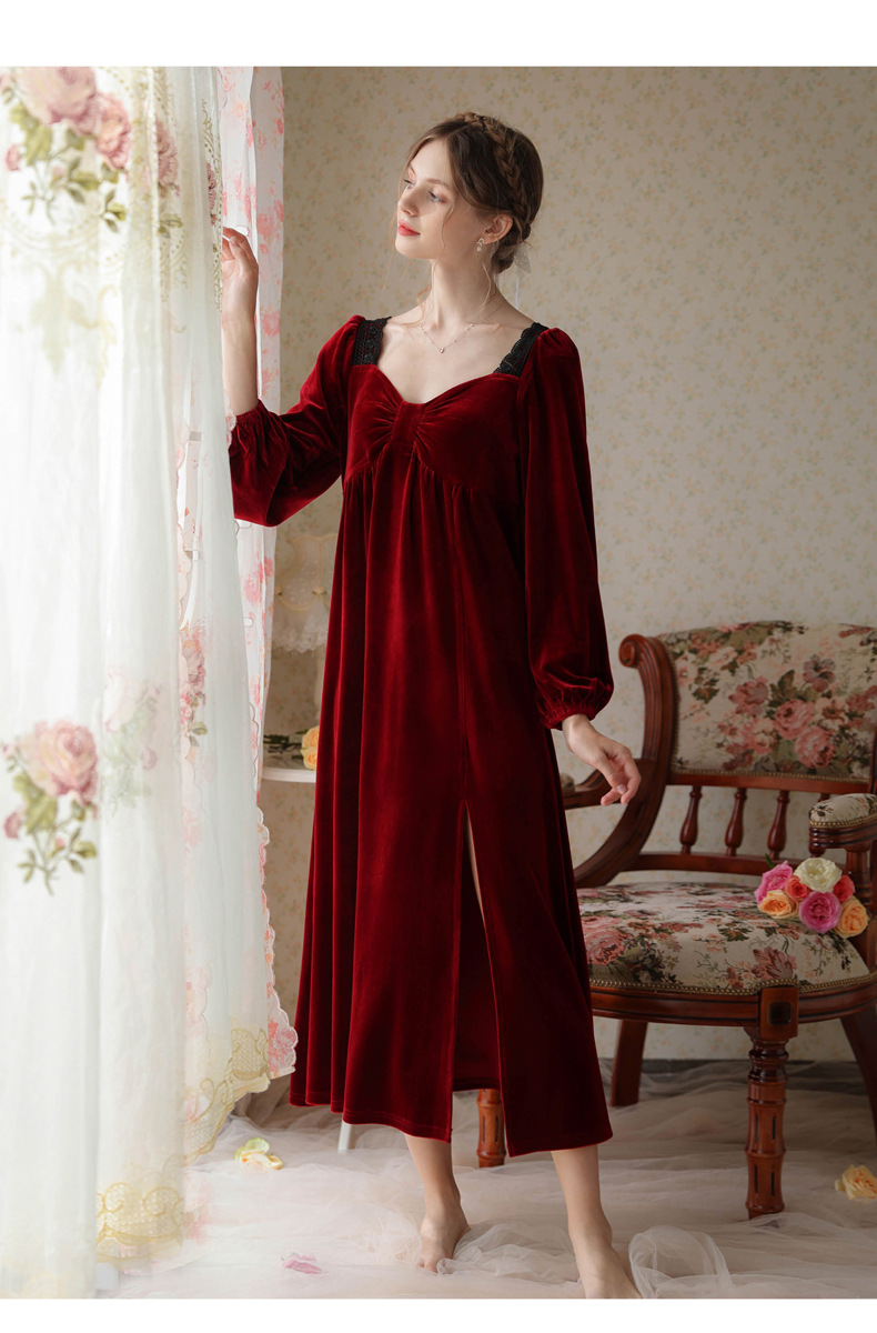 TCLN122100041 法式長款睡裙秋冬紅色絨厚款宮廷長袖性感女加絨睡衣