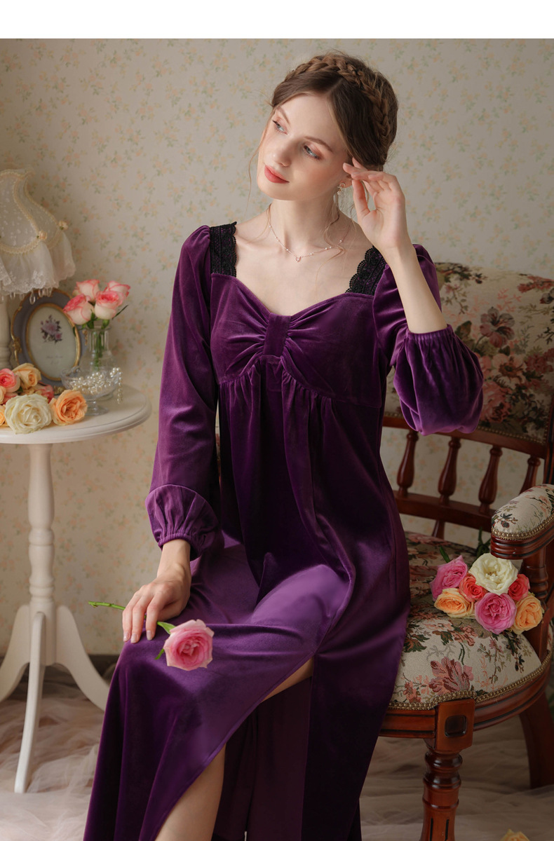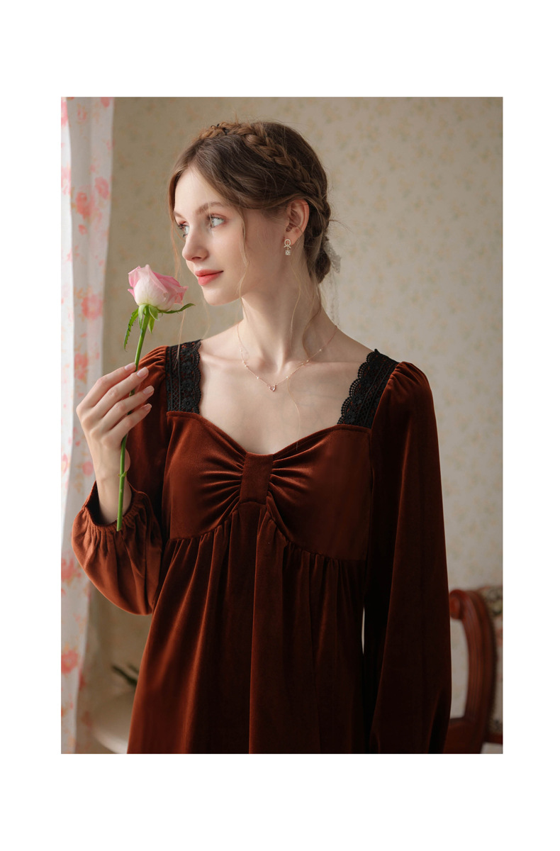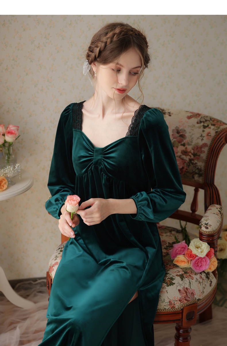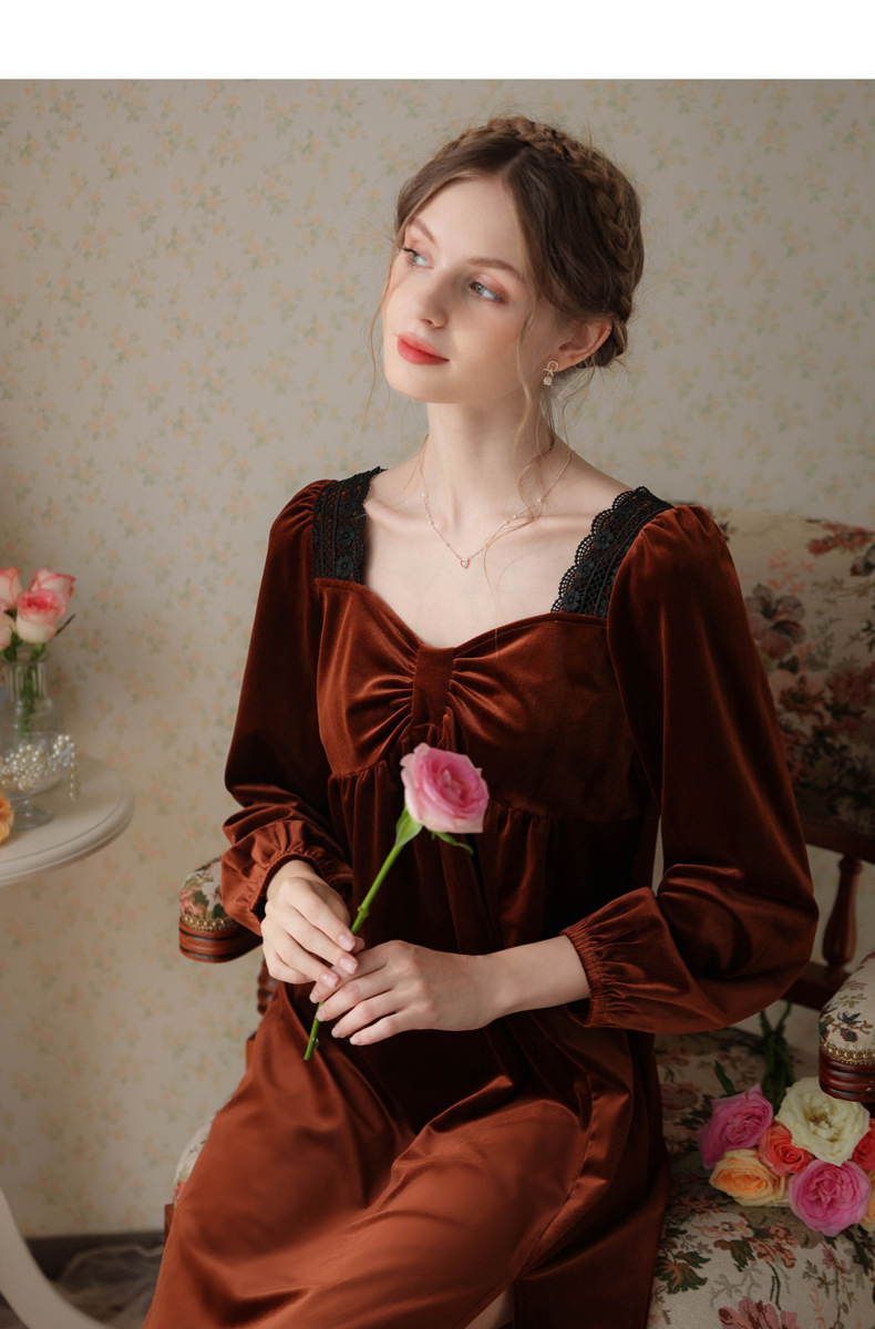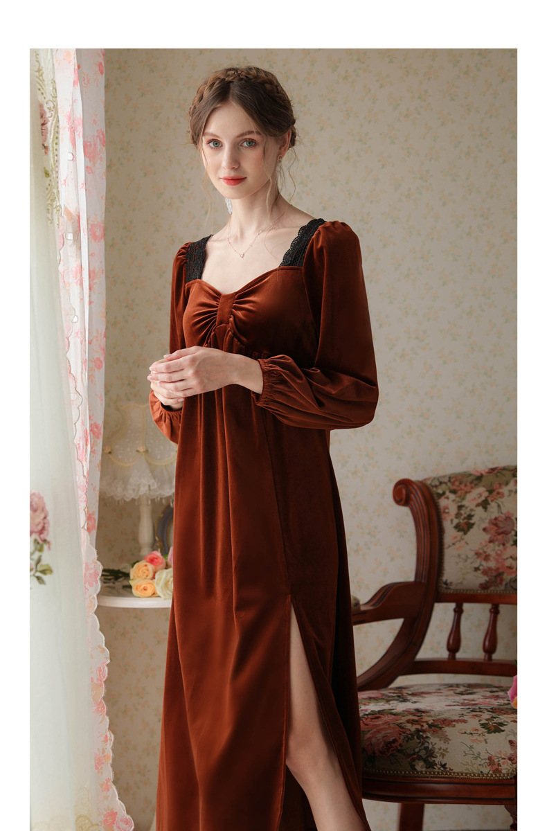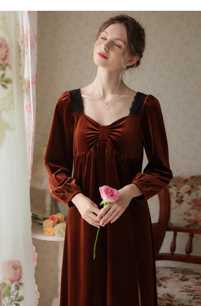 TCLN122100041 法式長款睡裙秋冬紅色絨厚款宮廷長袖性感女加絨睡衣