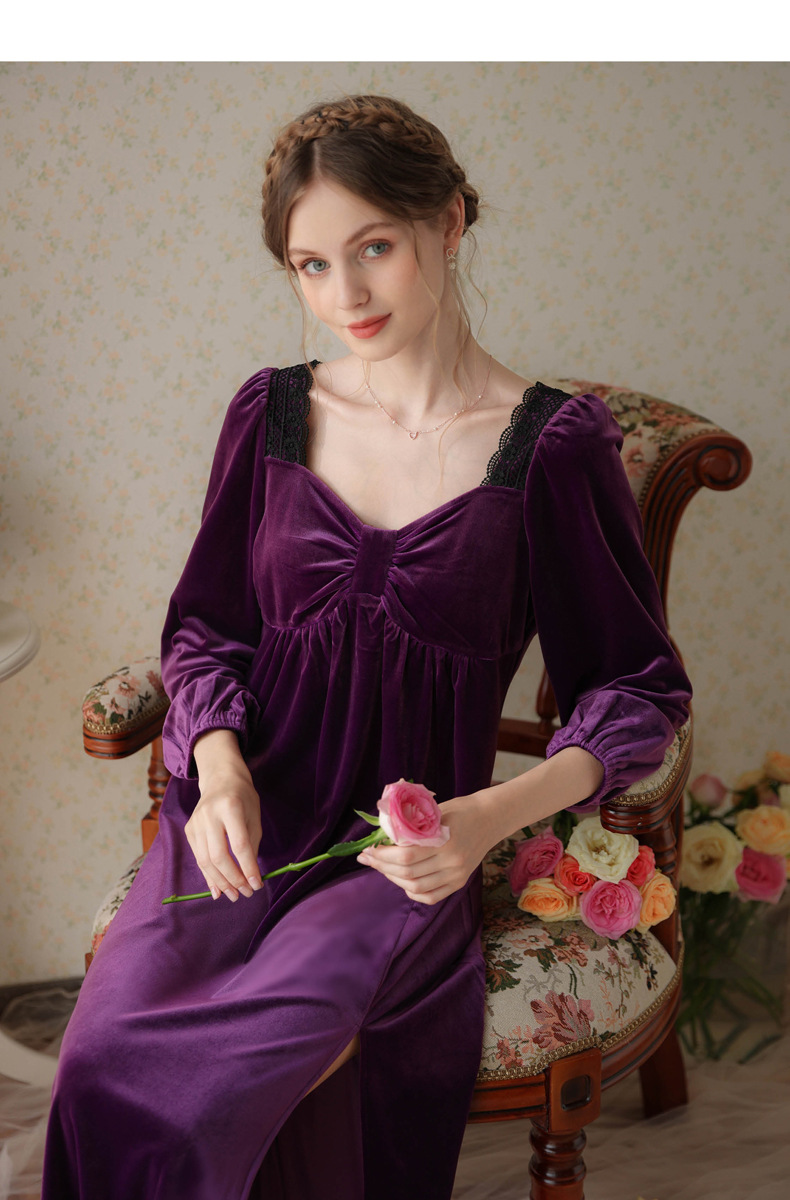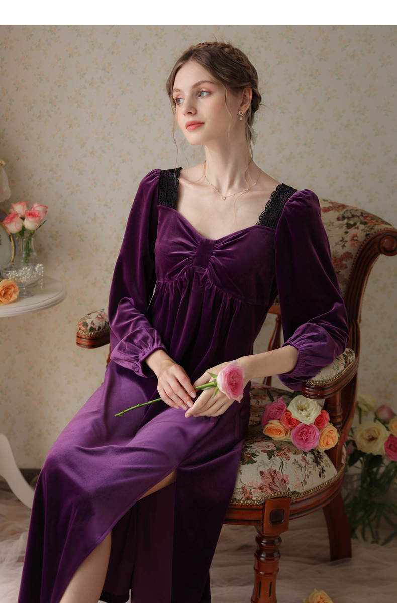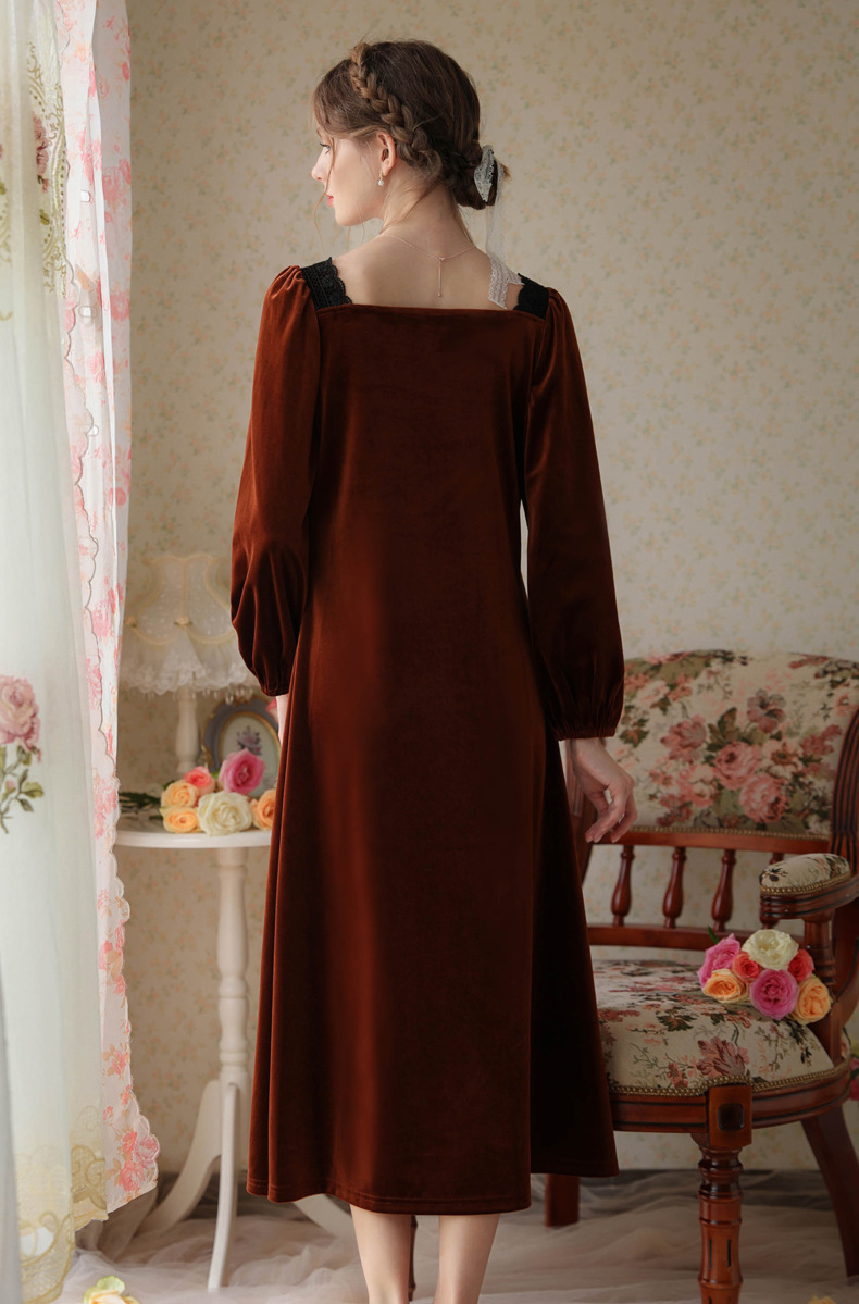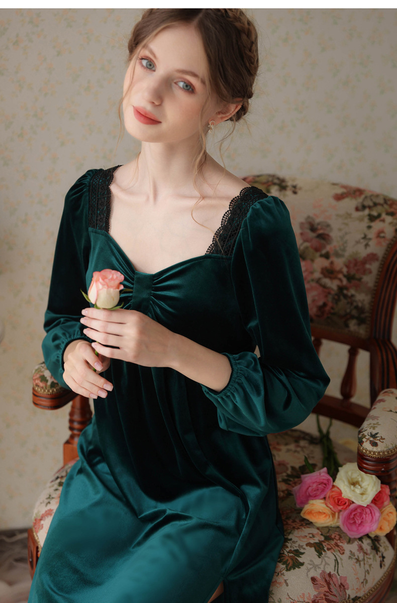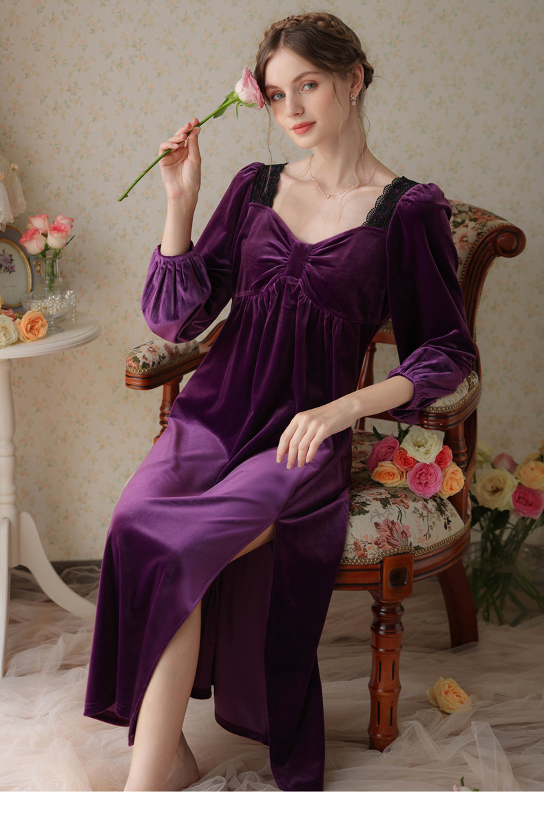 TCLN122100041 法式長款睡裙秋冬紅色絨厚款宮廷長袖性感女加絨睡衣