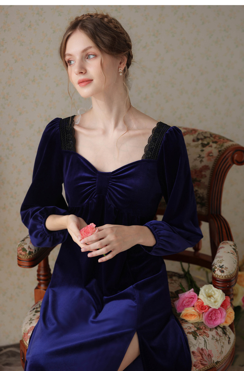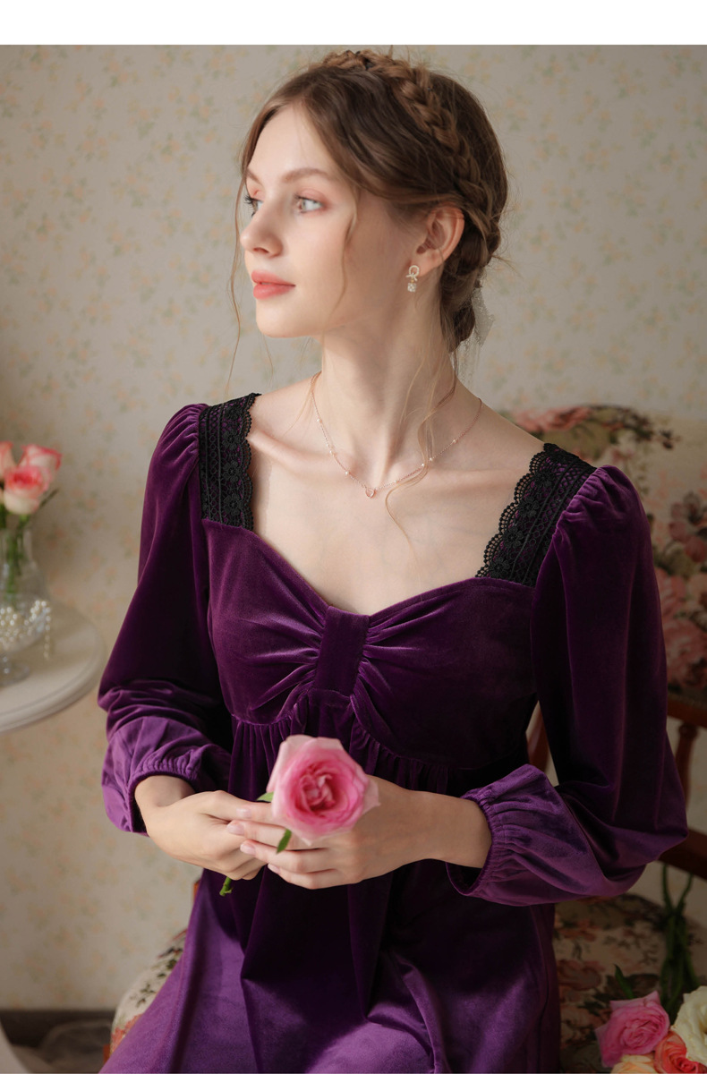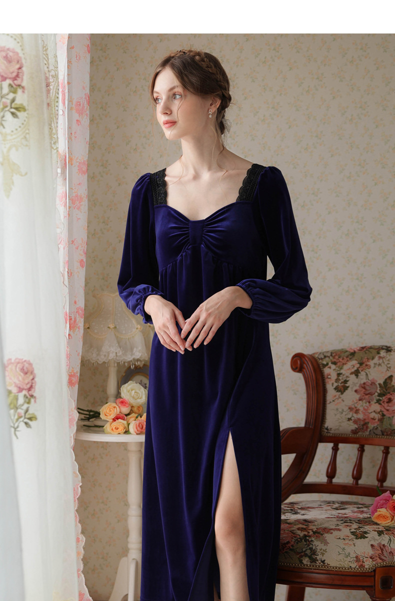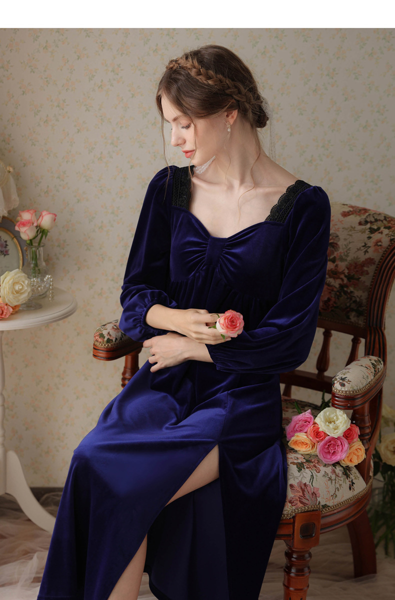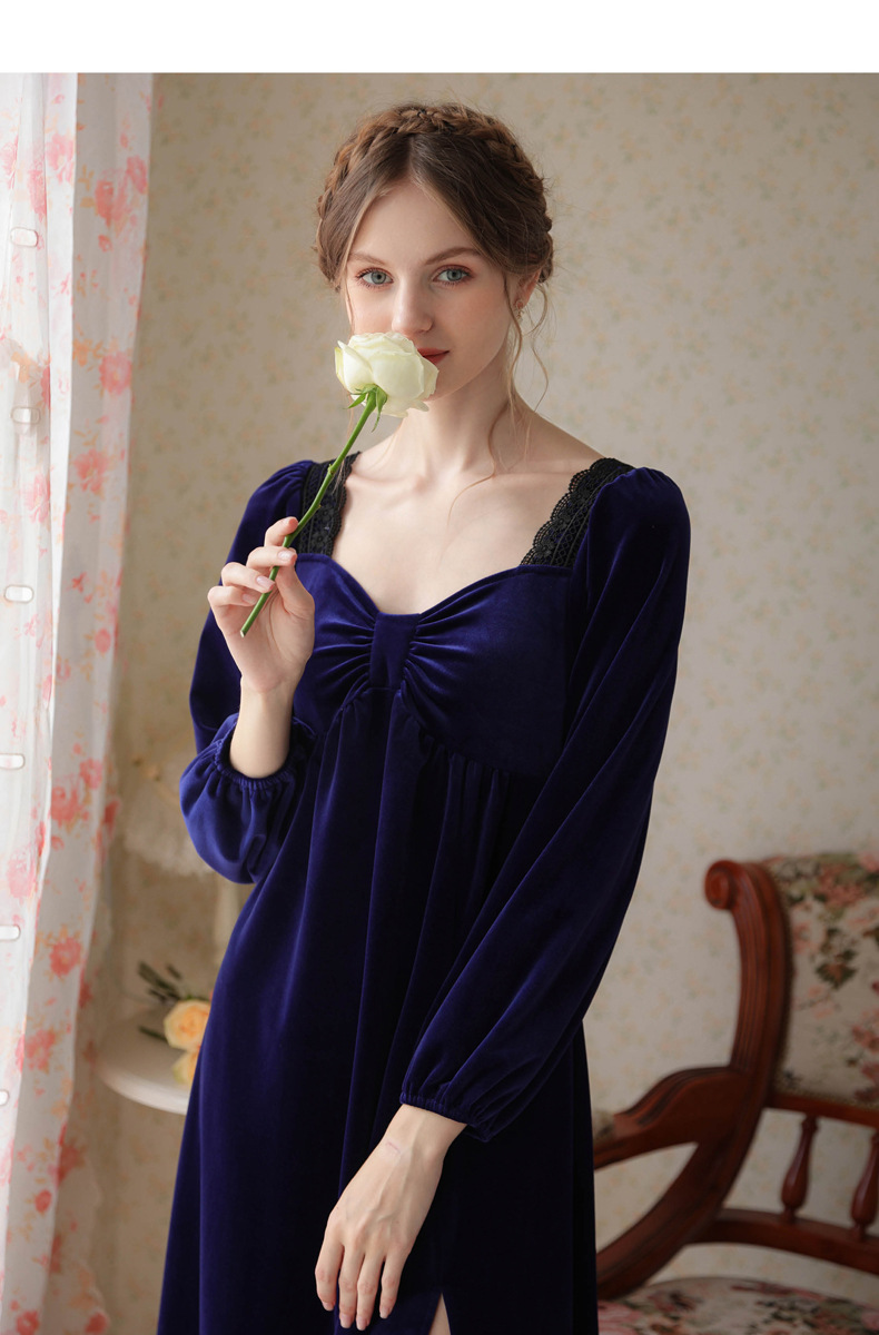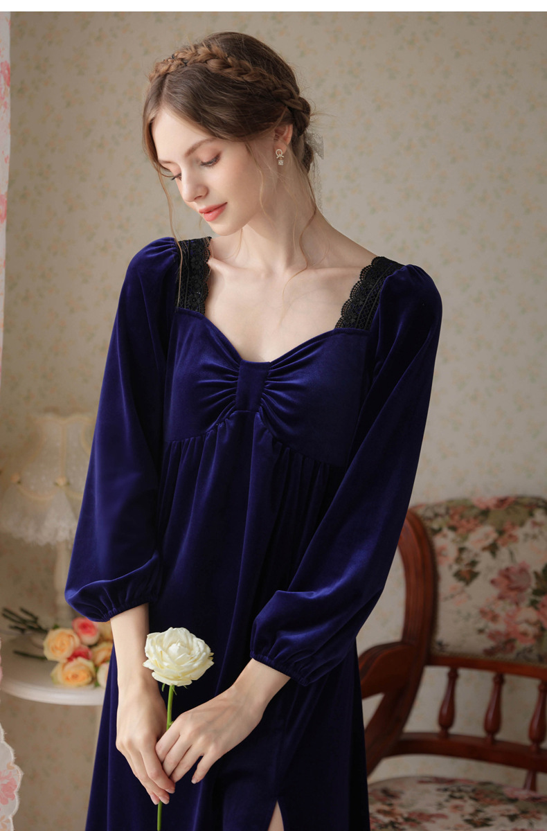 TCLN122100041 法式長款睡裙秋冬紅色絨厚款宮廷長袖性感女加絨睡衣