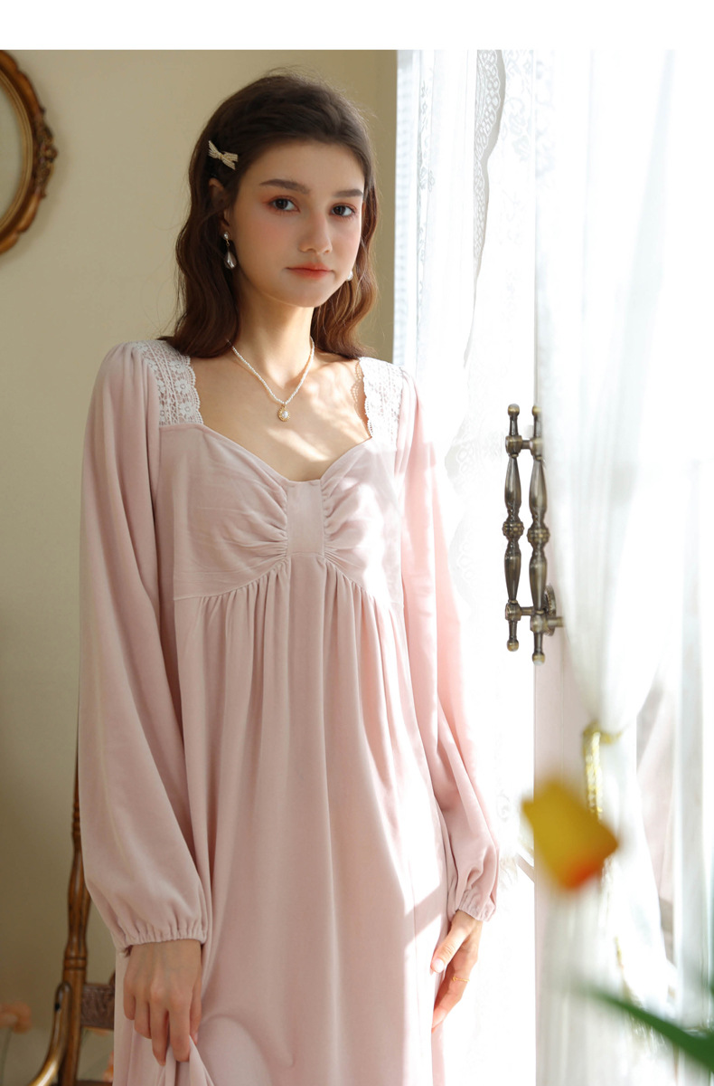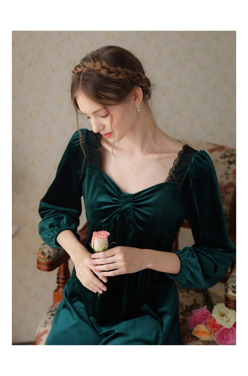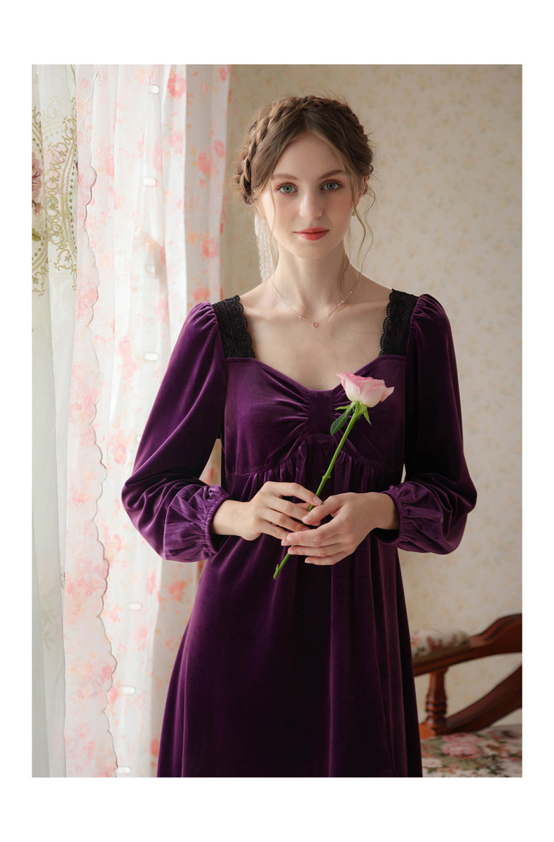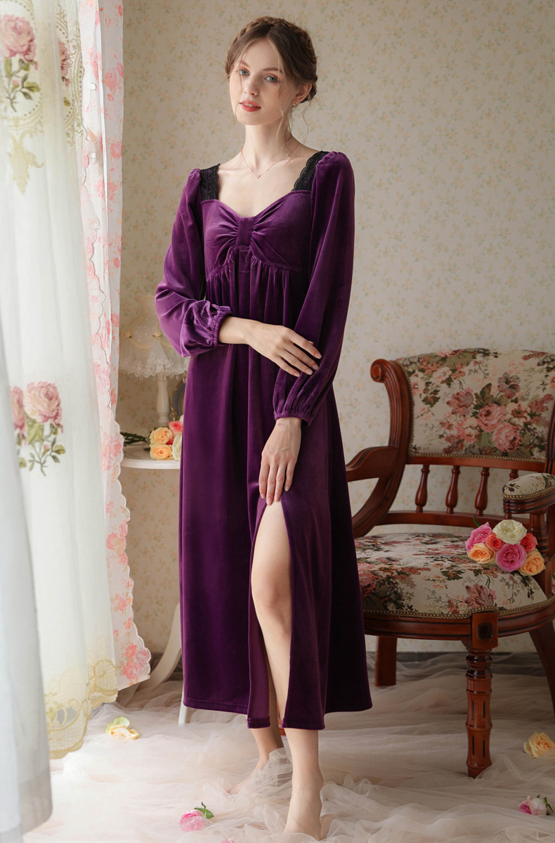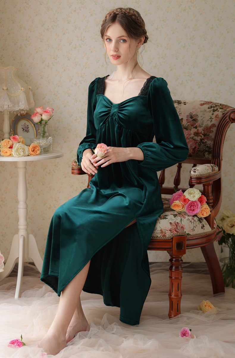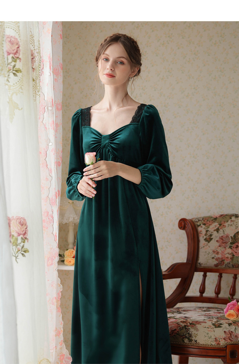 TCLN122100041 法式長款睡裙秋冬紅色絨厚款宮廷長袖性感女加絨睡衣