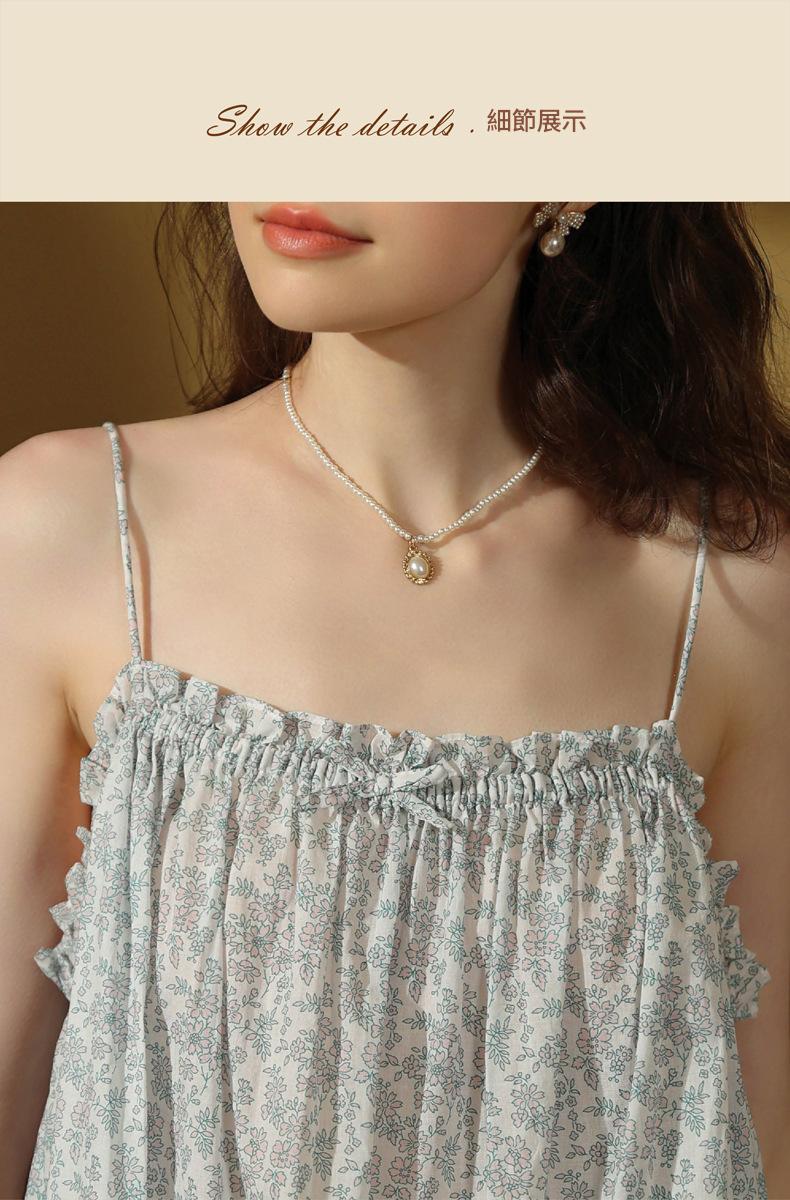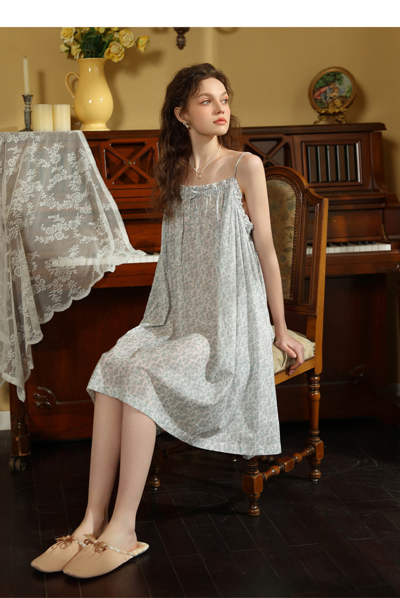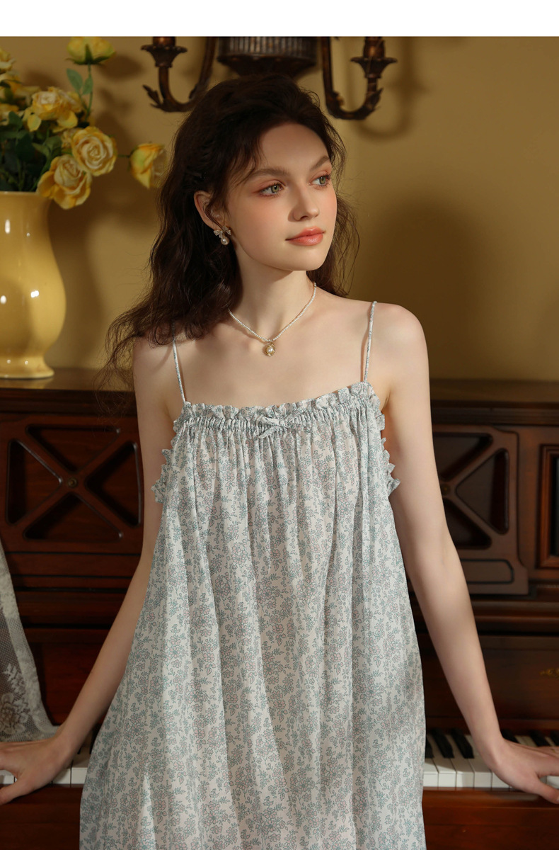TCLN122100044 吊帶睡裙夏季新款薄款歐美印花度假風甜美居家棉短裙少女短款睡衣