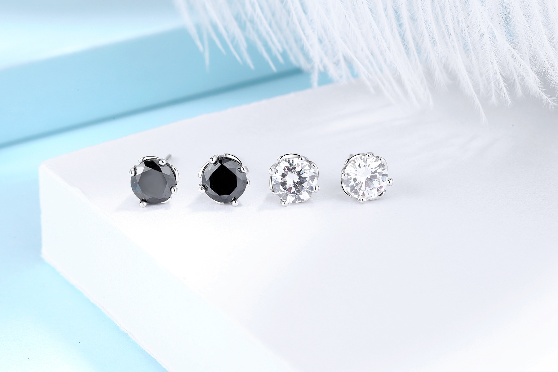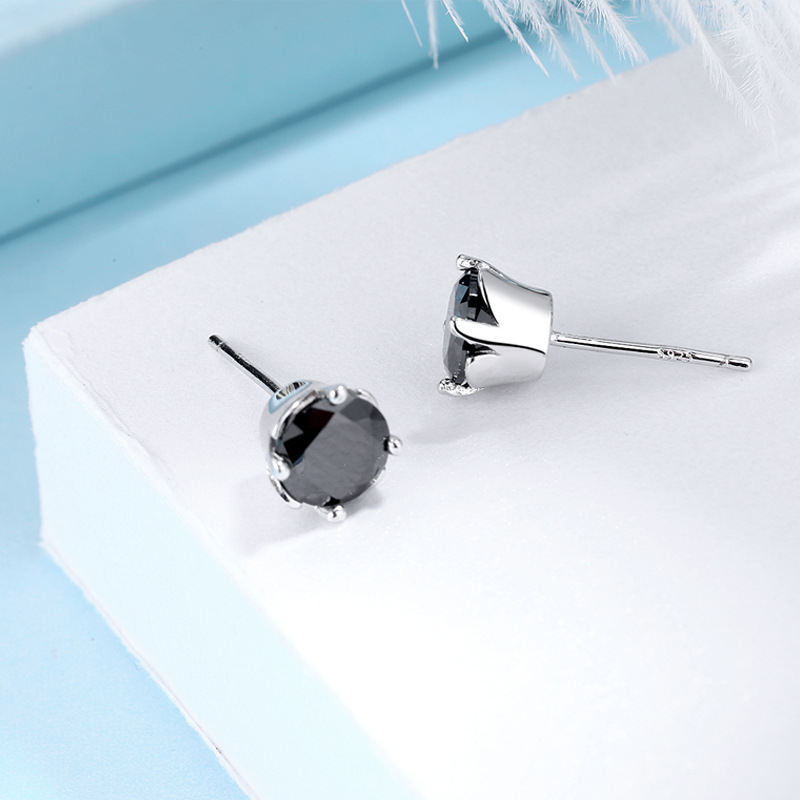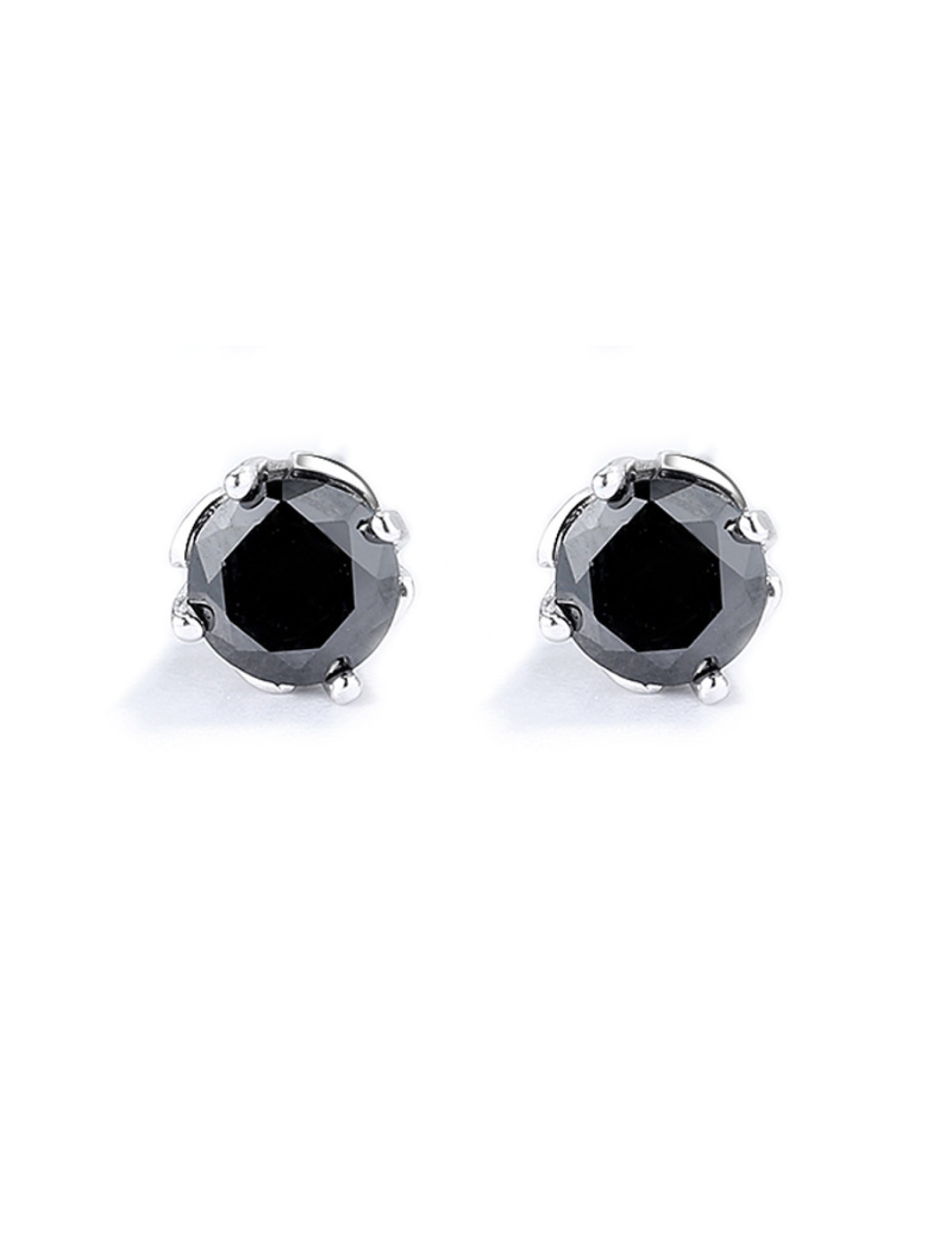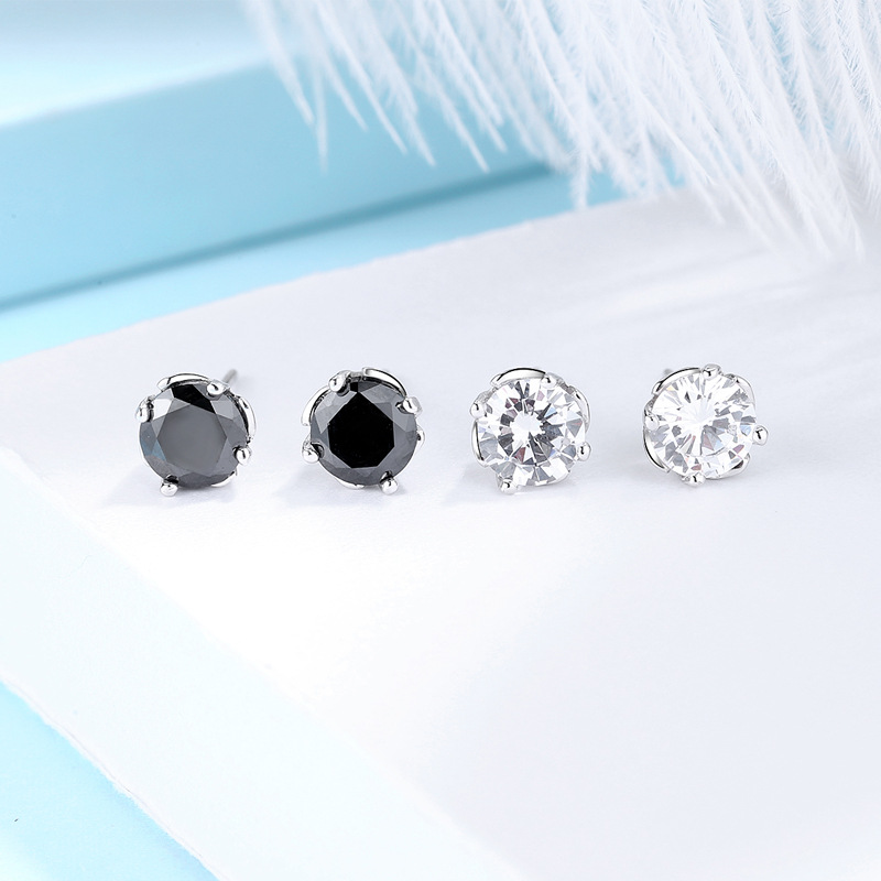 SATN122E100374 S925純銀經典時尚四爪鋯石耳釘簡約男女個性百搭潮耳環小眾耳飾