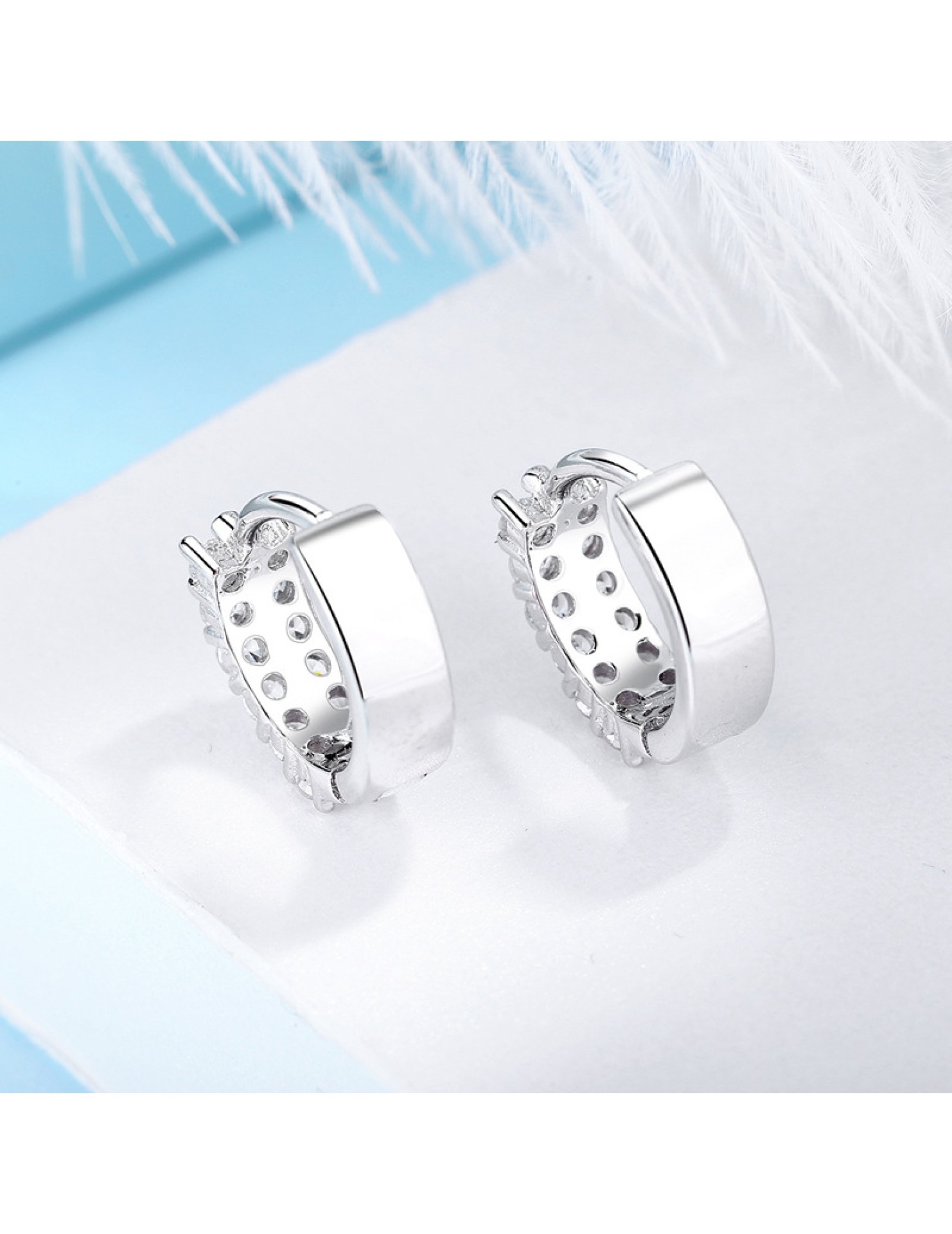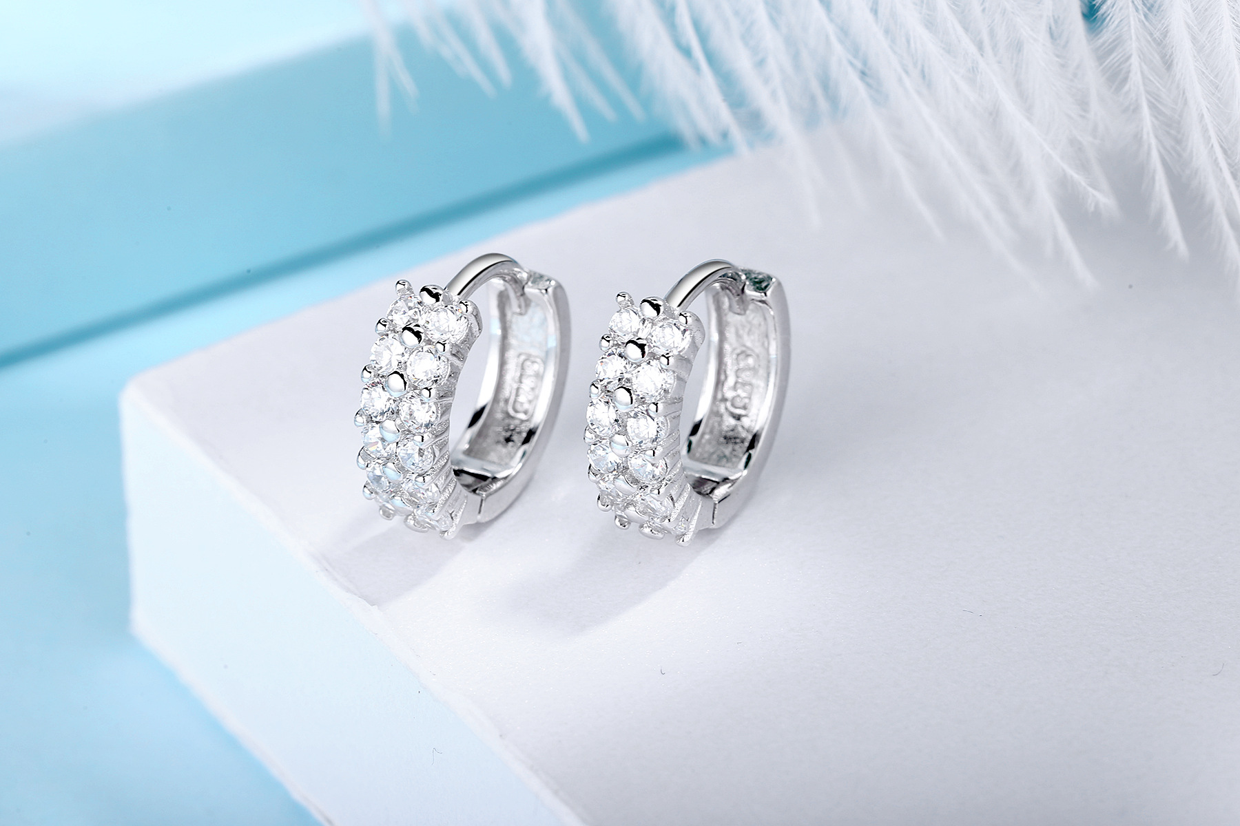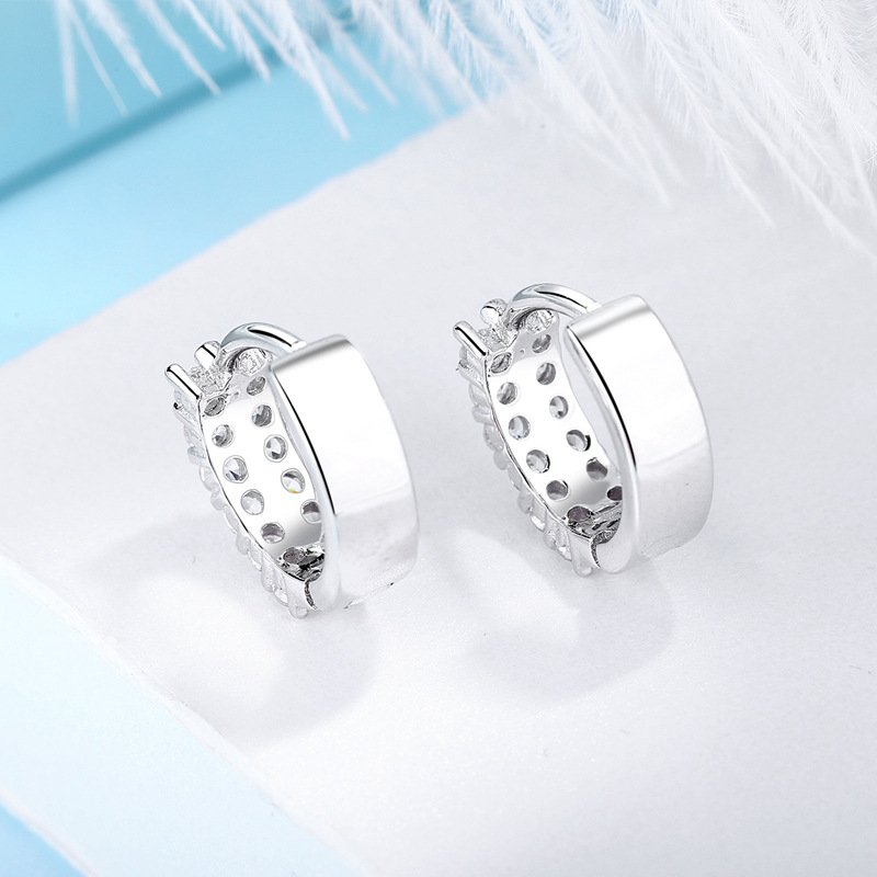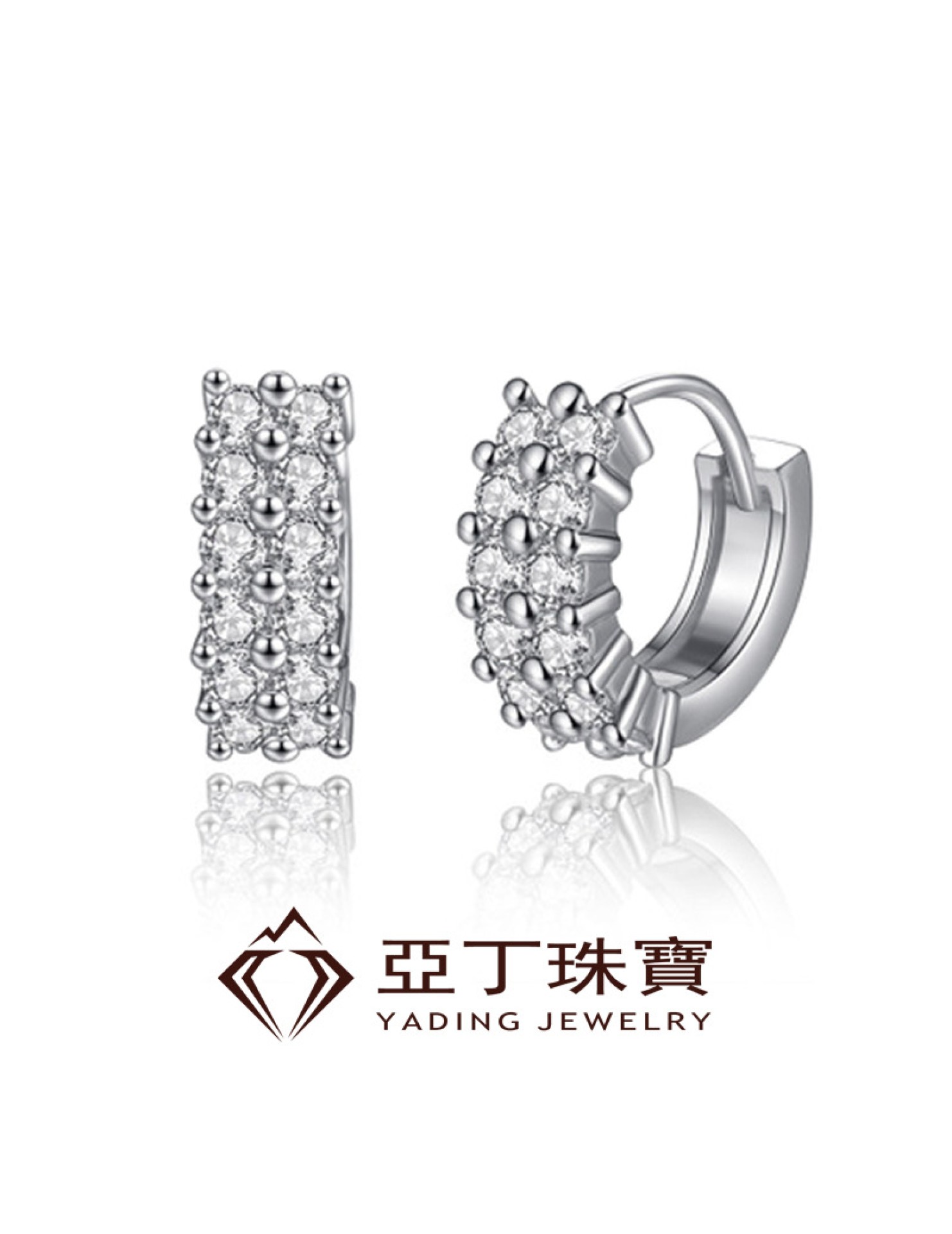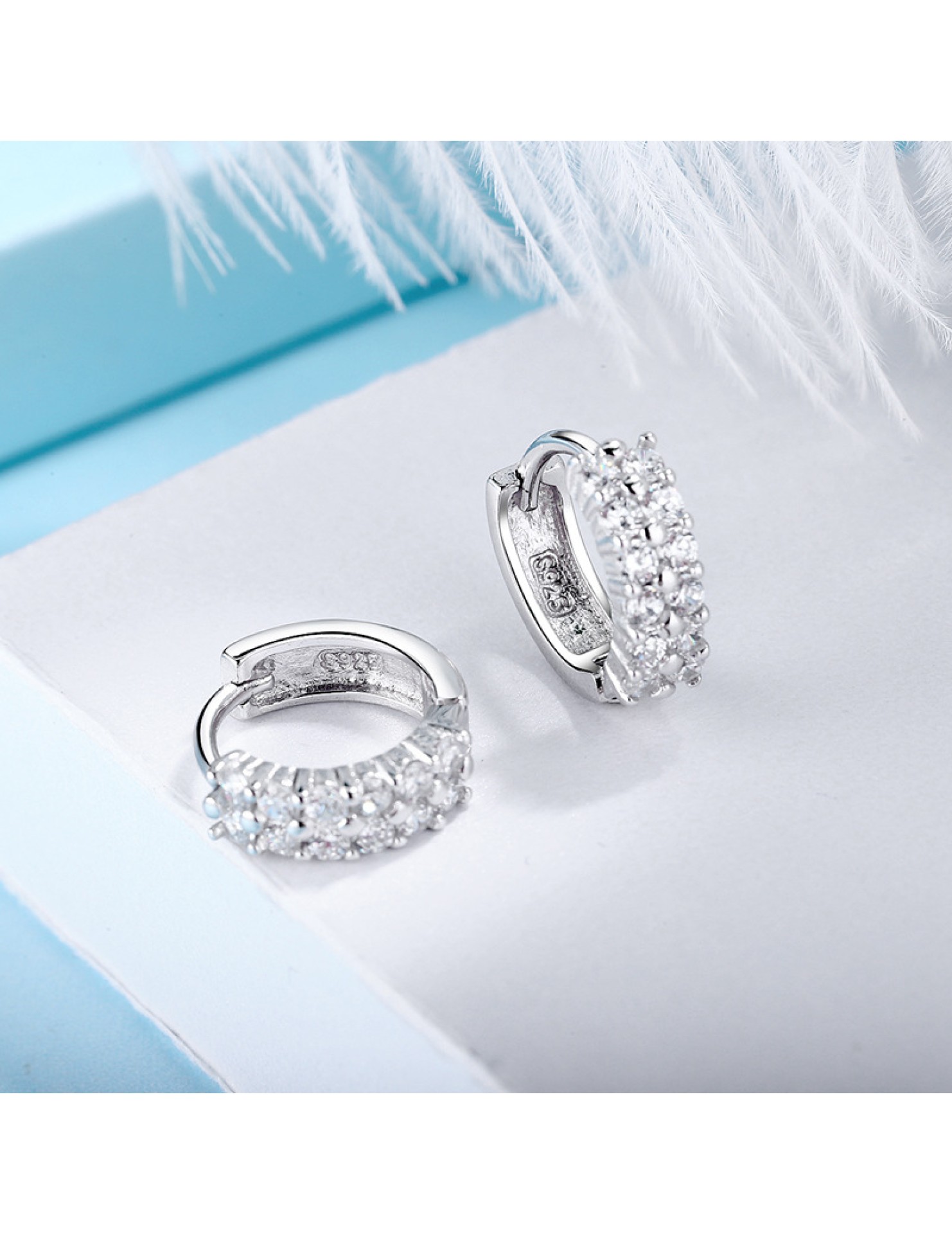 SATN122E100380 s925純銀女士雙排鉆耳扣簡約氣質鑲鉆耳環耳飾圓圈銀耳圈