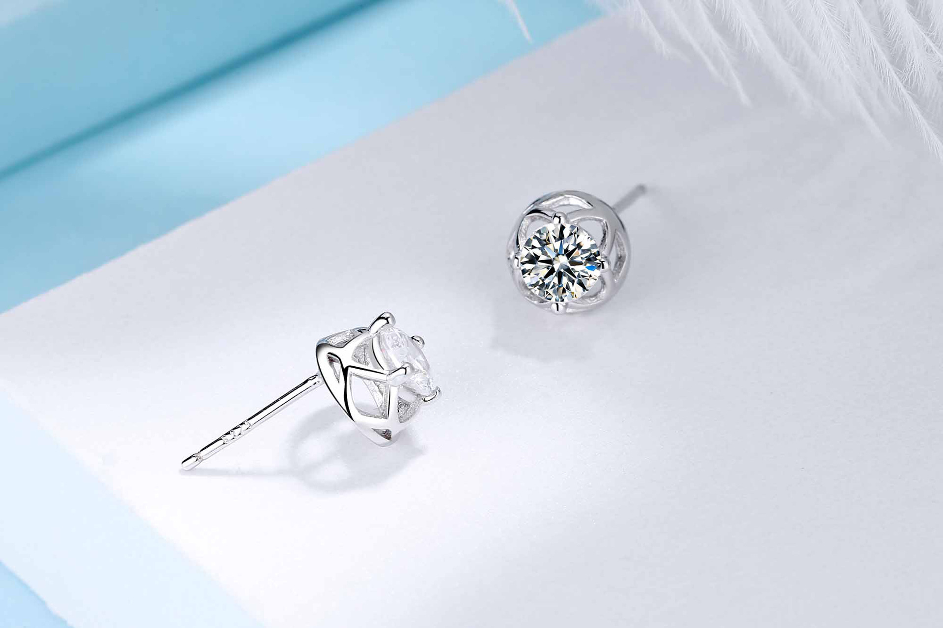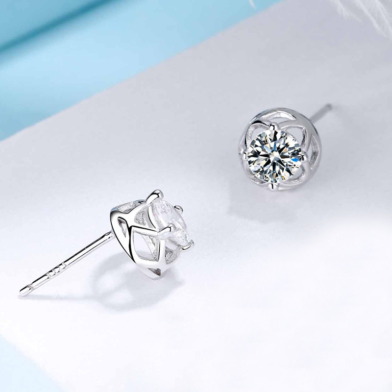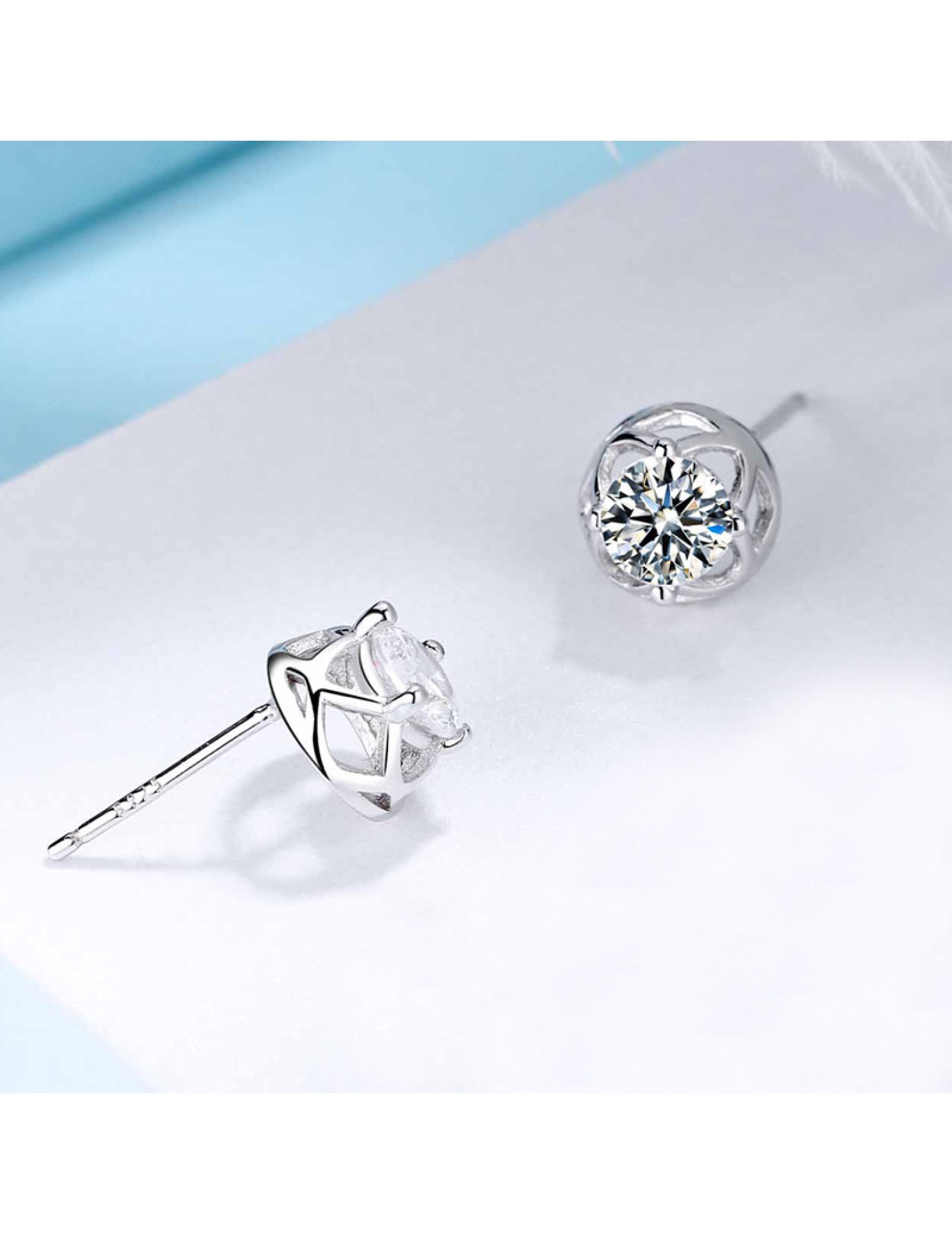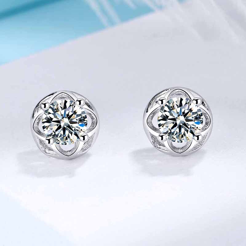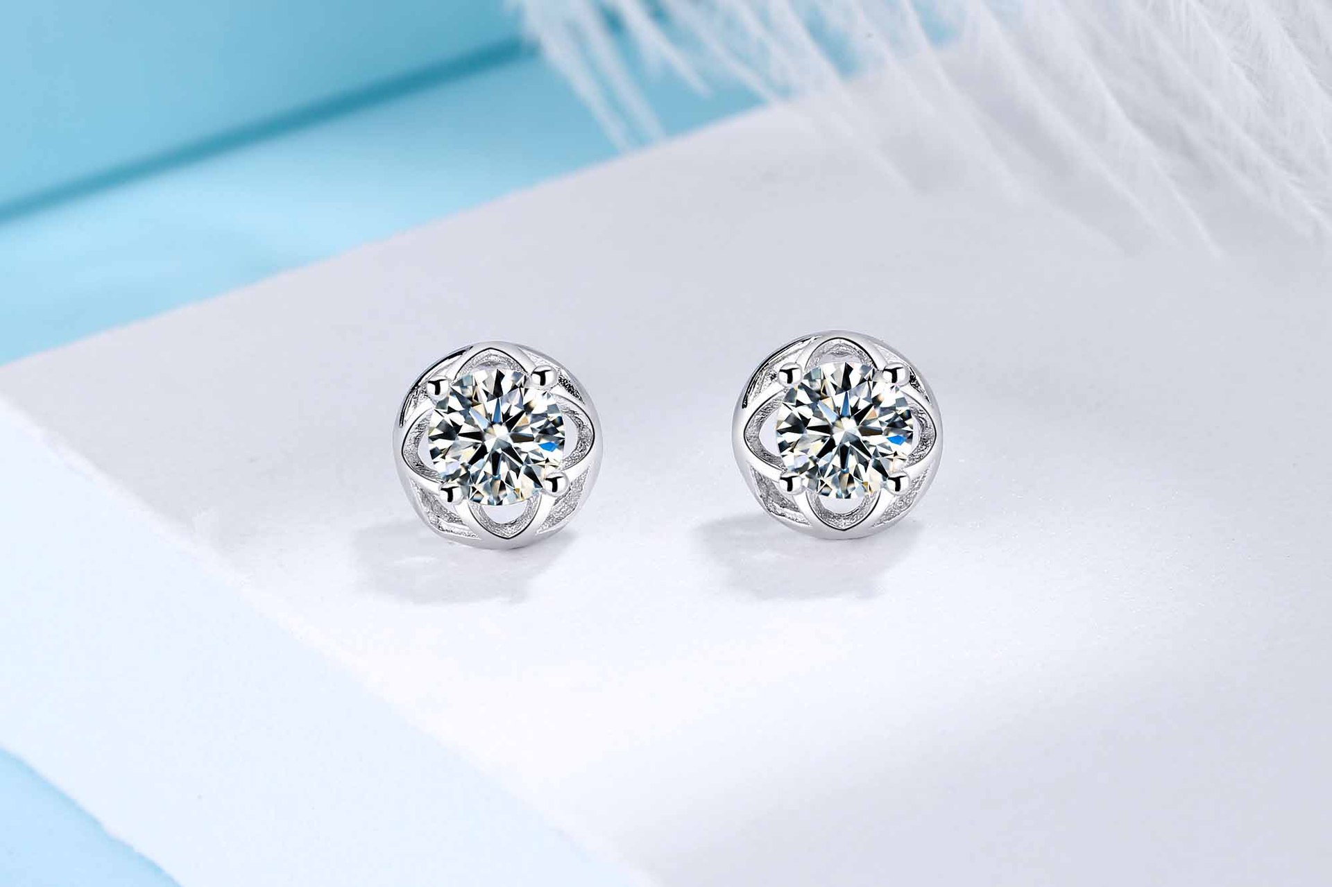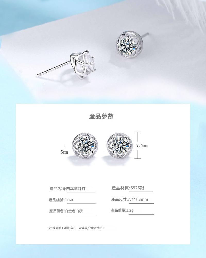 SATN122E100381 S925純銀幸運草耳釘花瓣飾品銀耳釘氣質韓國個性秋冬簡約耳環