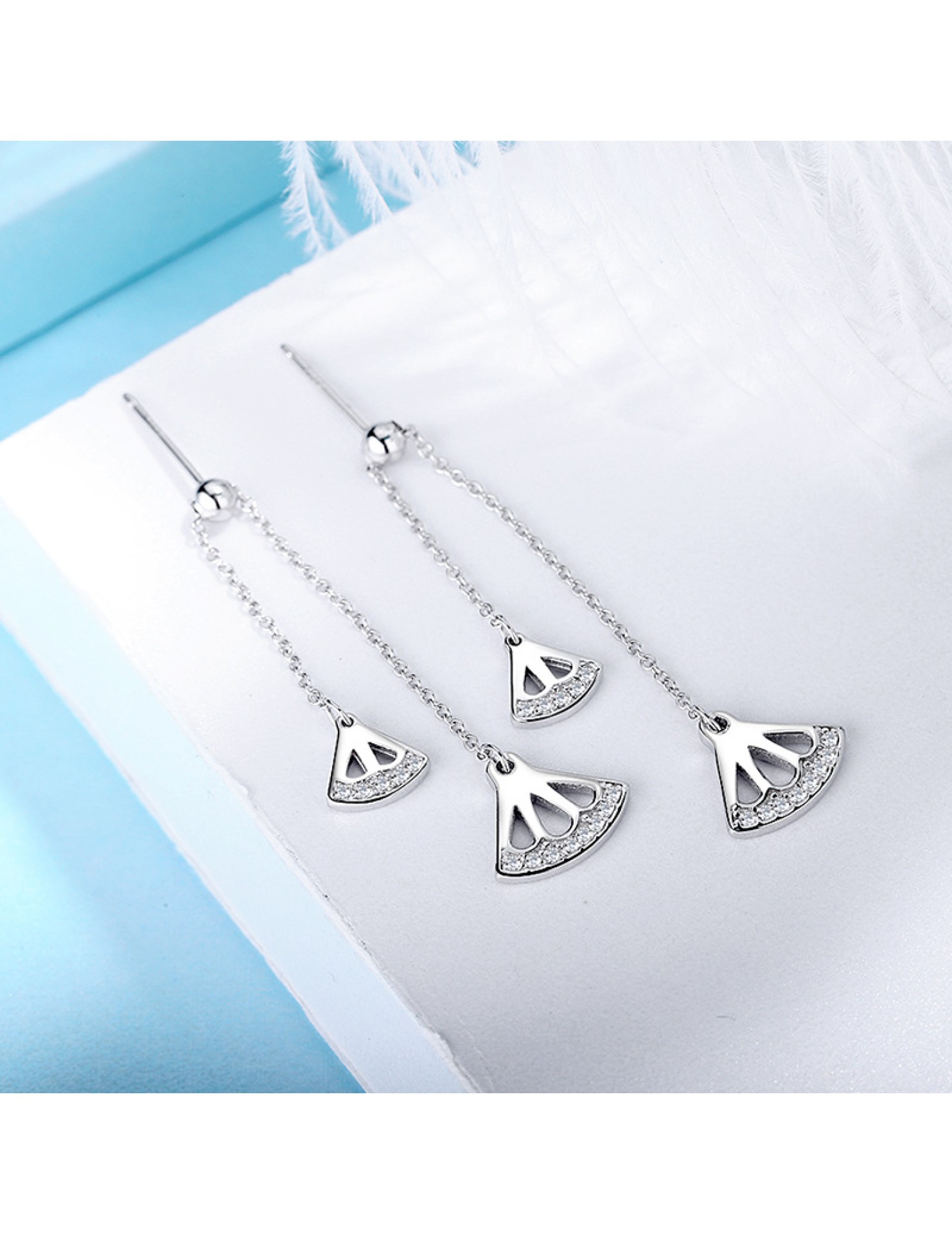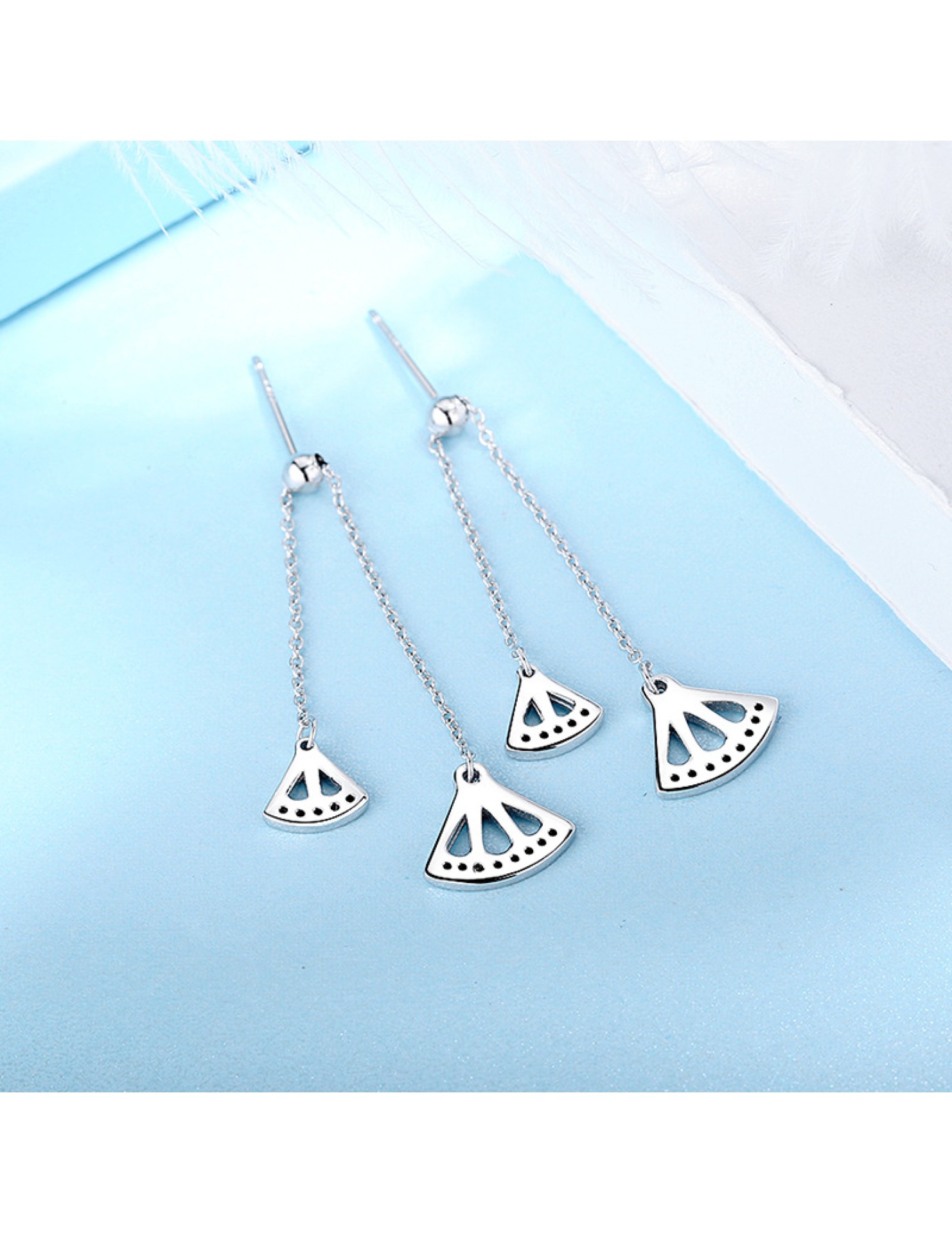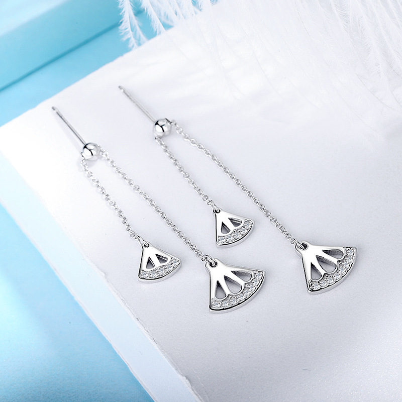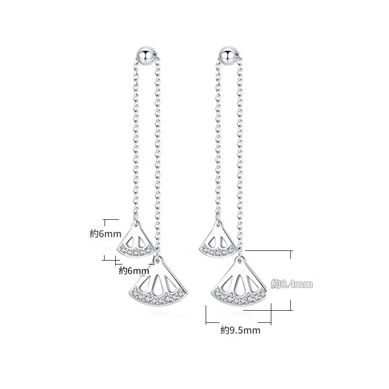 SATN122E100383 S925純銀耳墜女氣質耳環長款流蘇扇形耳釘清新耳線新款潮百搭耳飾