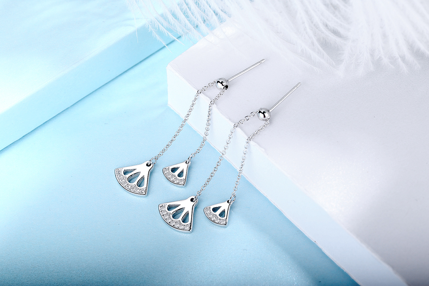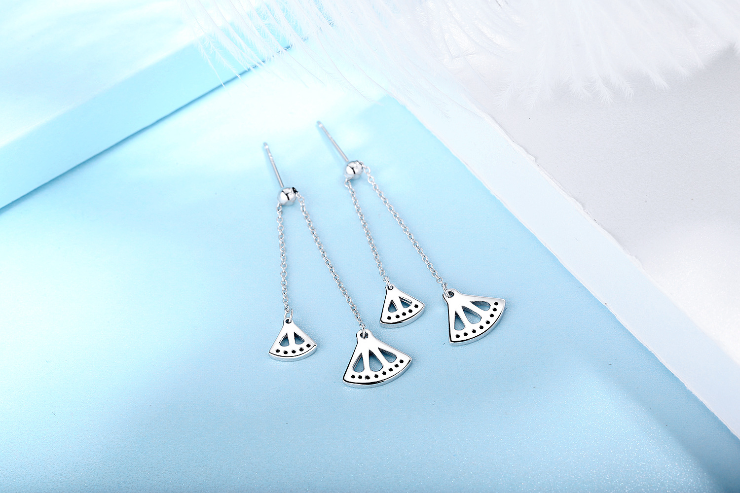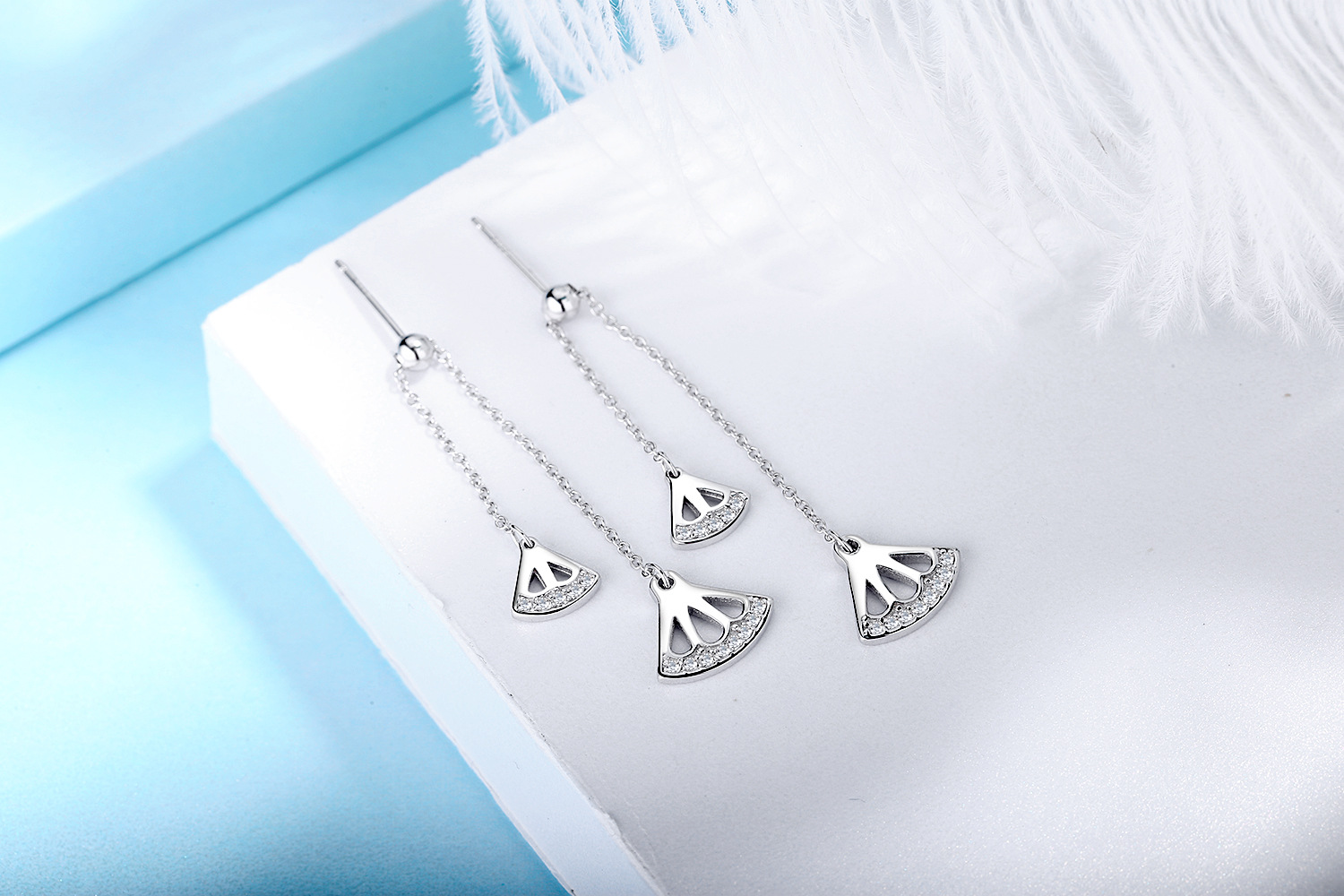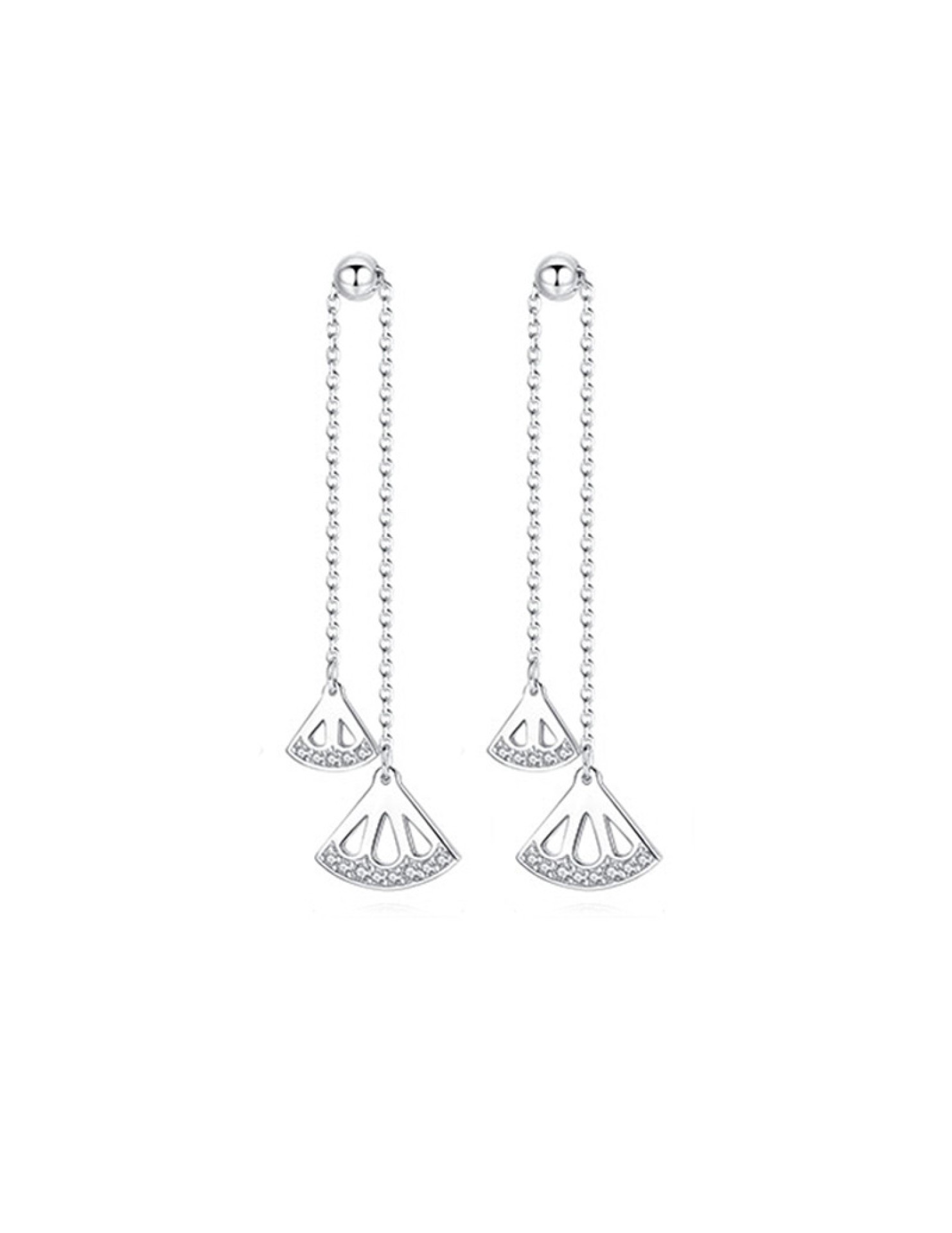 SATN122E100383 S925純銀耳墜女氣質耳環長款流蘇扇形耳釘清新耳線新款潮百搭耳飾