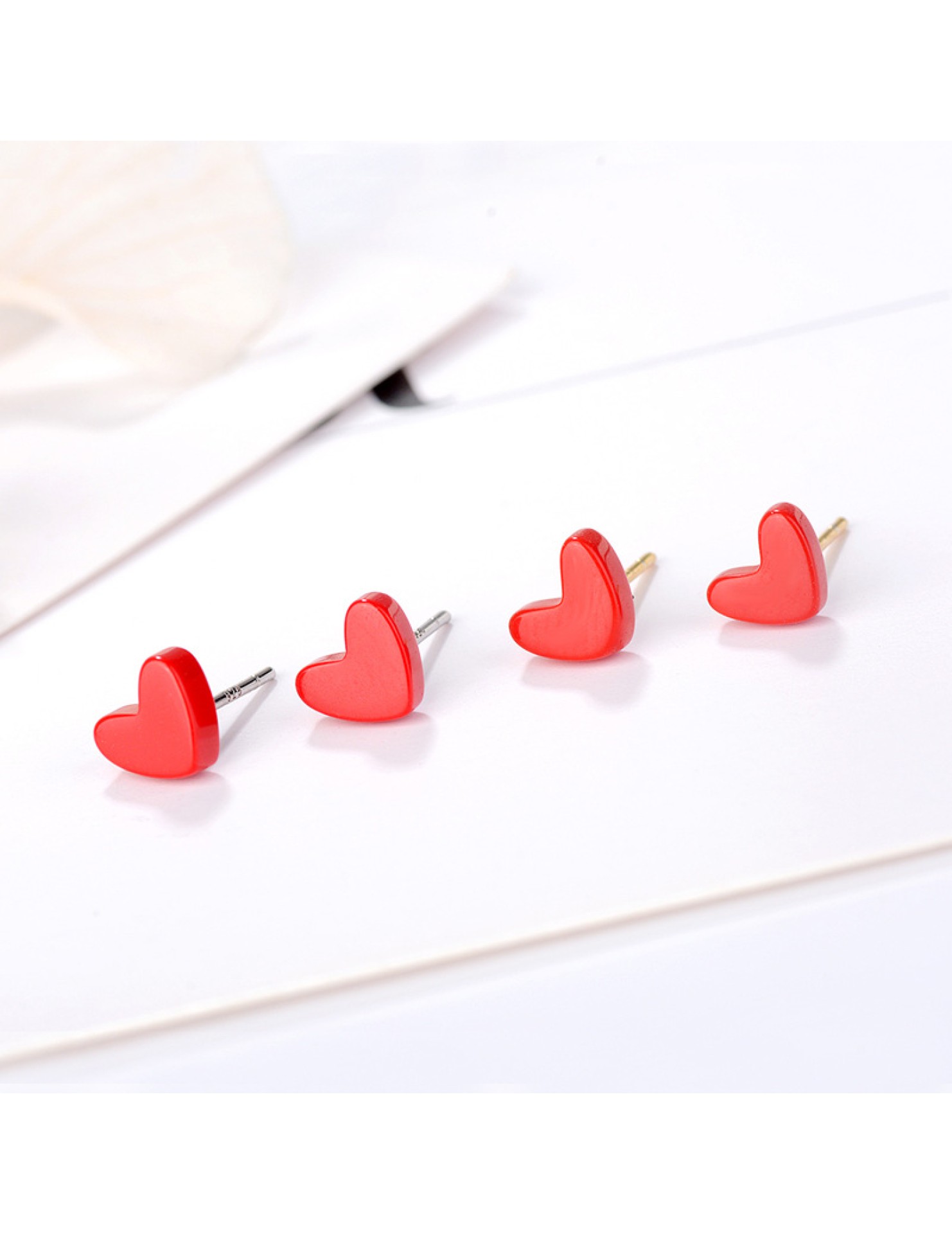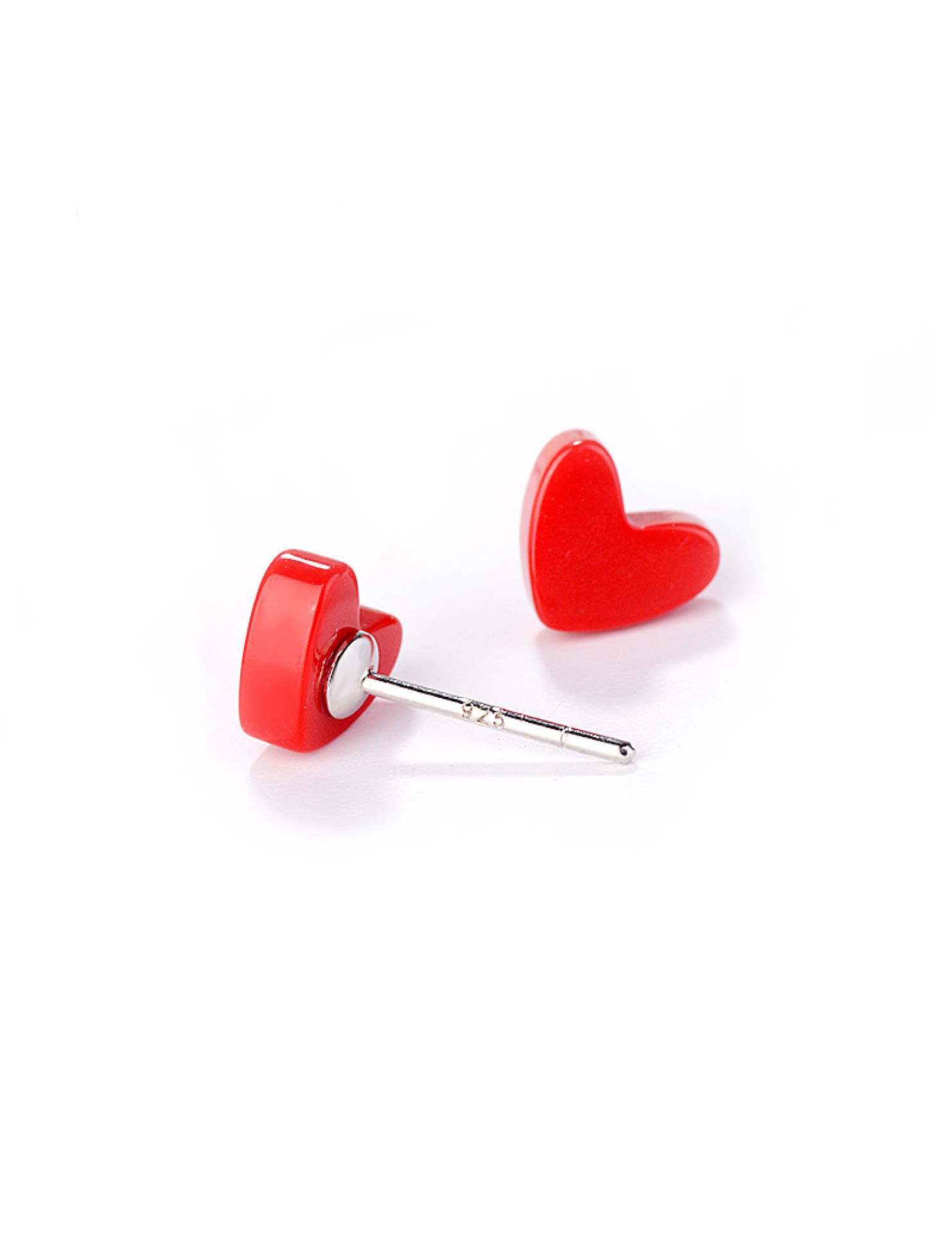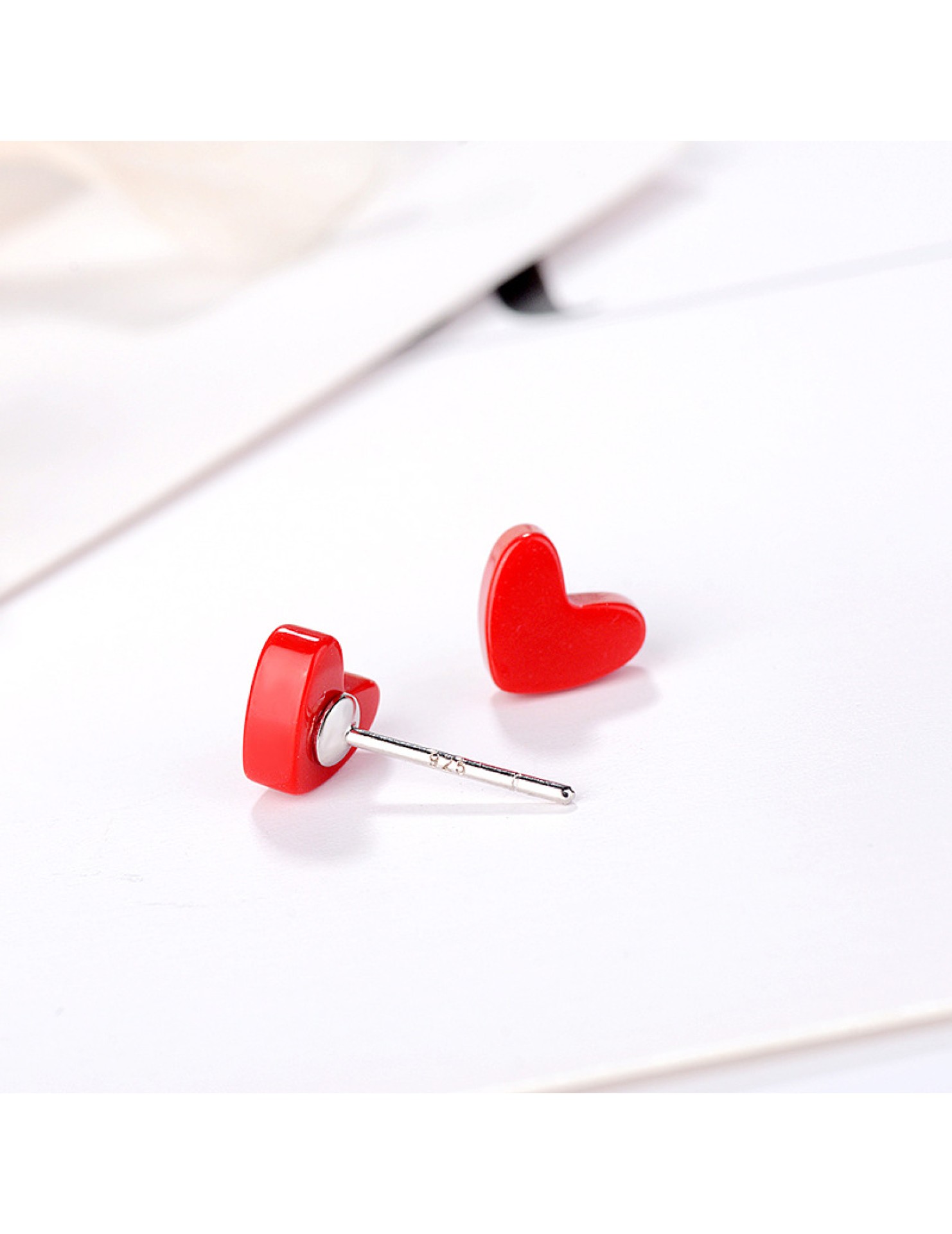 SATN122E100385 s925銀愛心耳釘女韓版小清新紅色心形耳釘甜美桃心耳飾品女代發